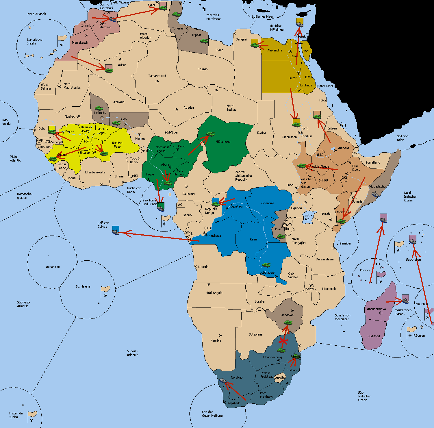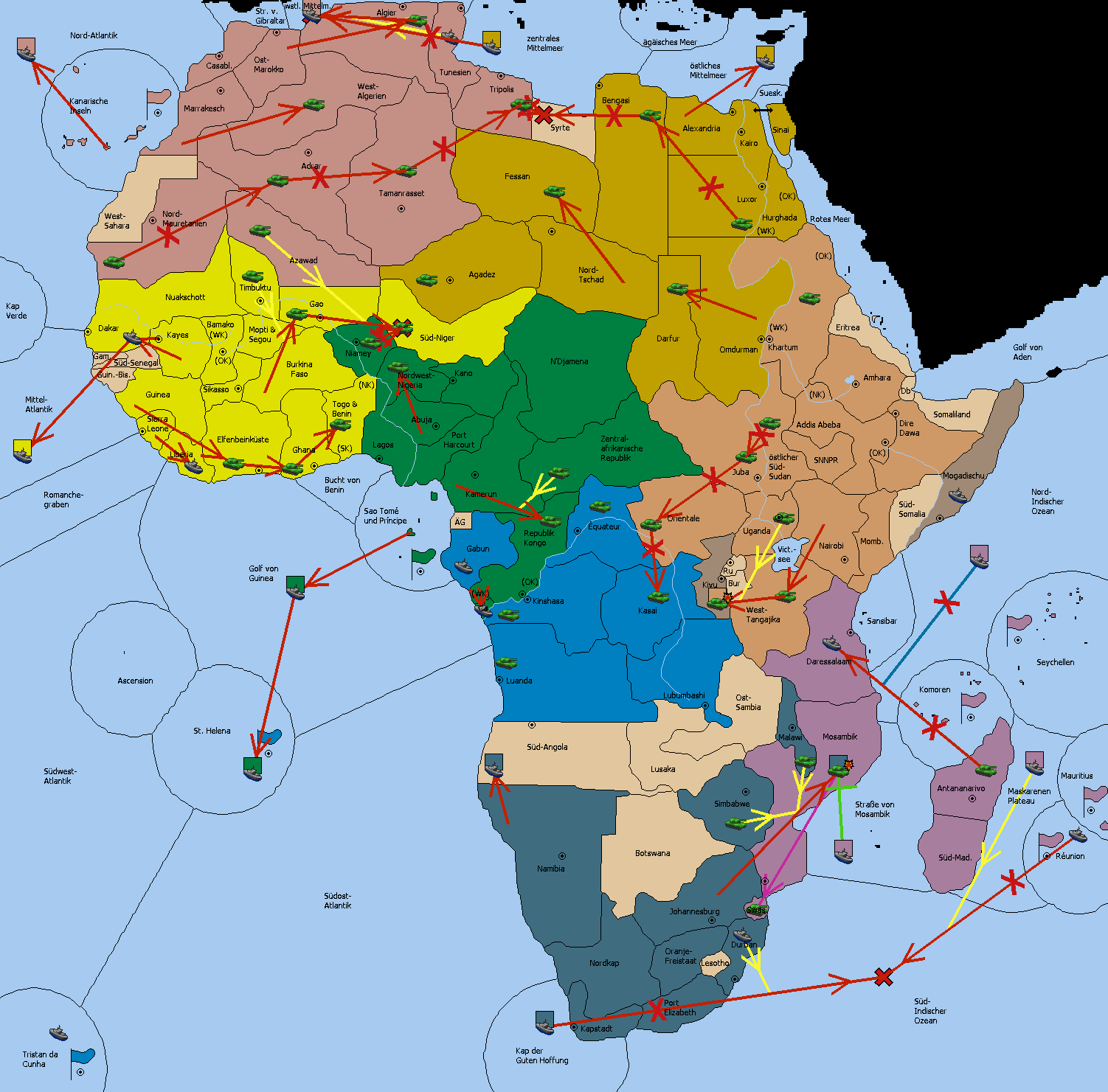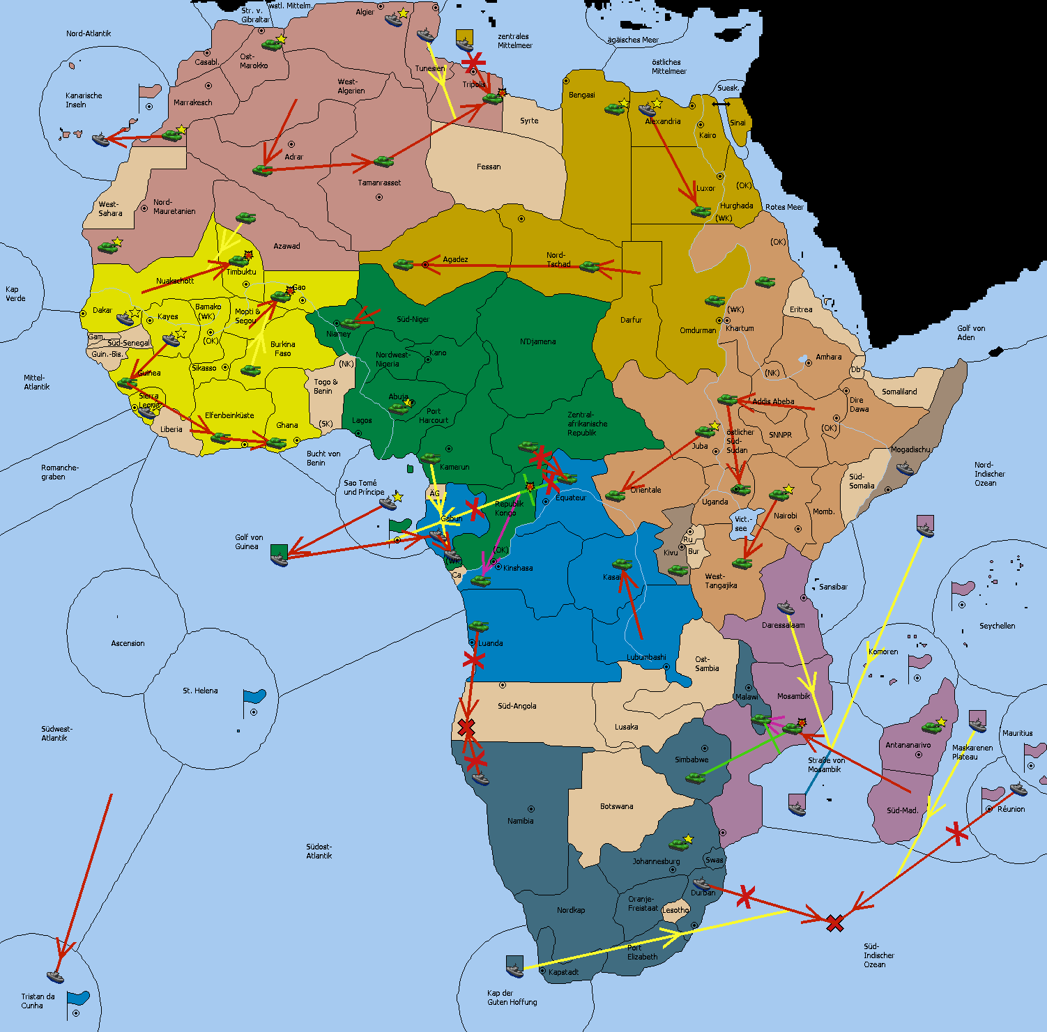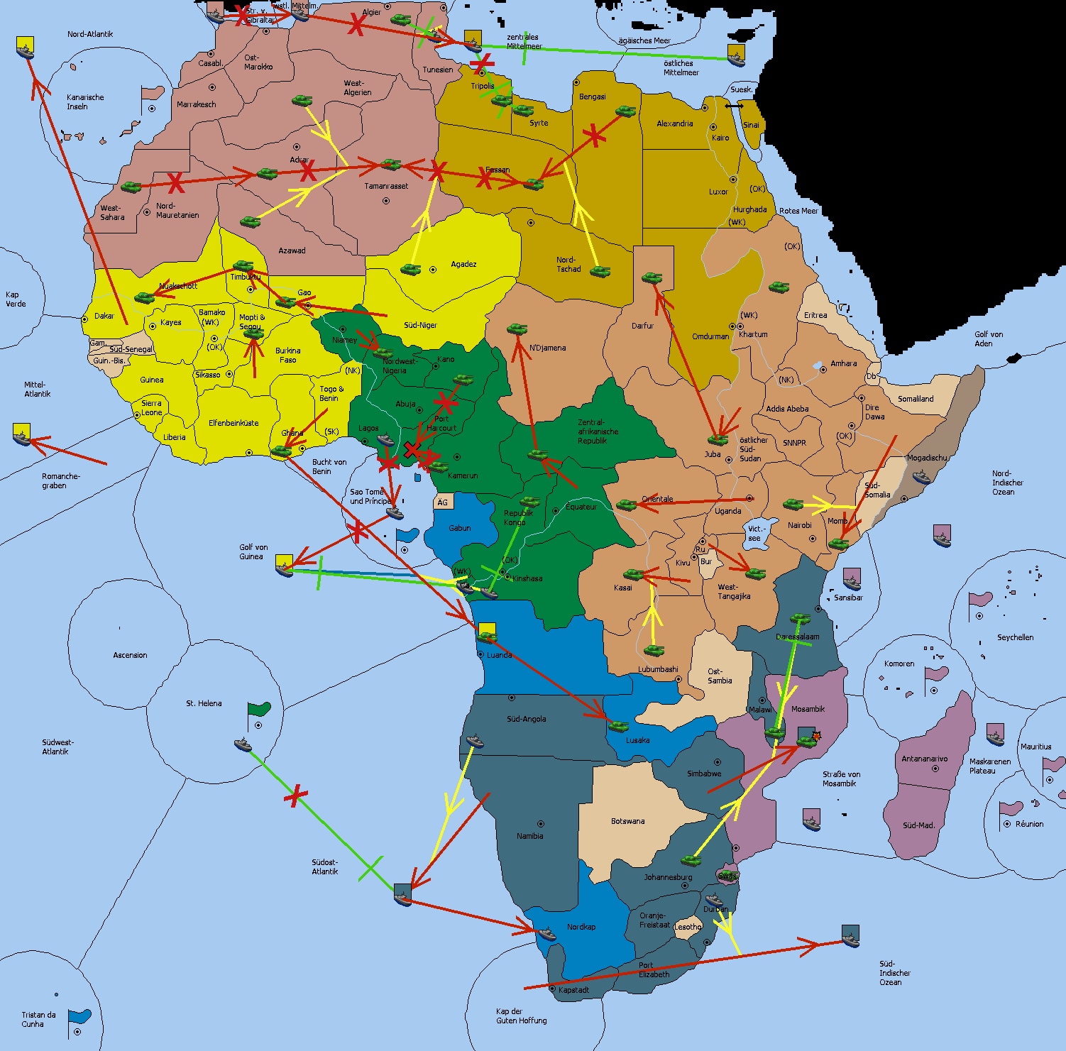 • Die Flotte in Südost-Atlantik support hold nach Golf von Guinea. (gescheitert)