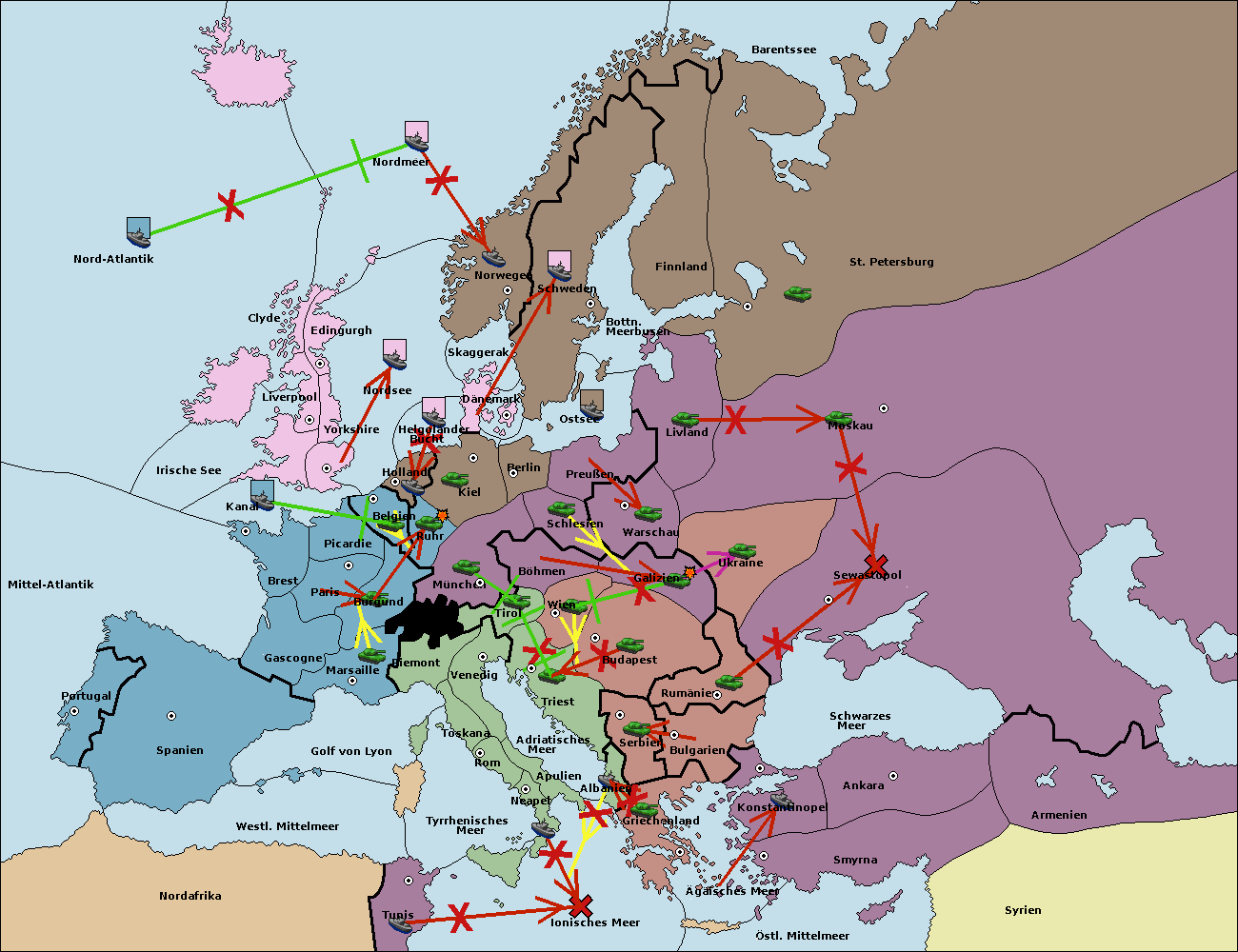 • Die Armee in Bulgarien wird zerstörtFlotte in Bulgarien gebaut.