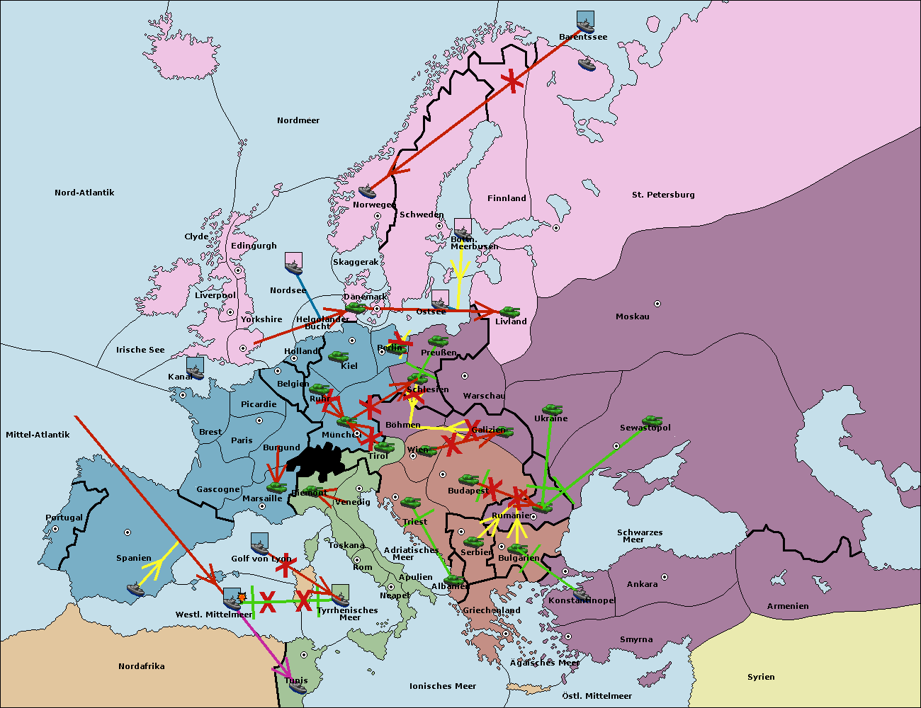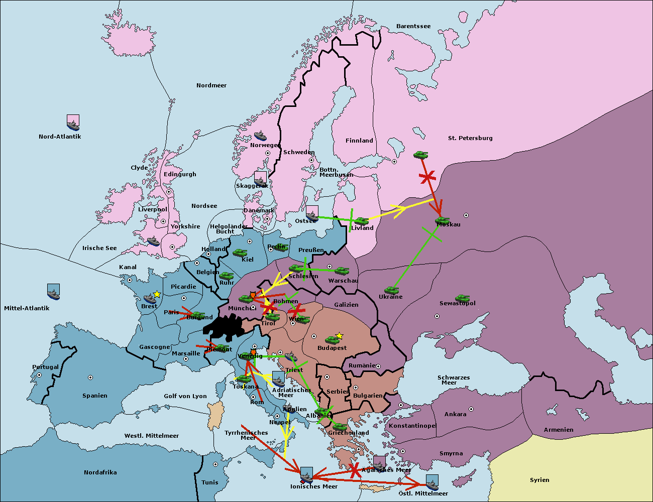 • Die Armee in Warschau support move nach Moskau von St. Petersburg. (gescheitert)