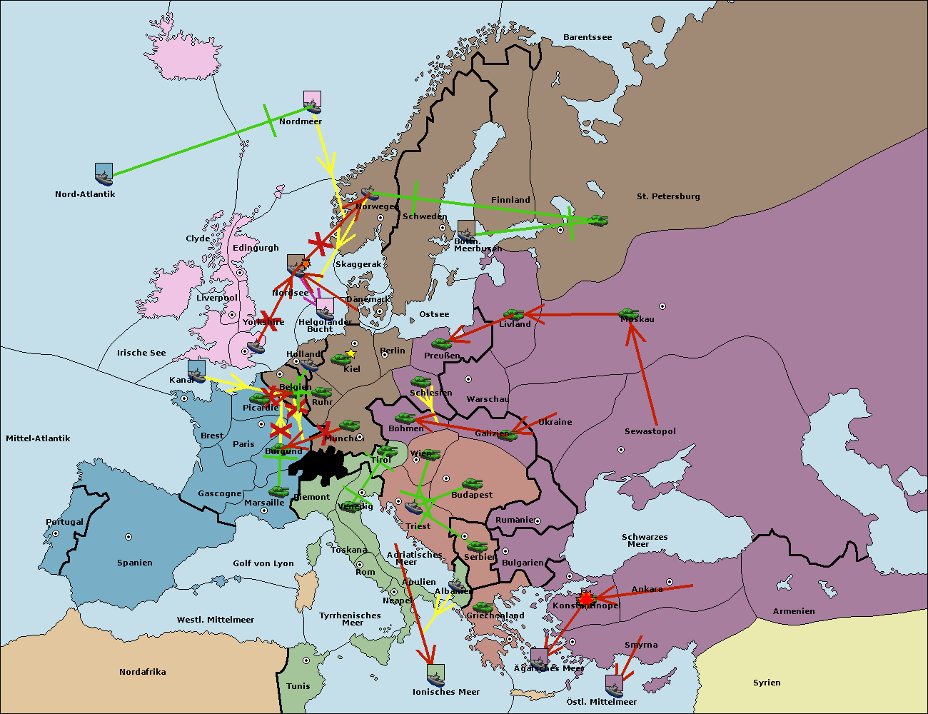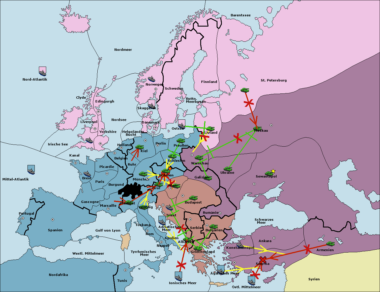 • Die Flotte in Konstantinopel support hold nach Bulgarien.