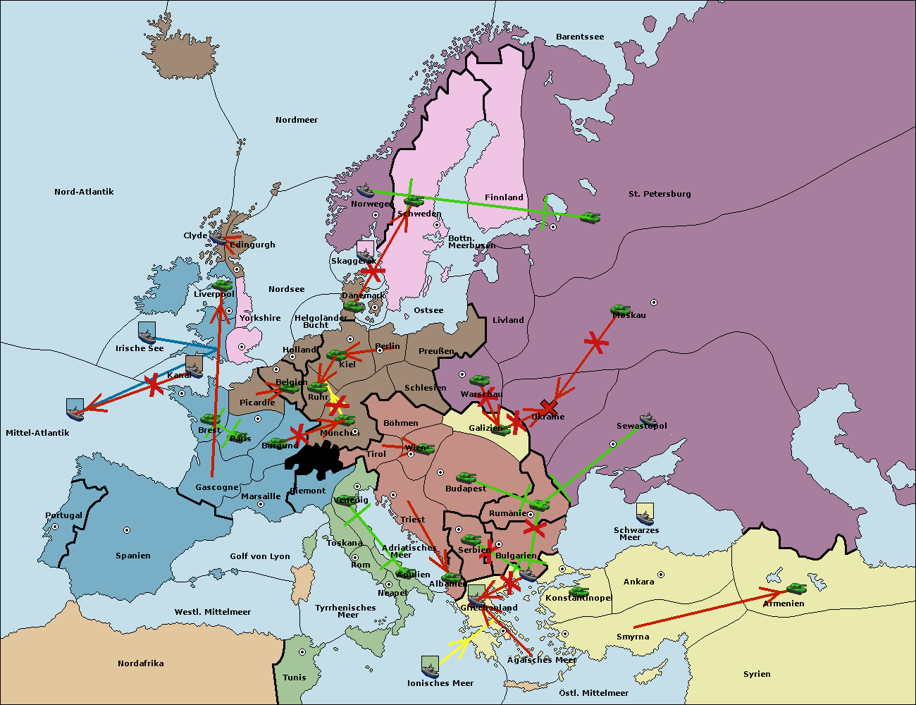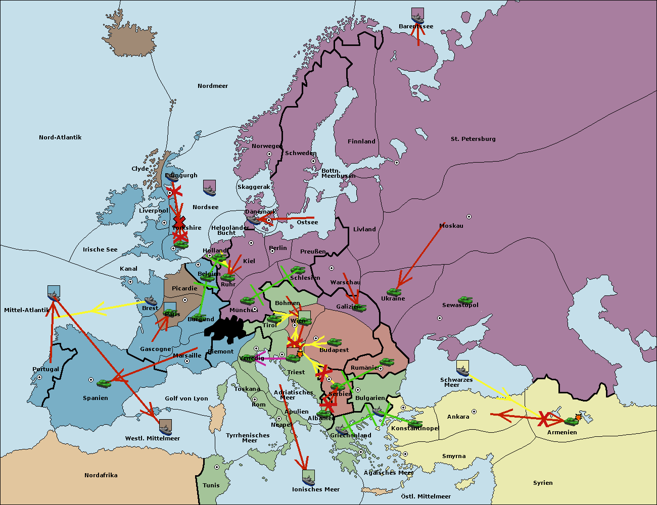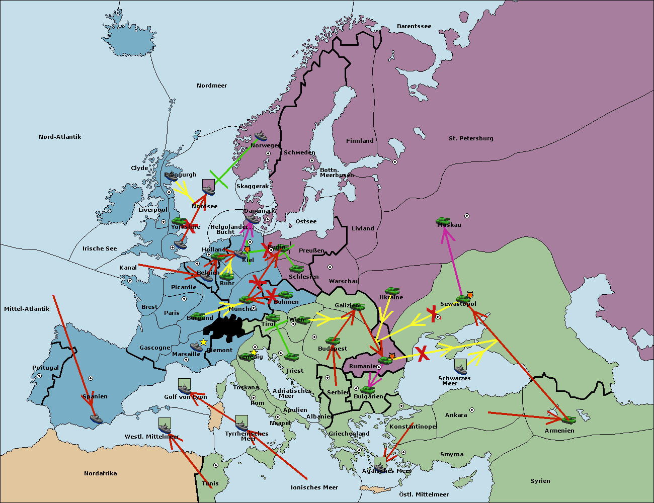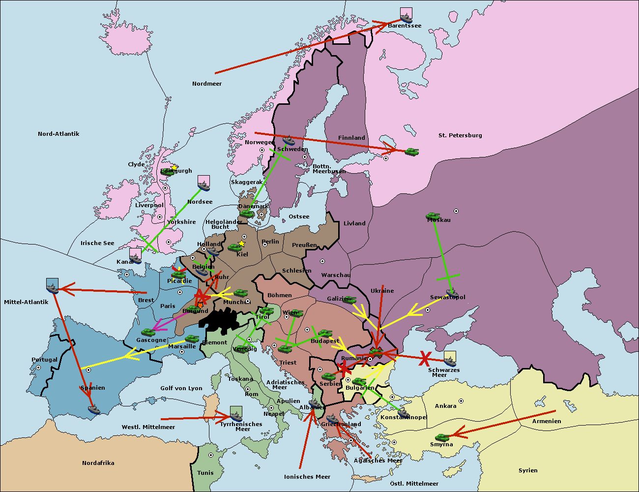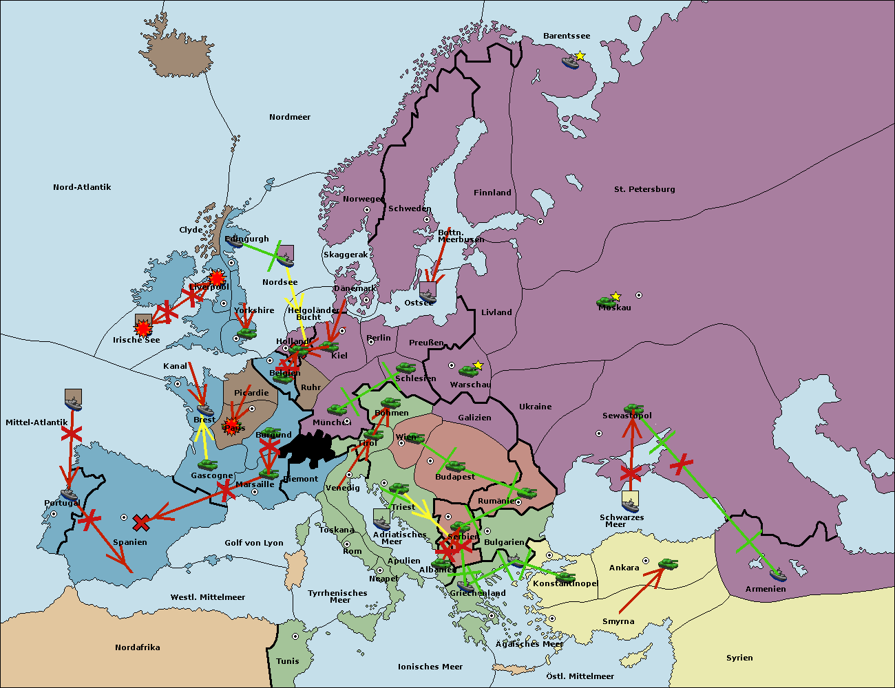 • Die Flotte in Spanien (Südküste) support move nach Golf von Lyon von westl. Mittelmeer.