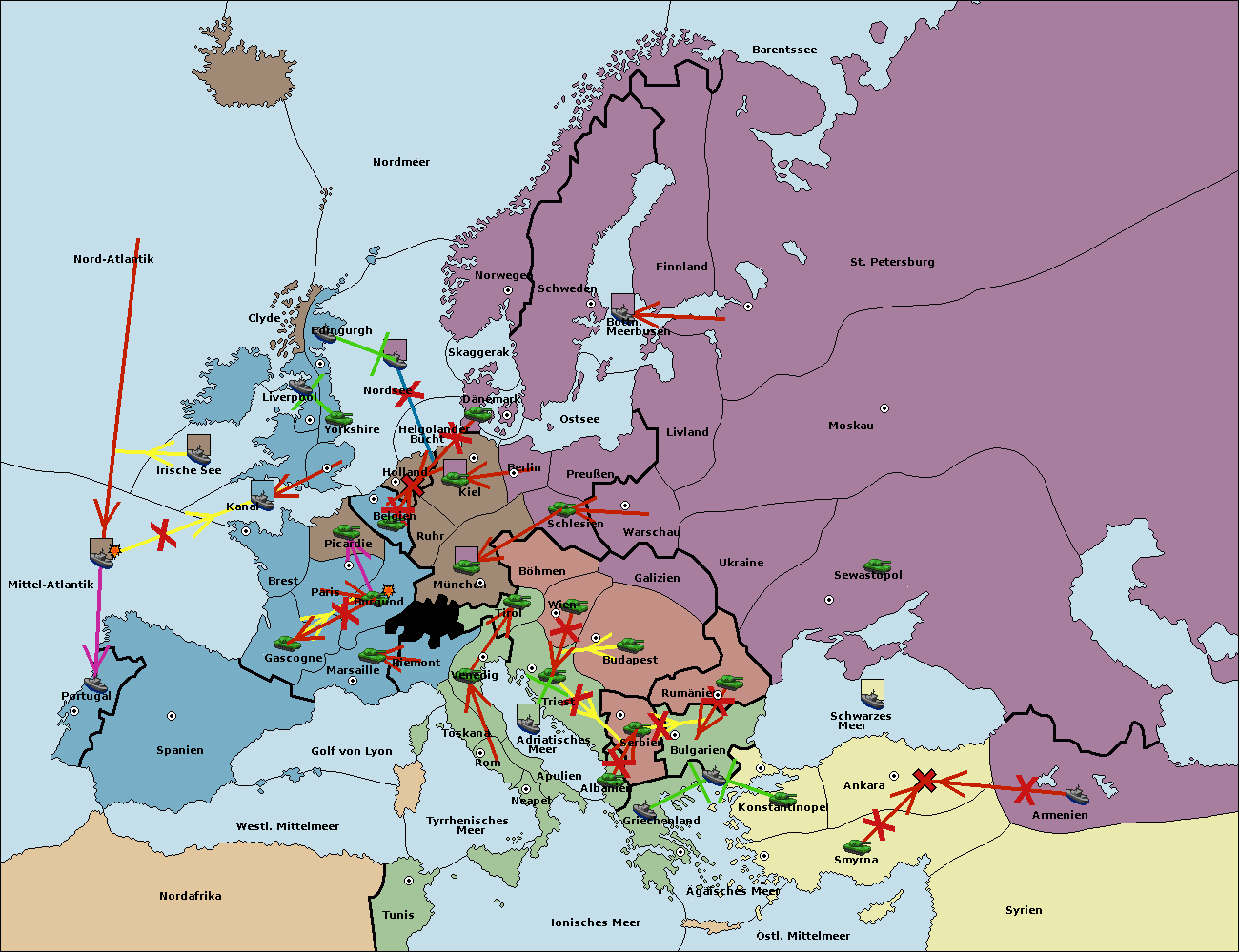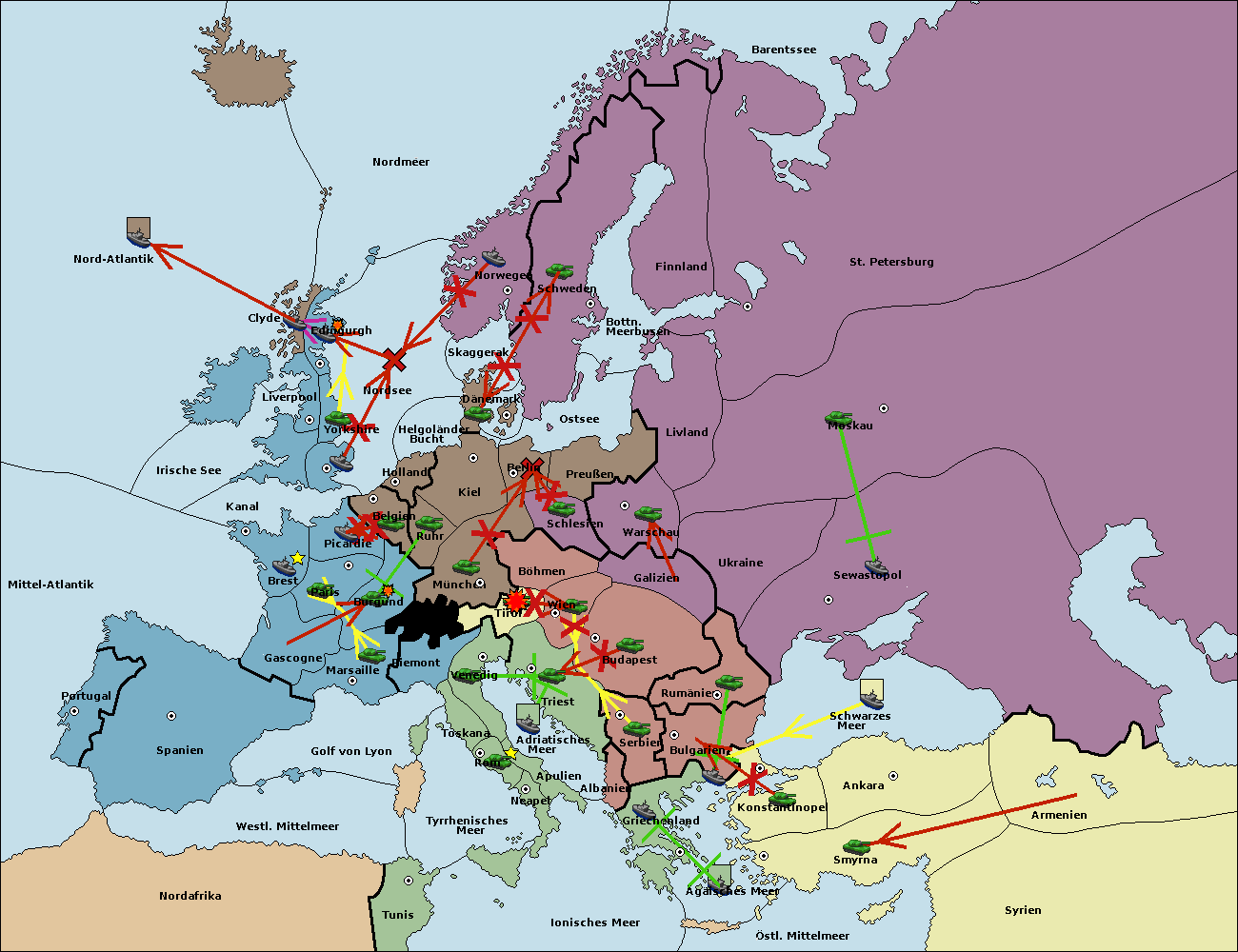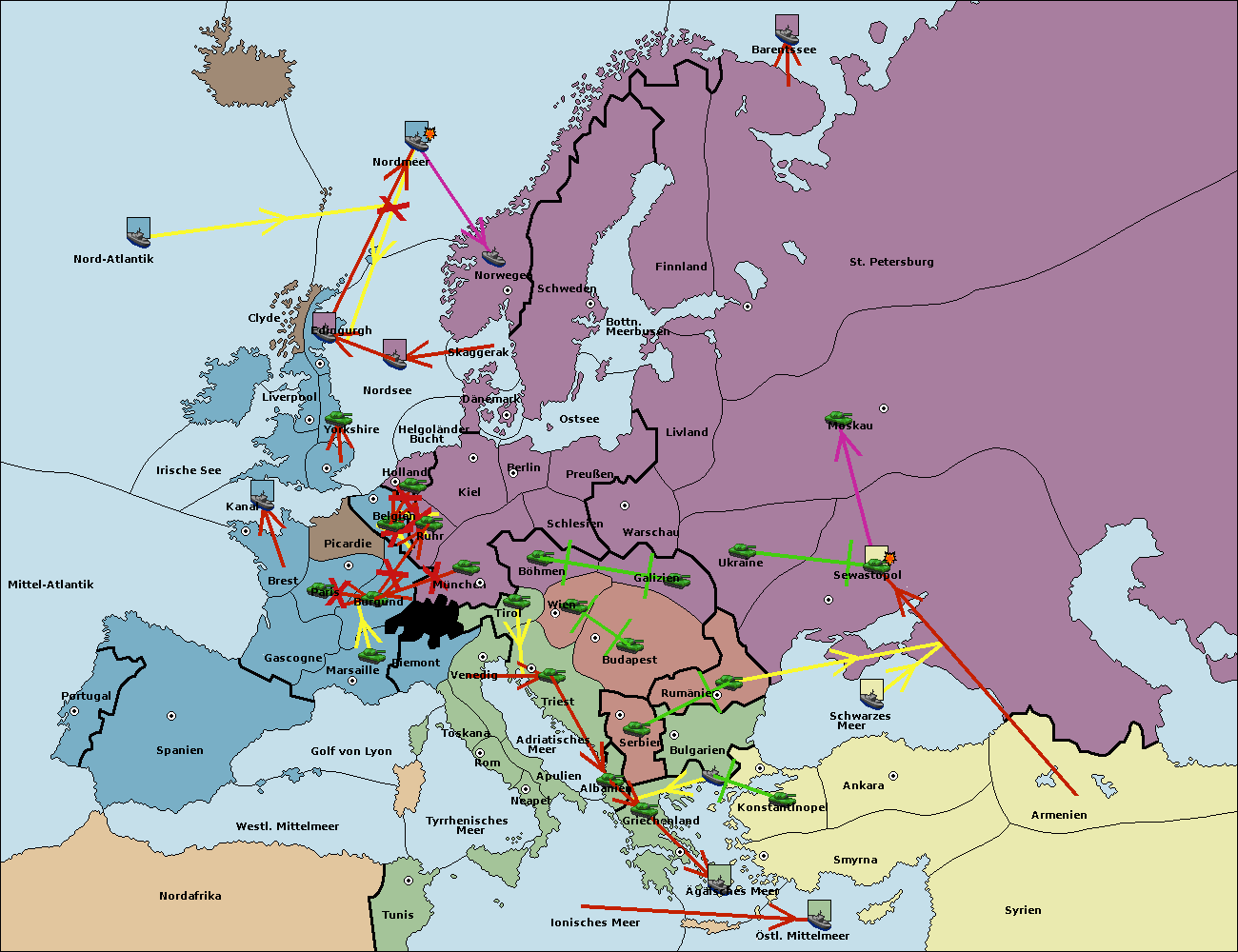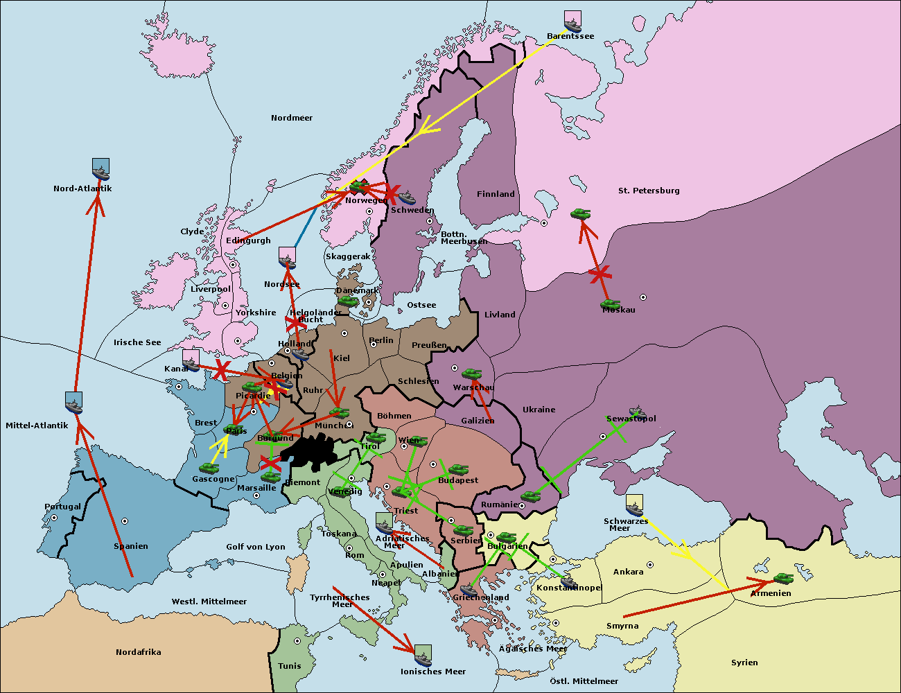 • Die Flotte in Spanien (Südküste) support move nach Golf von Lyon von westl. Mittelmeer.