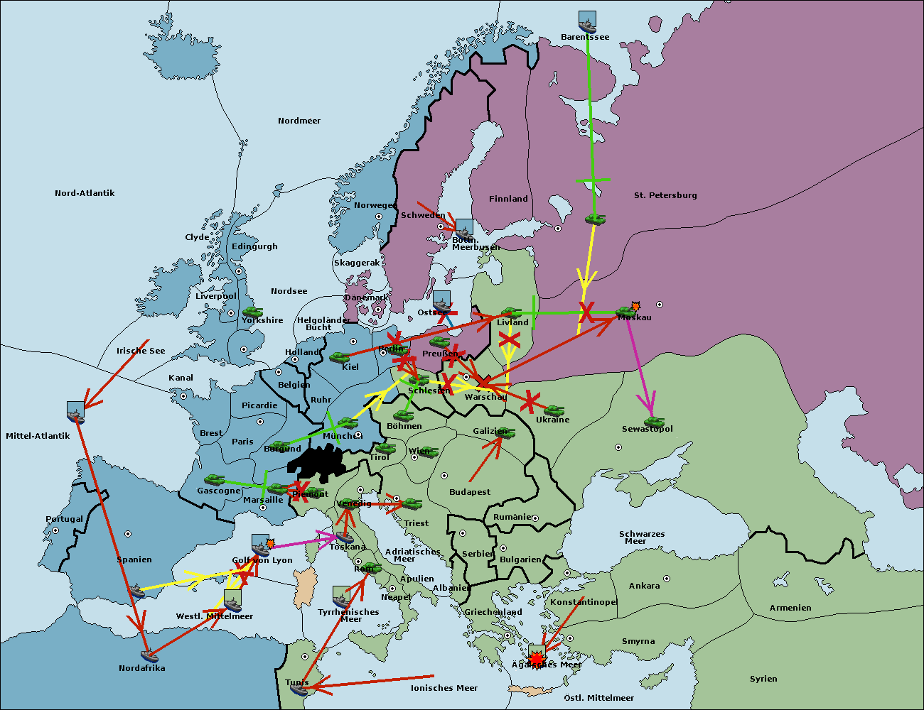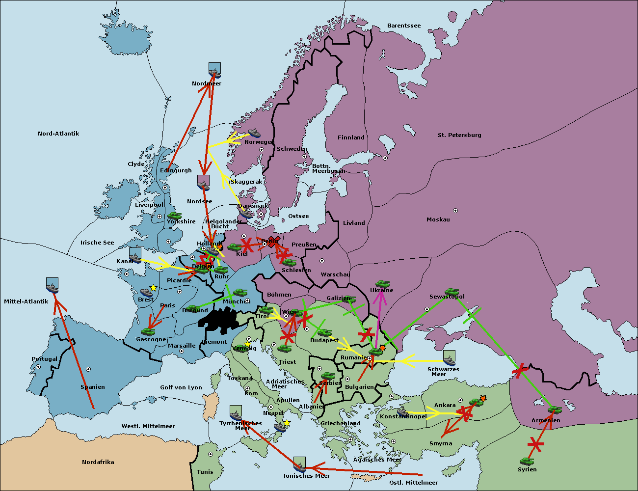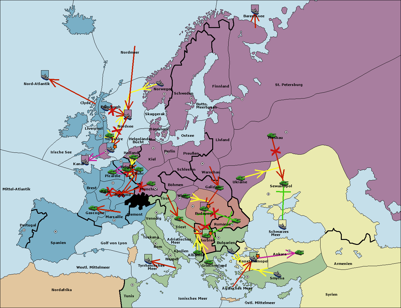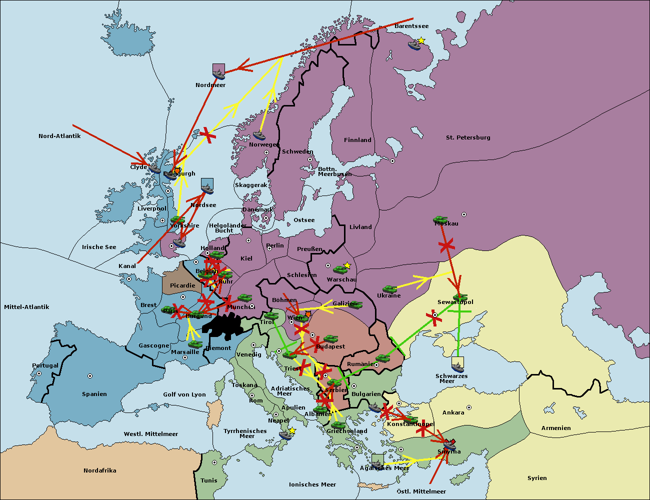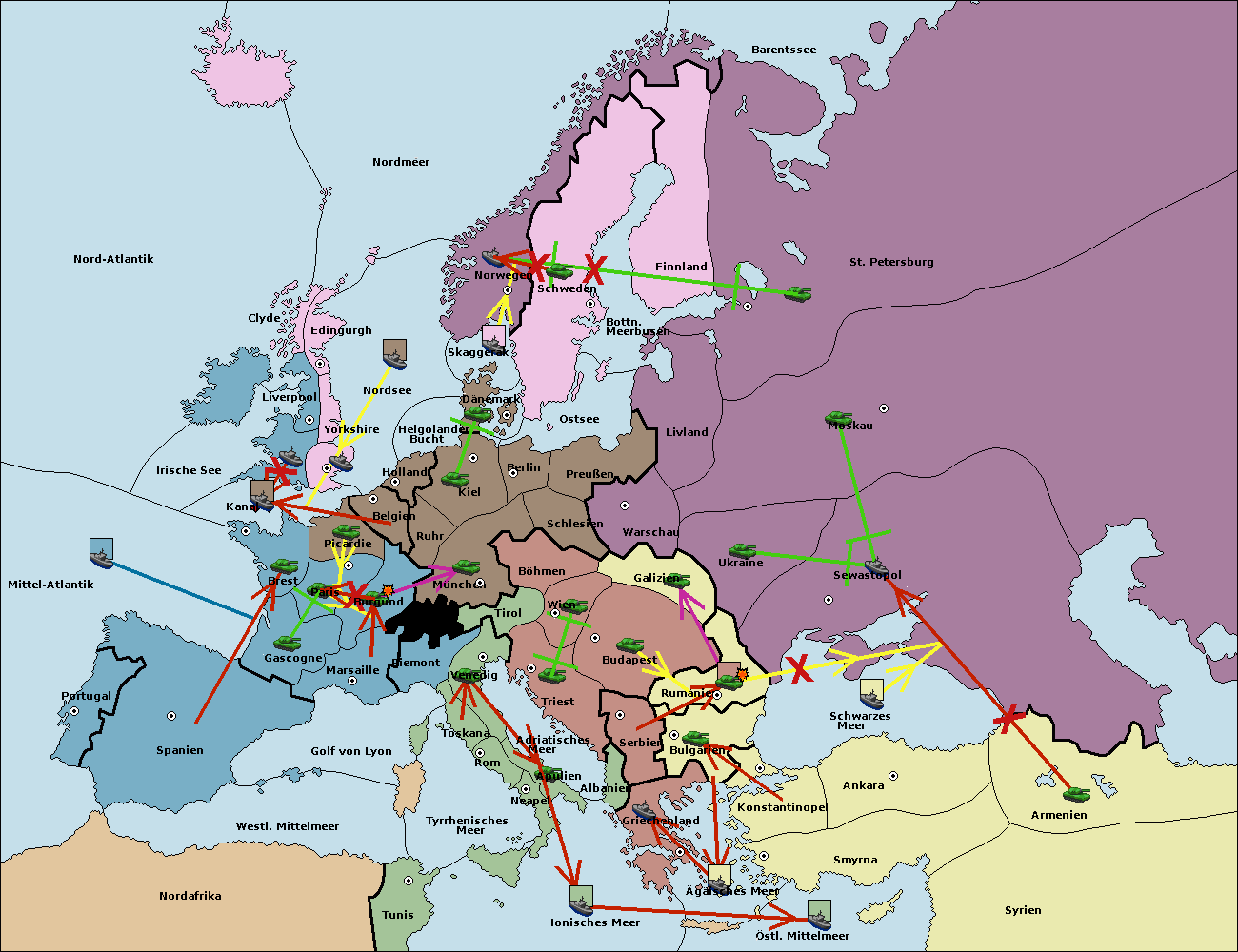 • Die Flotte in Spanien (Südküste) support move nach Golf von Lyon von westl. Mittelmeer.