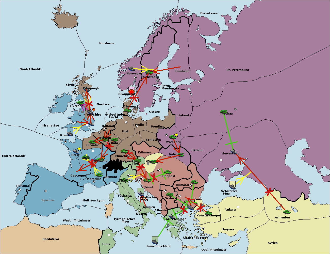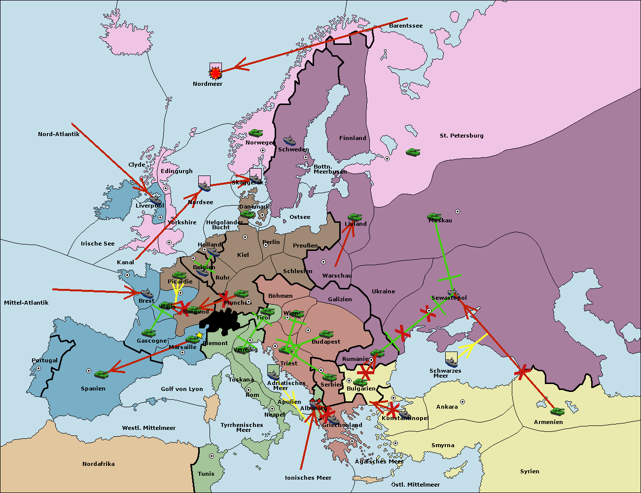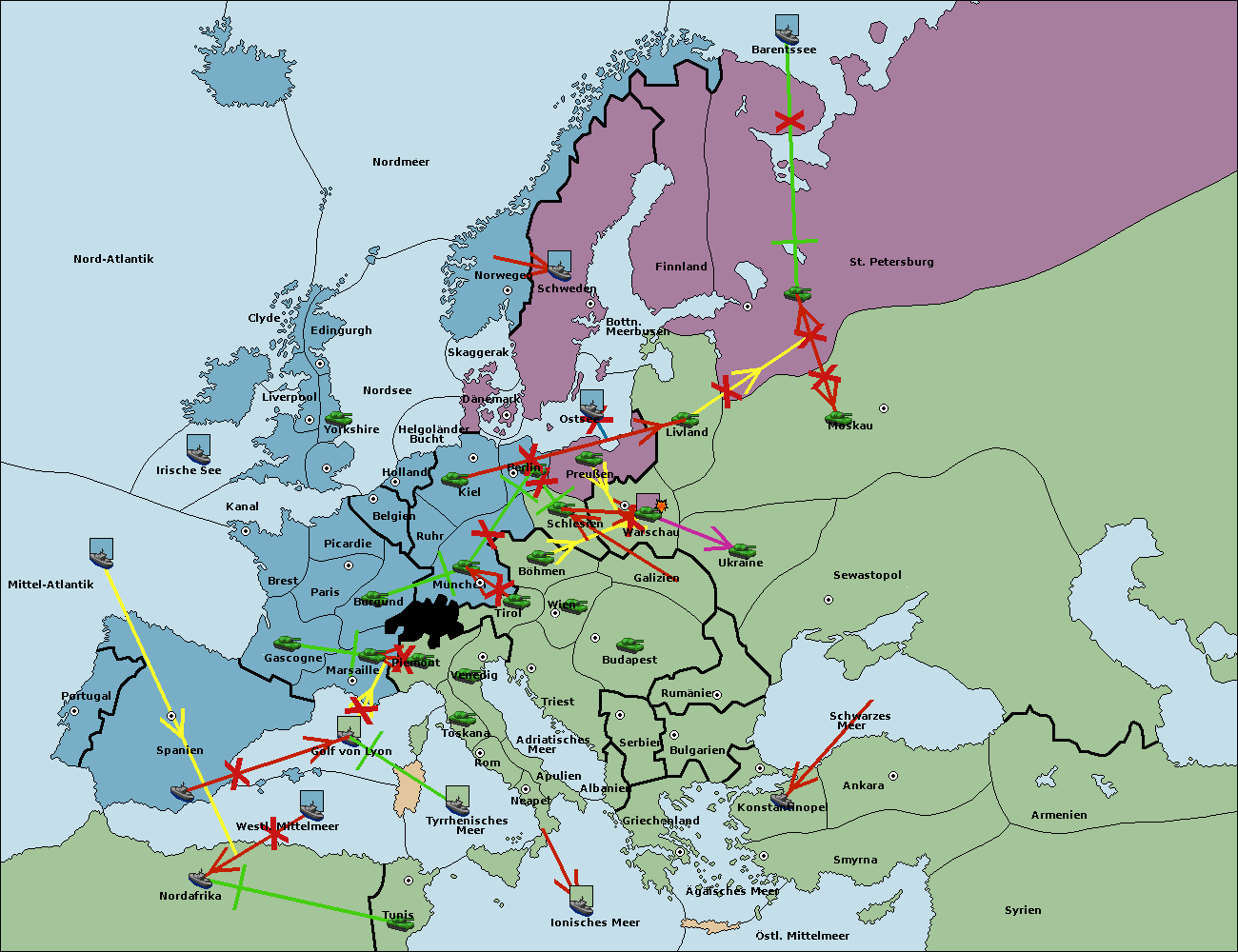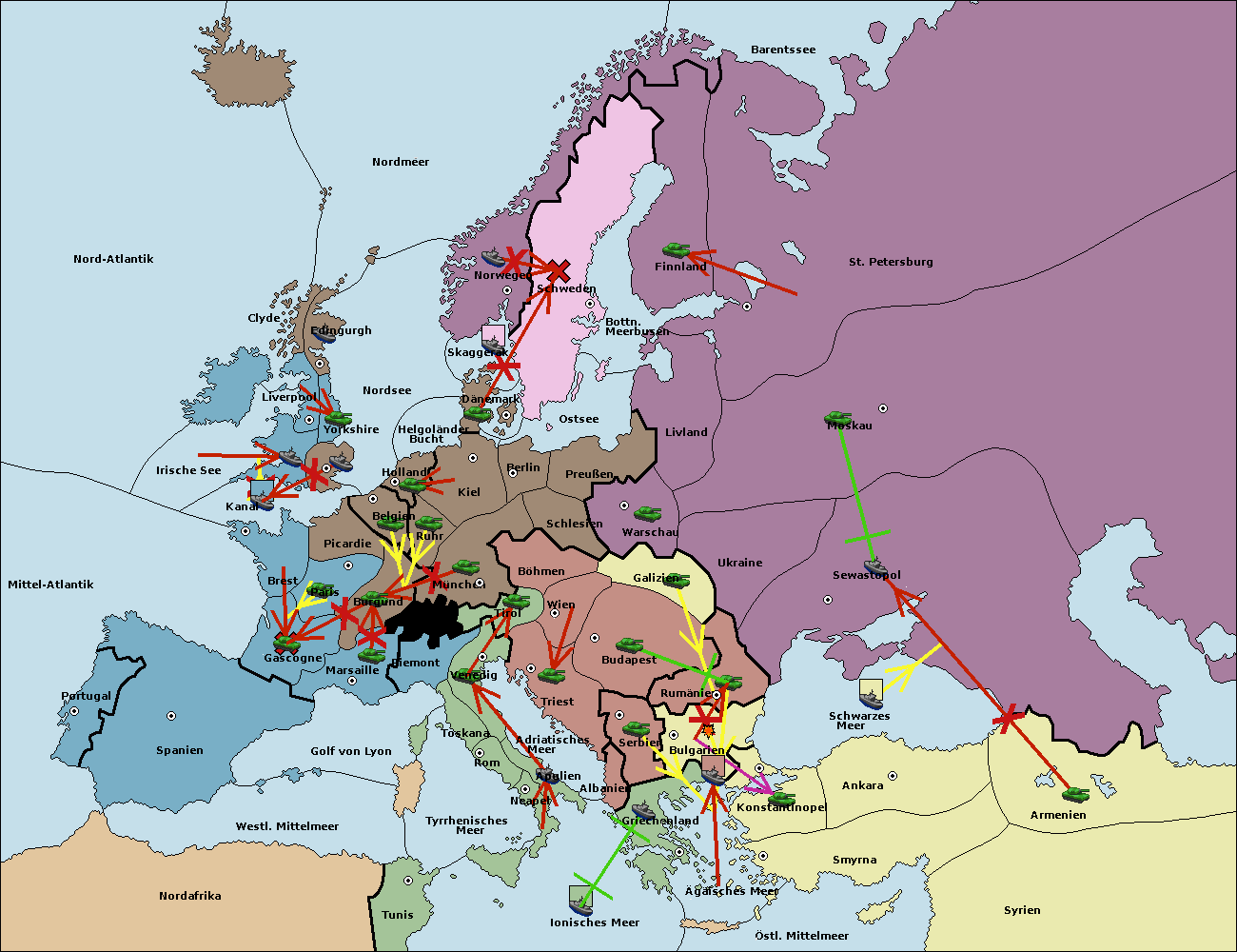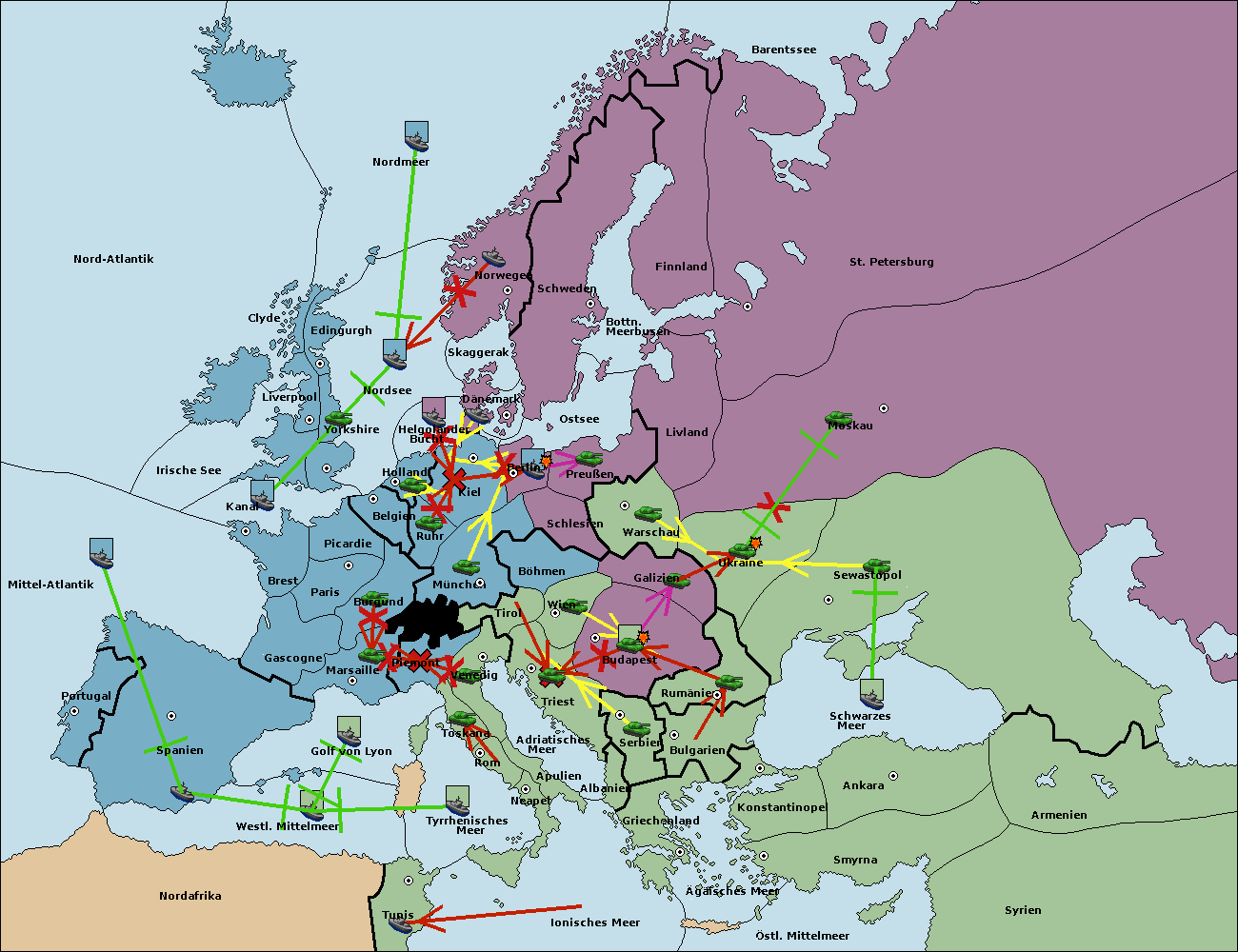 • Die Flotte in Spanien (Südküste) support move nach Golf von Lyon von westl. Mittelmeer.
