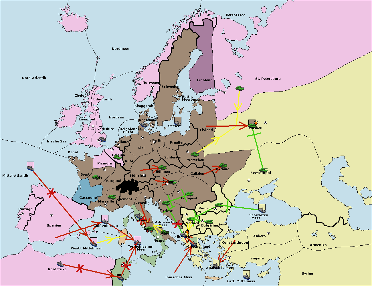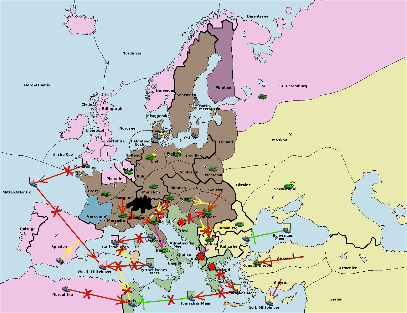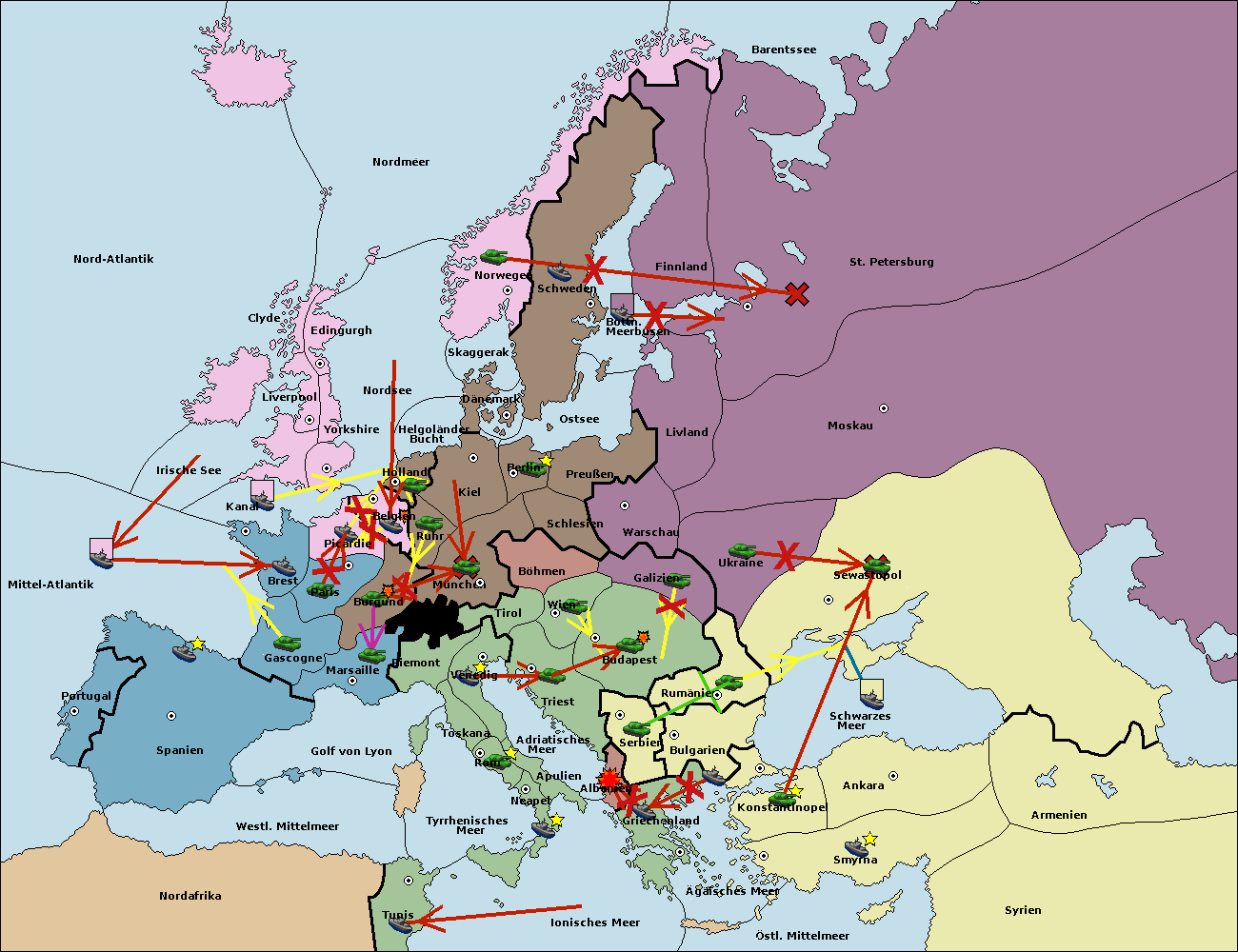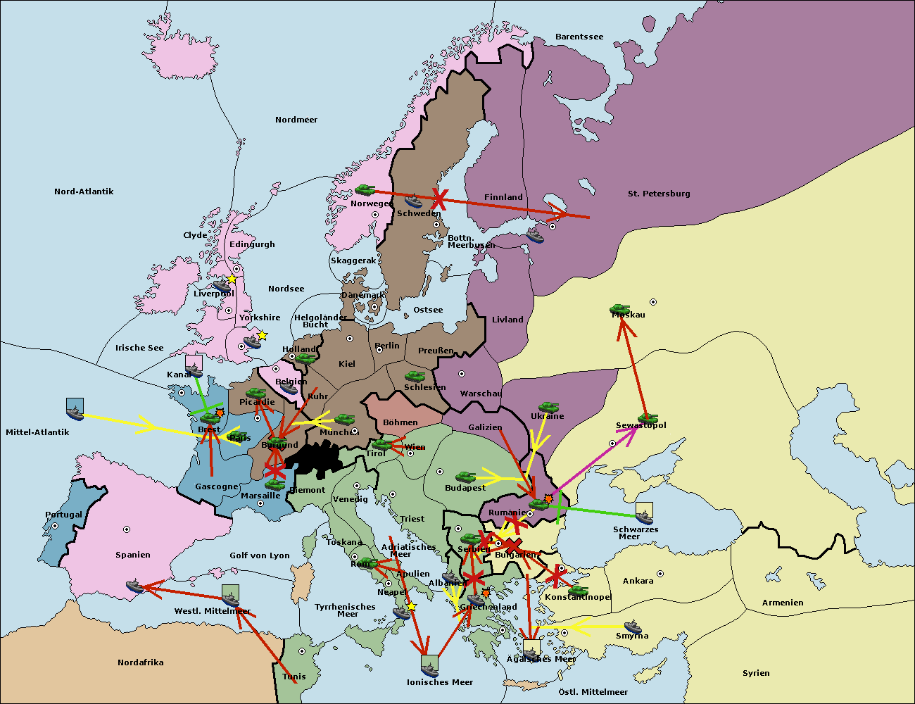 • Die Flotte in Bulgarien (Südküste) move nach Griechenland. (gescheitert)