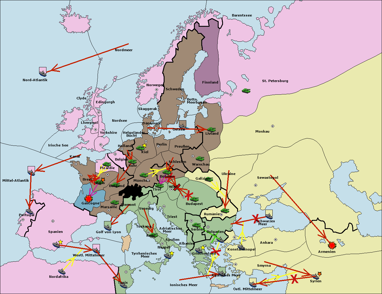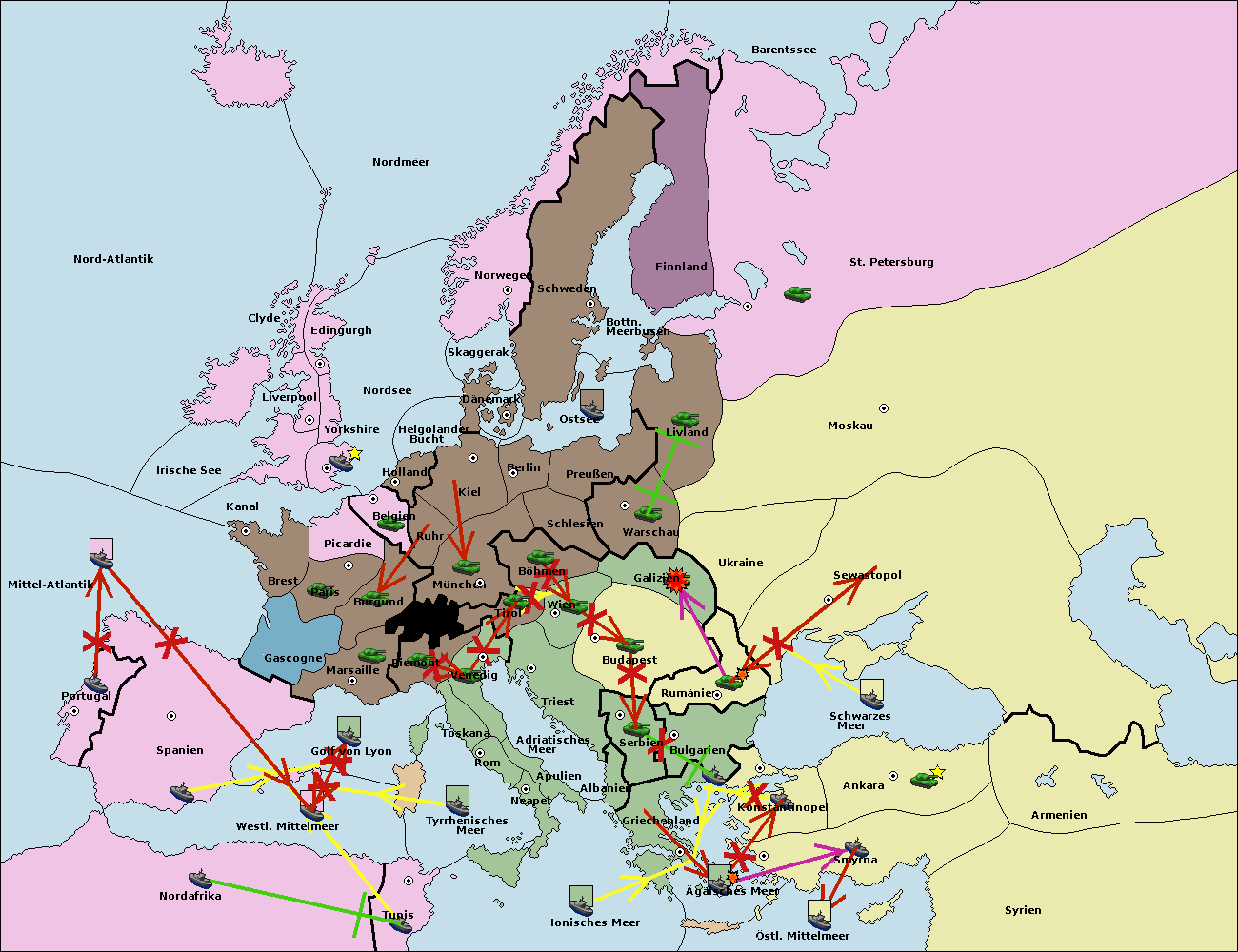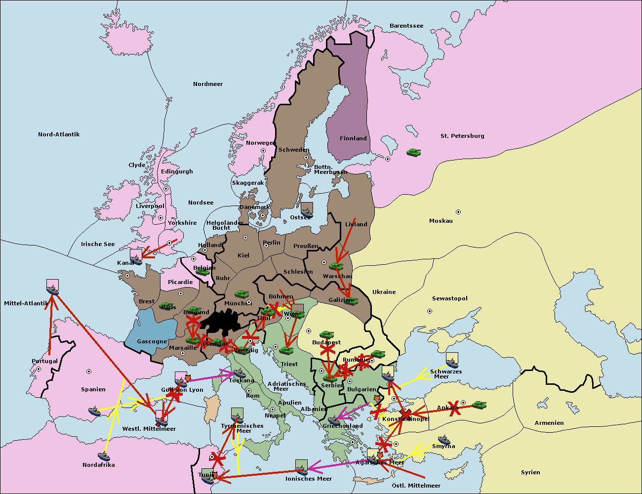 • Die Flotte in Bulgarien (Südküste) move nach Griechenland. (gescheitert)