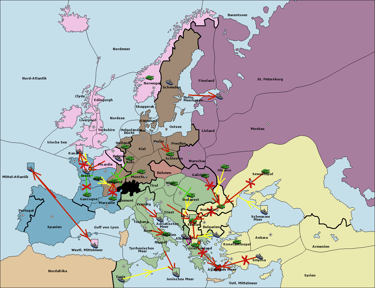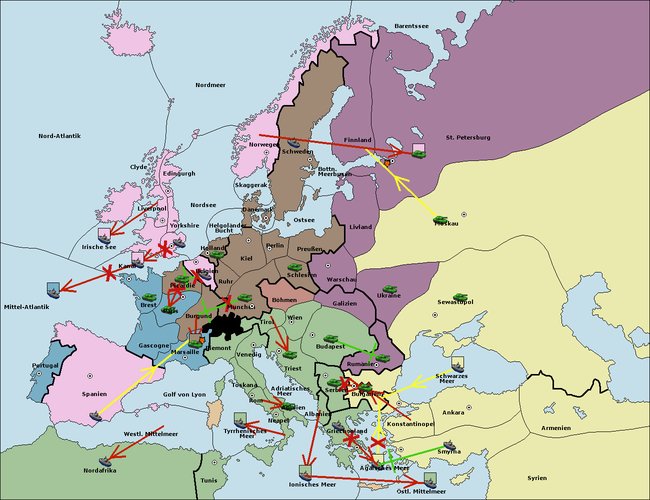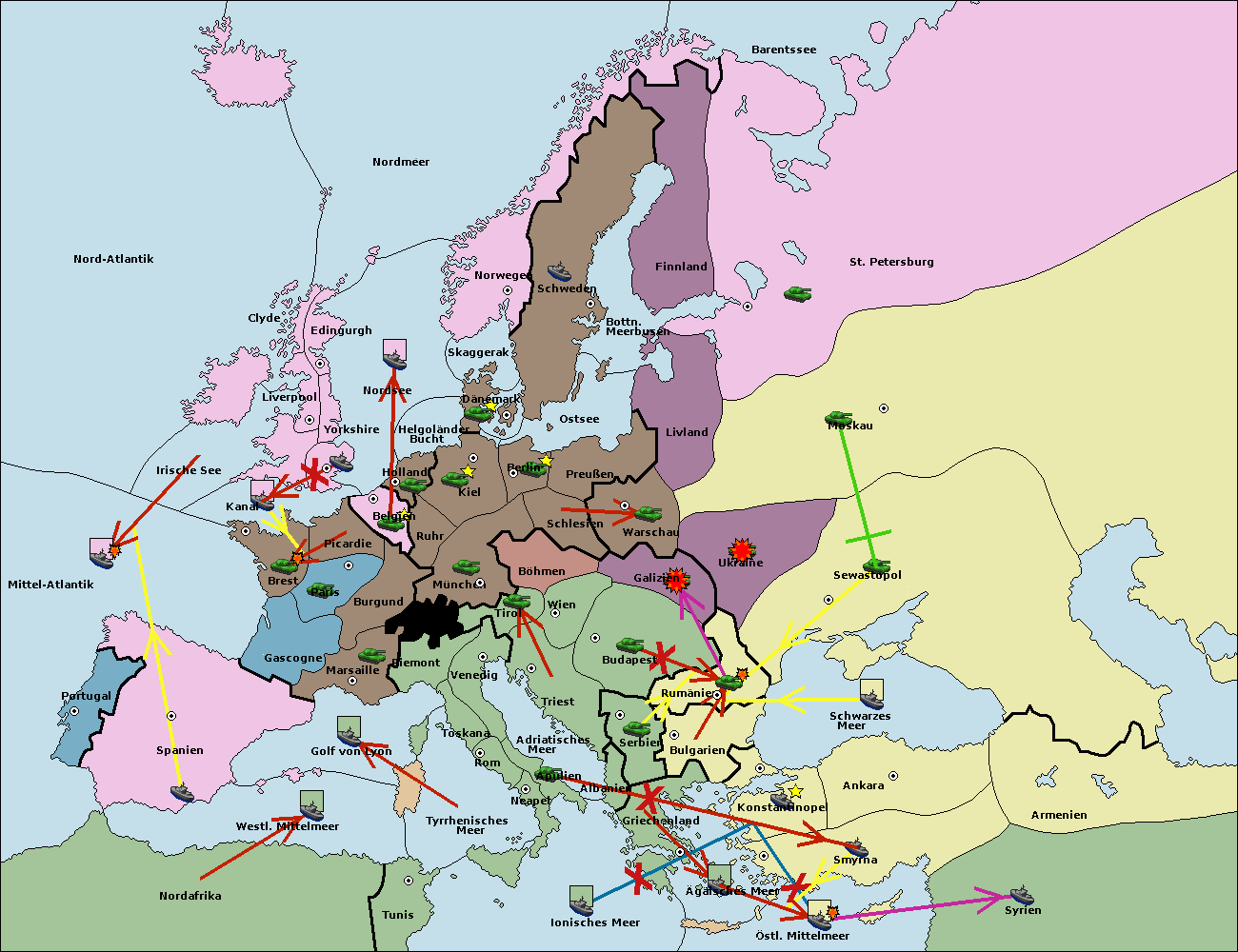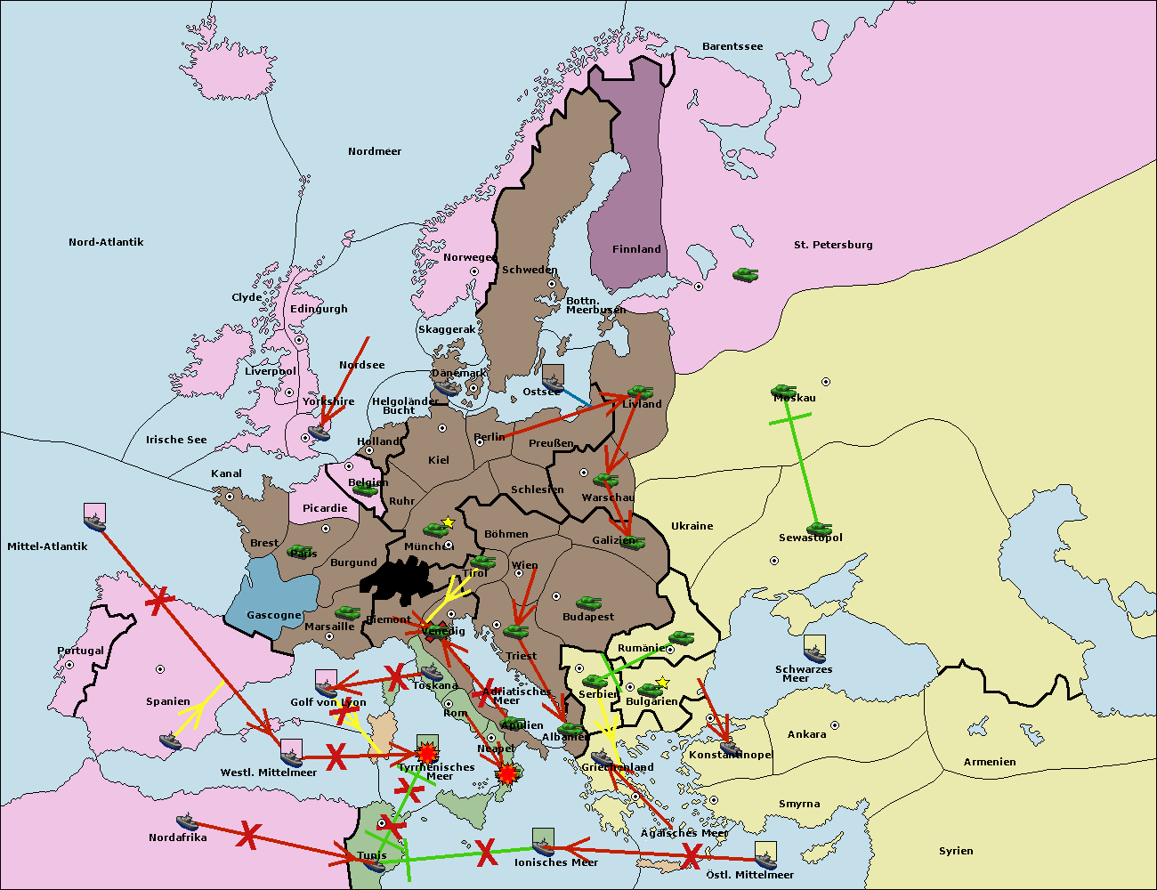 • Die Flotte in Bulgarien (Südküste) move nach Griechenland. (gescheitert)