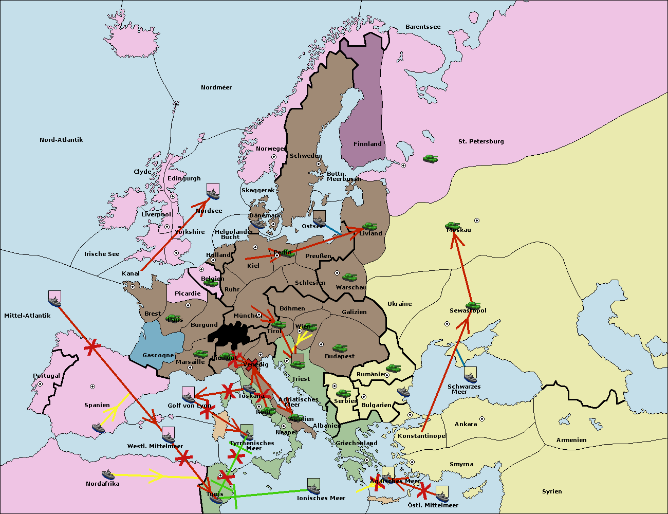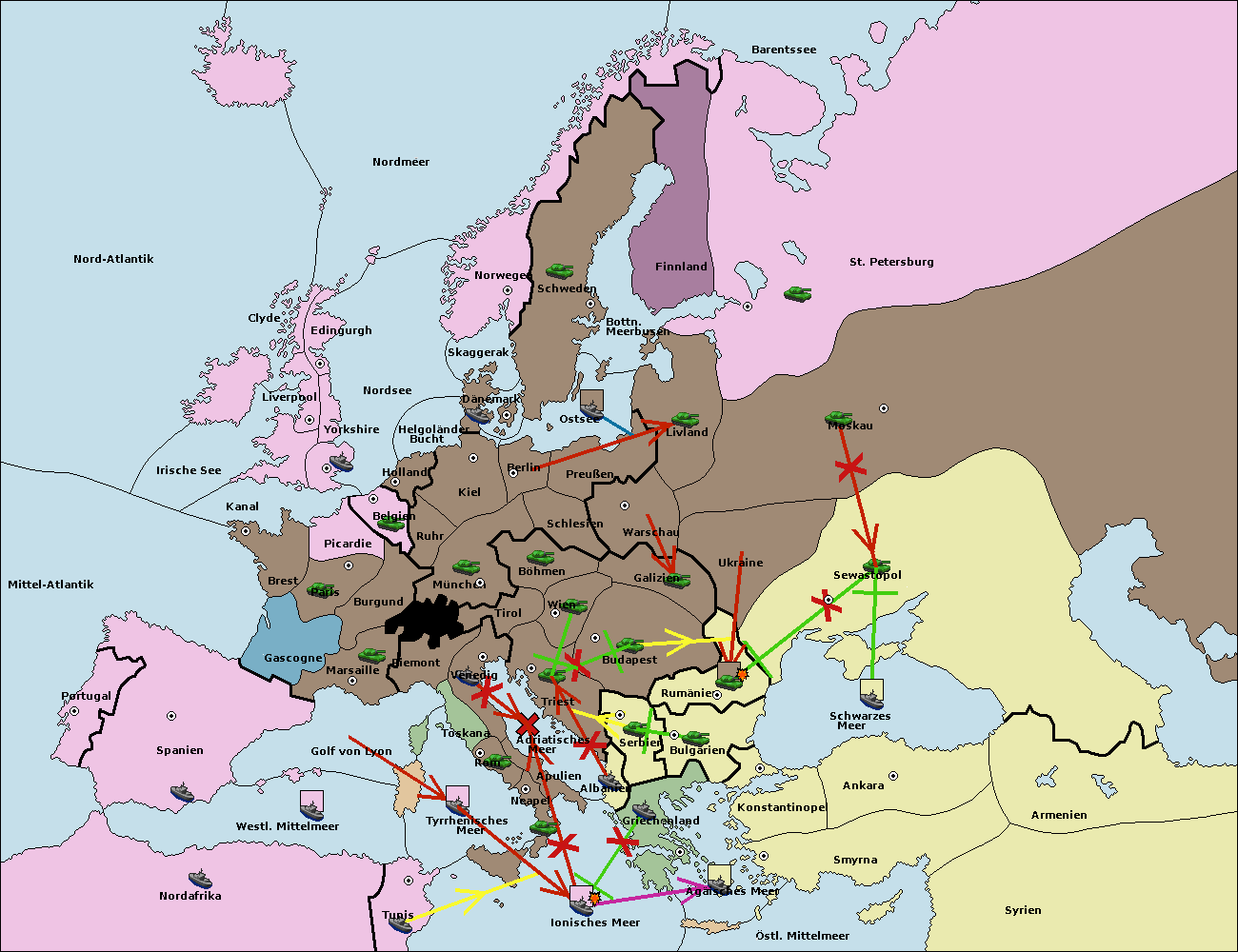 • Die Flotte in Nord Afrika support move nach Tunis von westl. Mittelmeer.