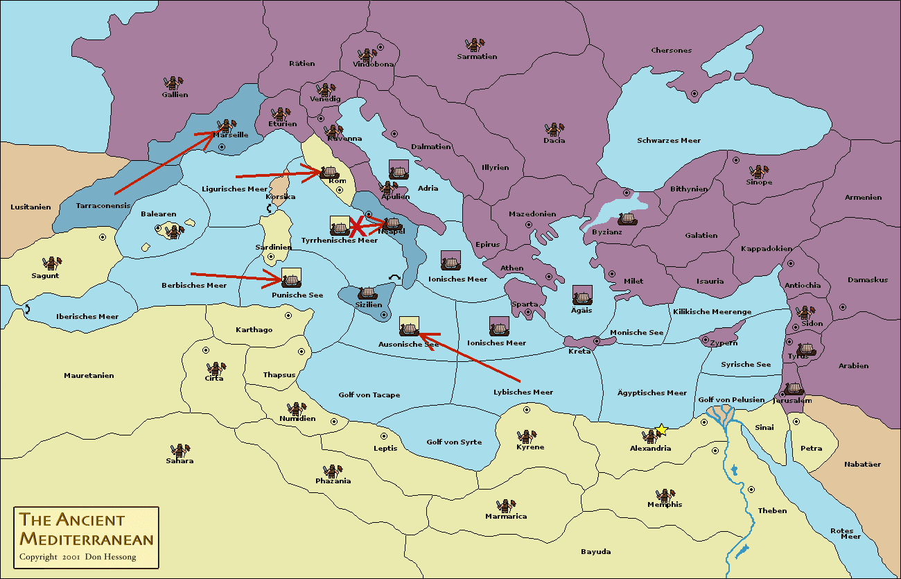 • Die Flotte in Ausonische See move nach Tyrrhenisches Meer.