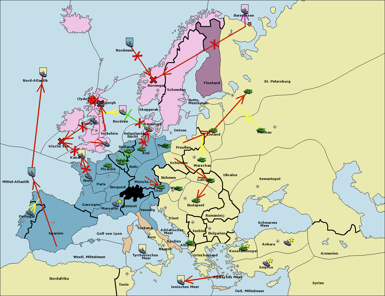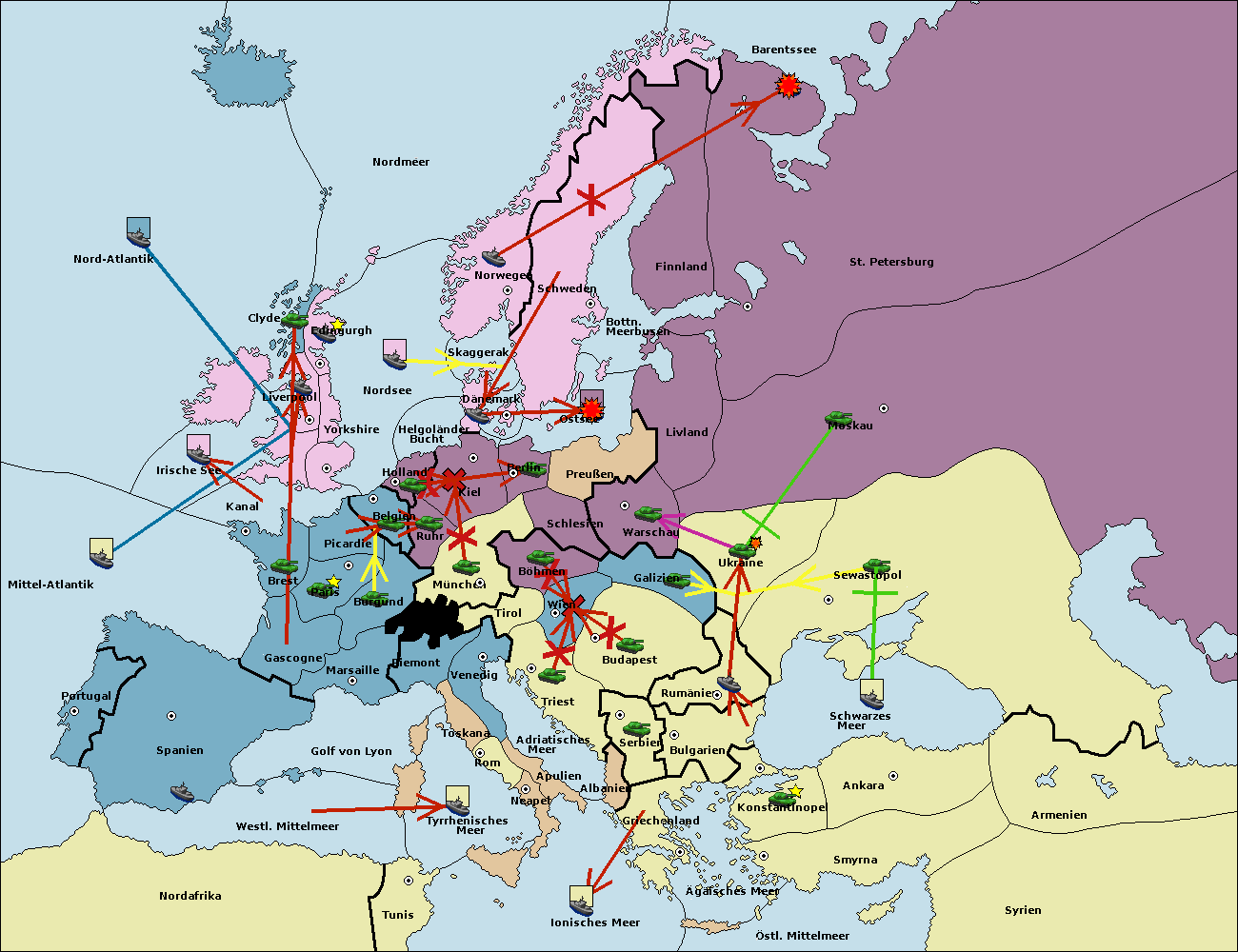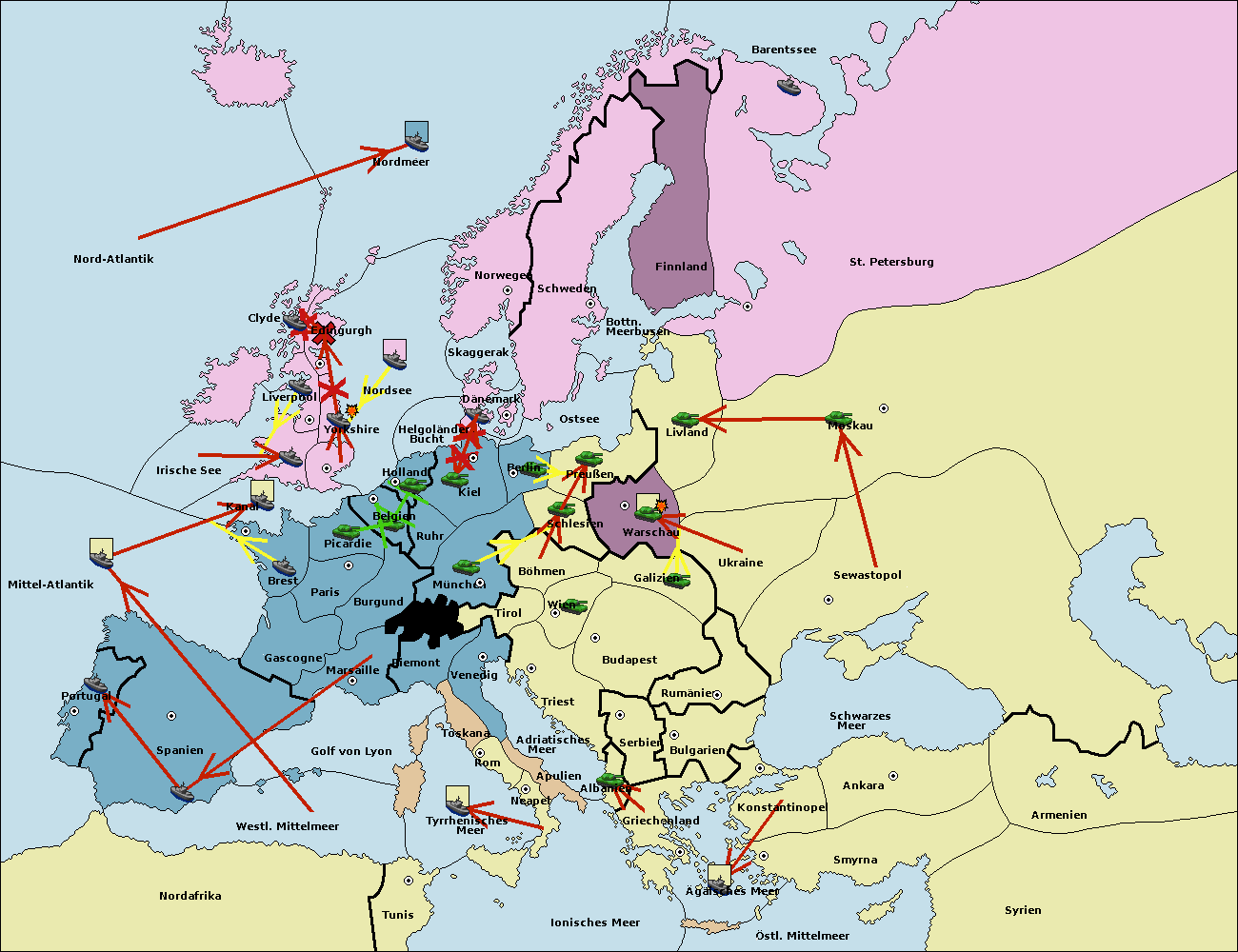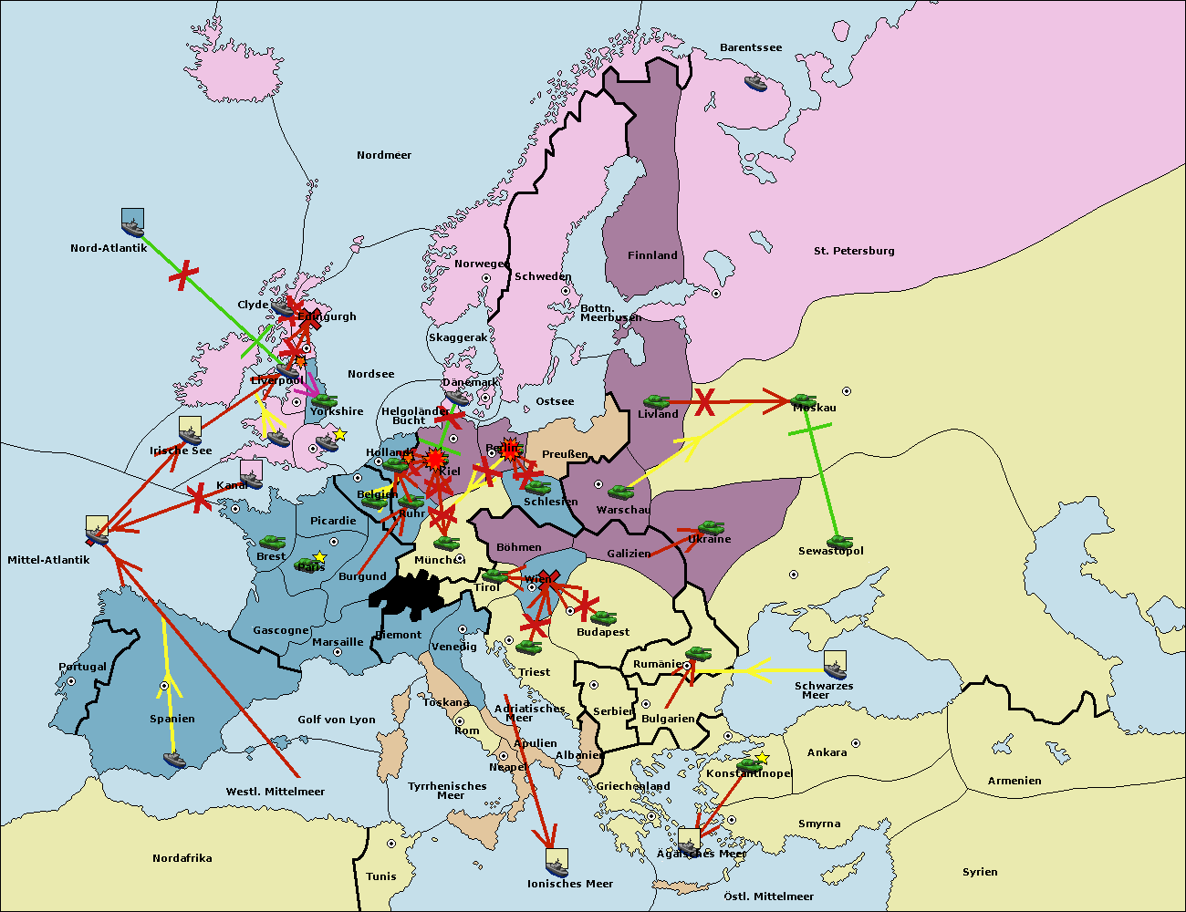 • Die Armee in Kiel wird zerstörtFlotte in Kiel gebaut.