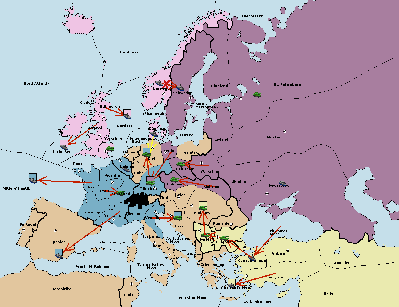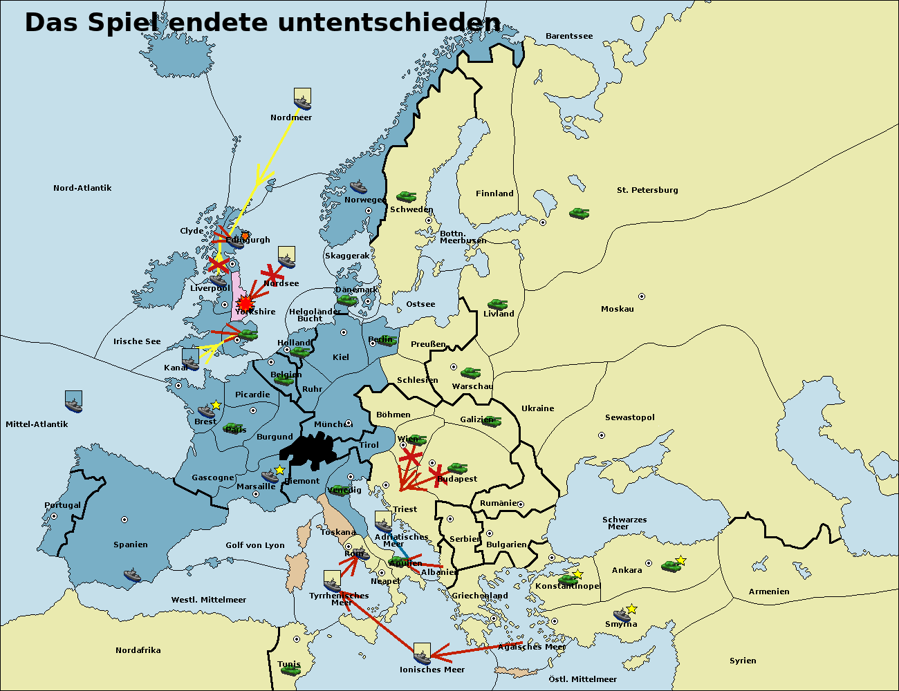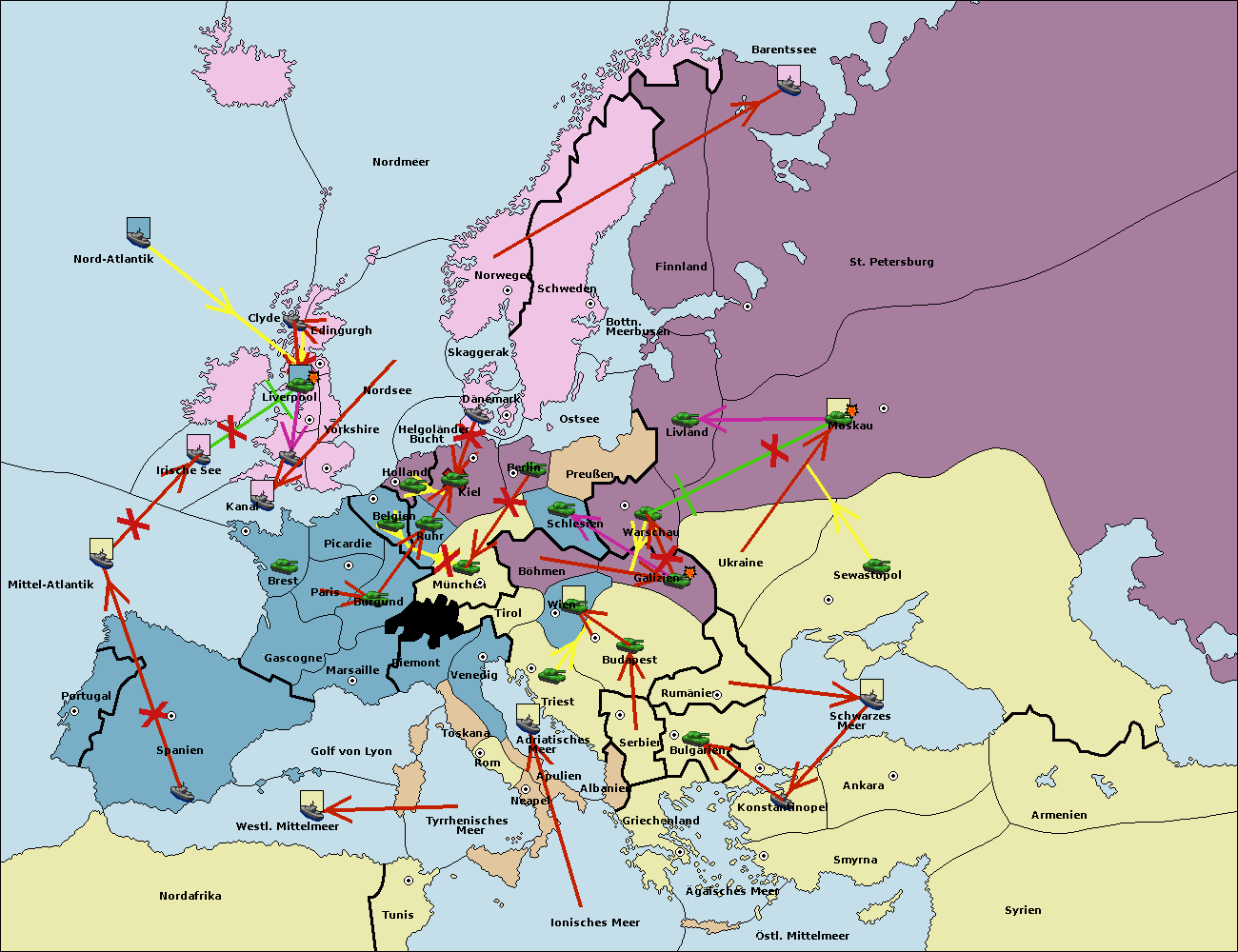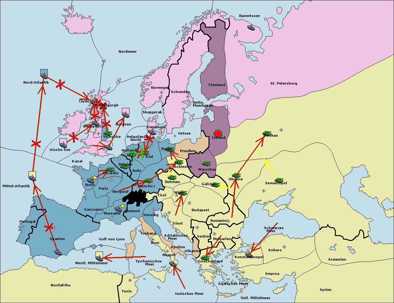• Die Armee in Kiel wird zerstörtFlotte in Kiel gebaut.