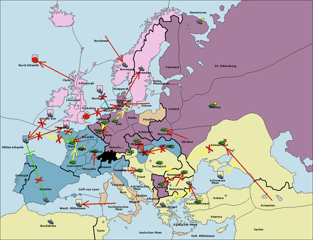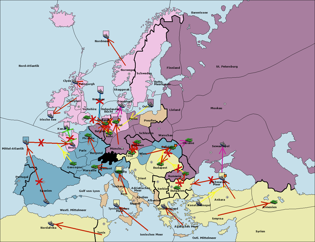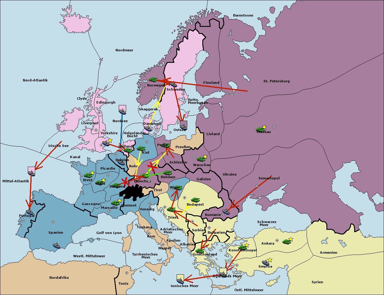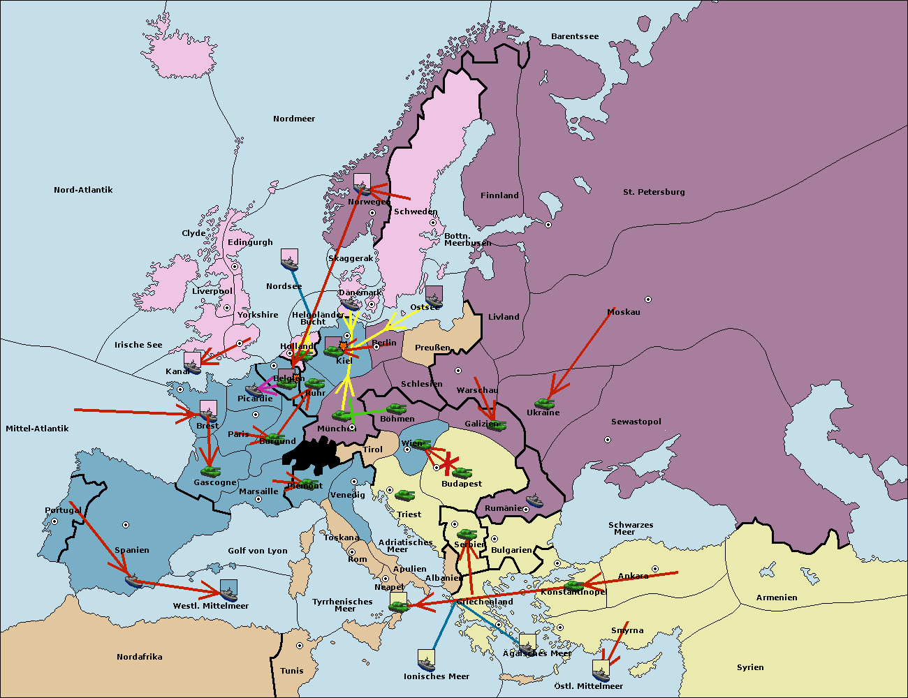 • Die Armee in Kiel wird zerstörtFlotte in Kiel gebaut.