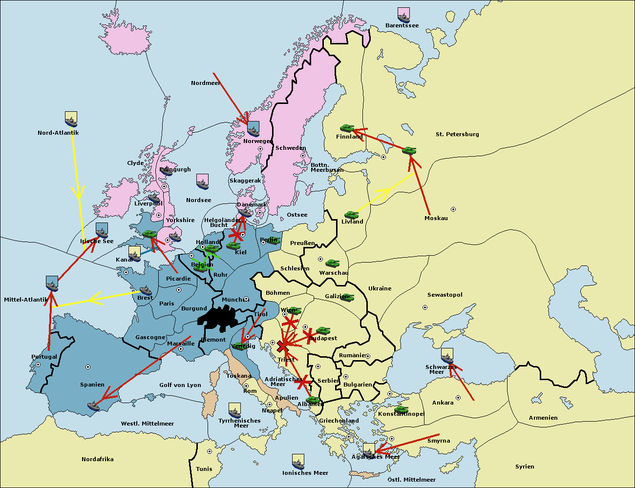 • Die Armee in Budapest support move nach Triest von Serbien.