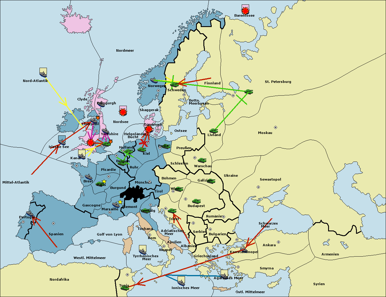 • Die Flotte in Spanien (Südküste) move nach westl. Mittelmeer.