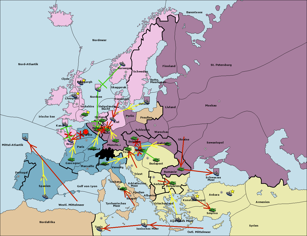 • Die Armee in Belgien support move nach Ruhr von Kiel.