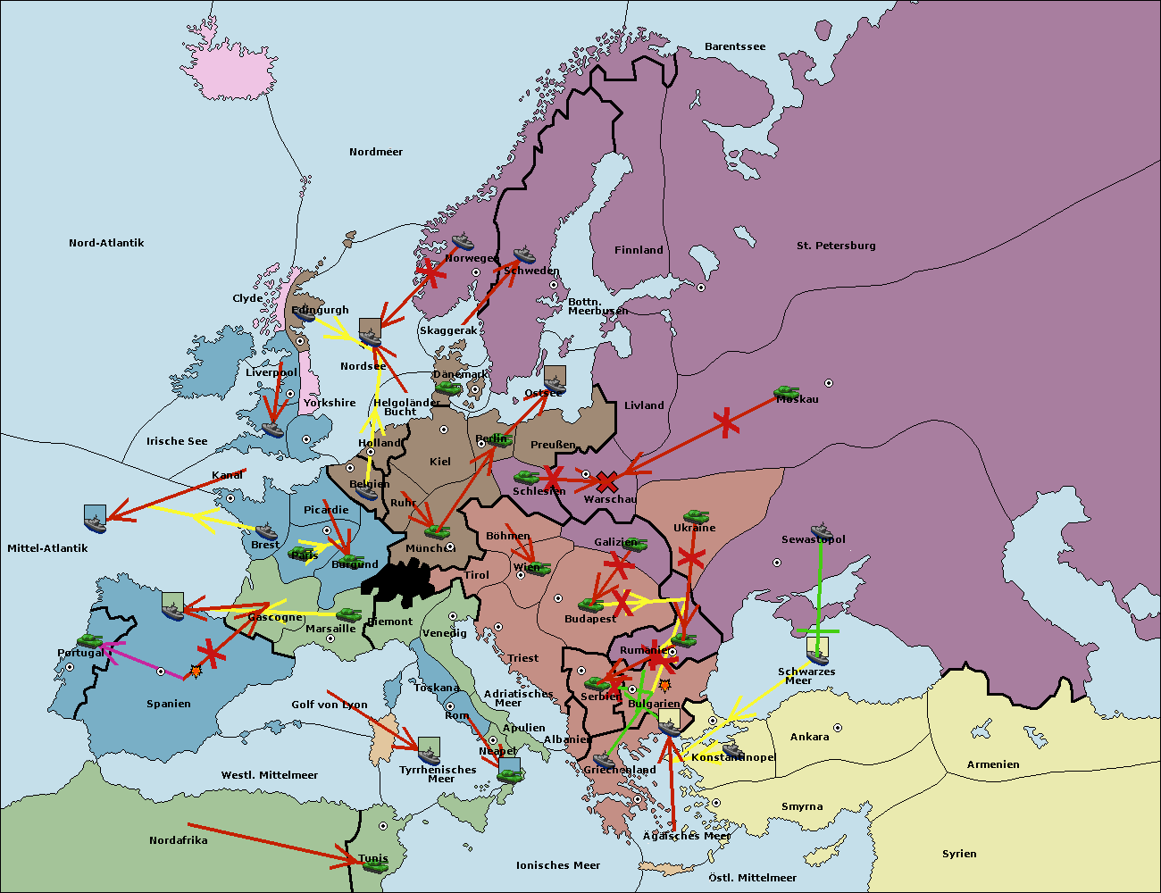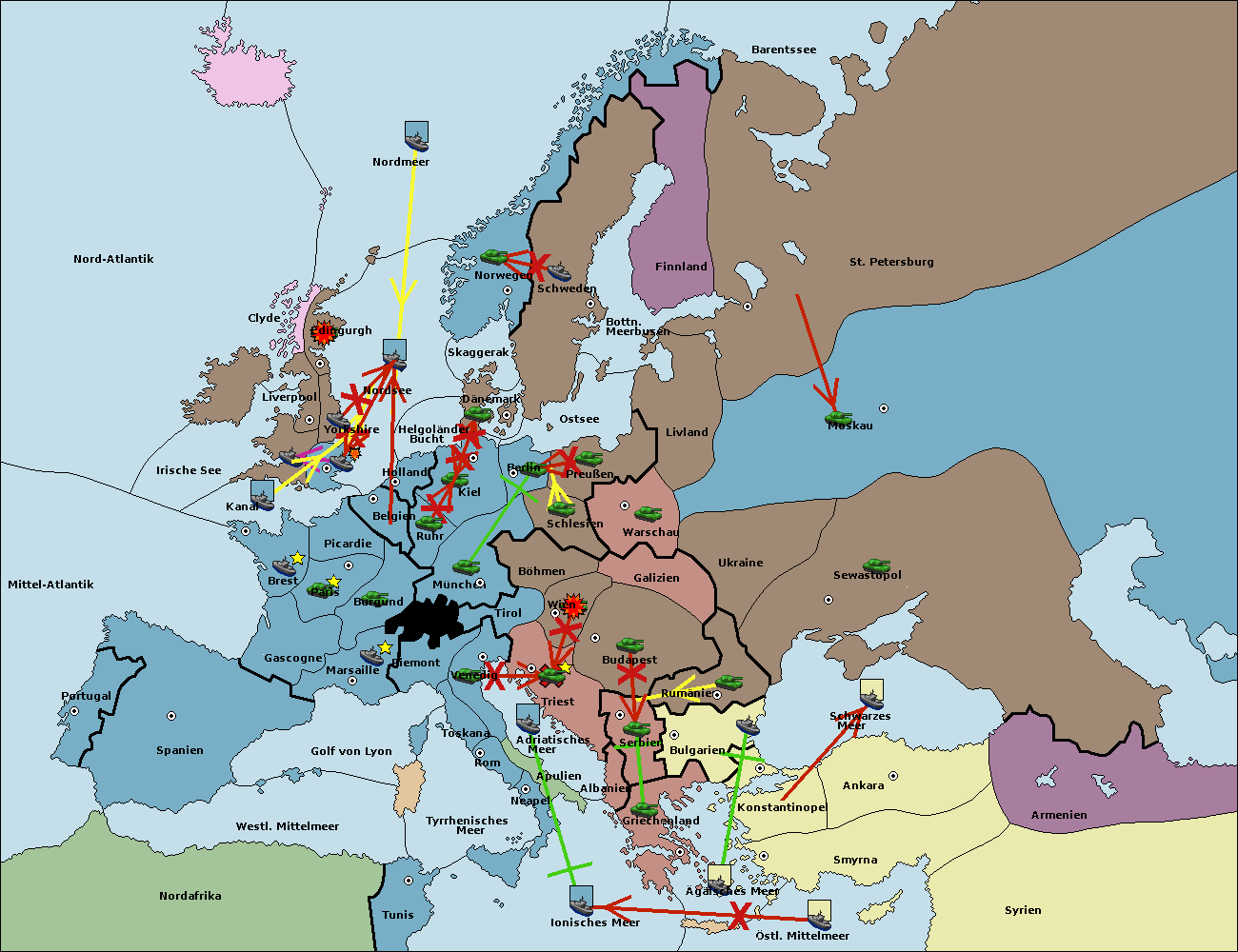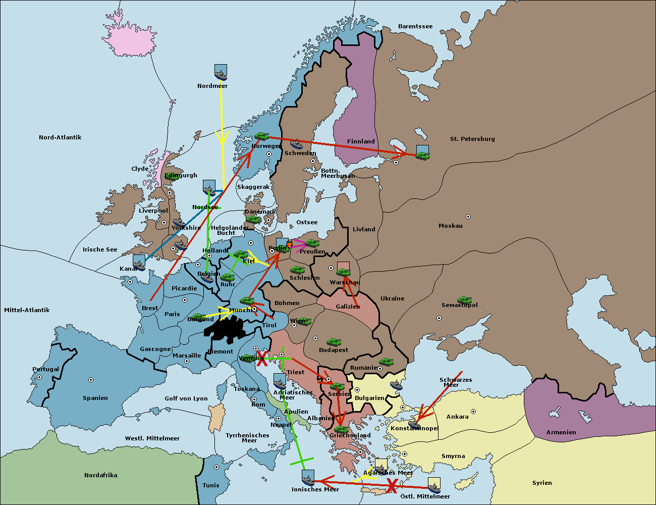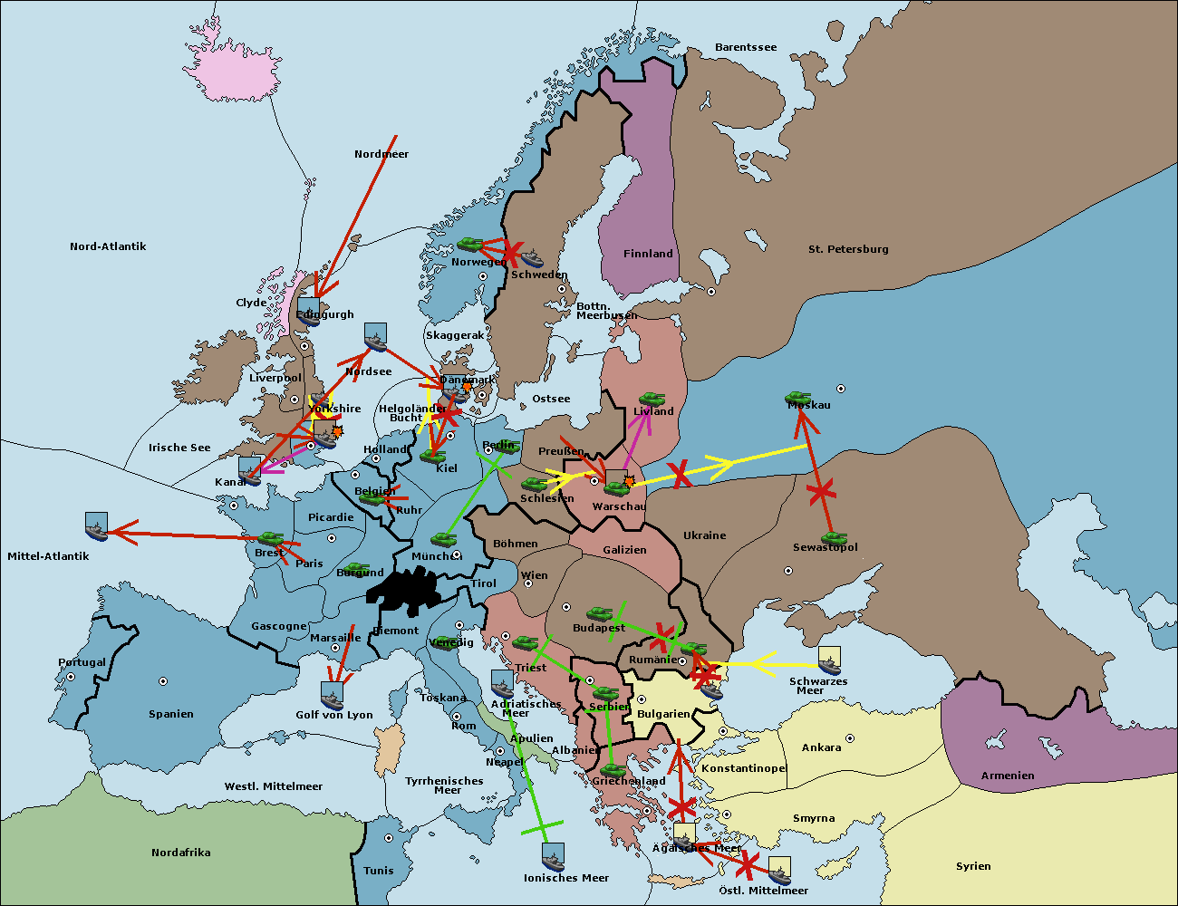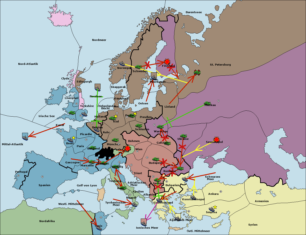 • Die Armee in Warschau support move nach Moskau von Sewastopol.