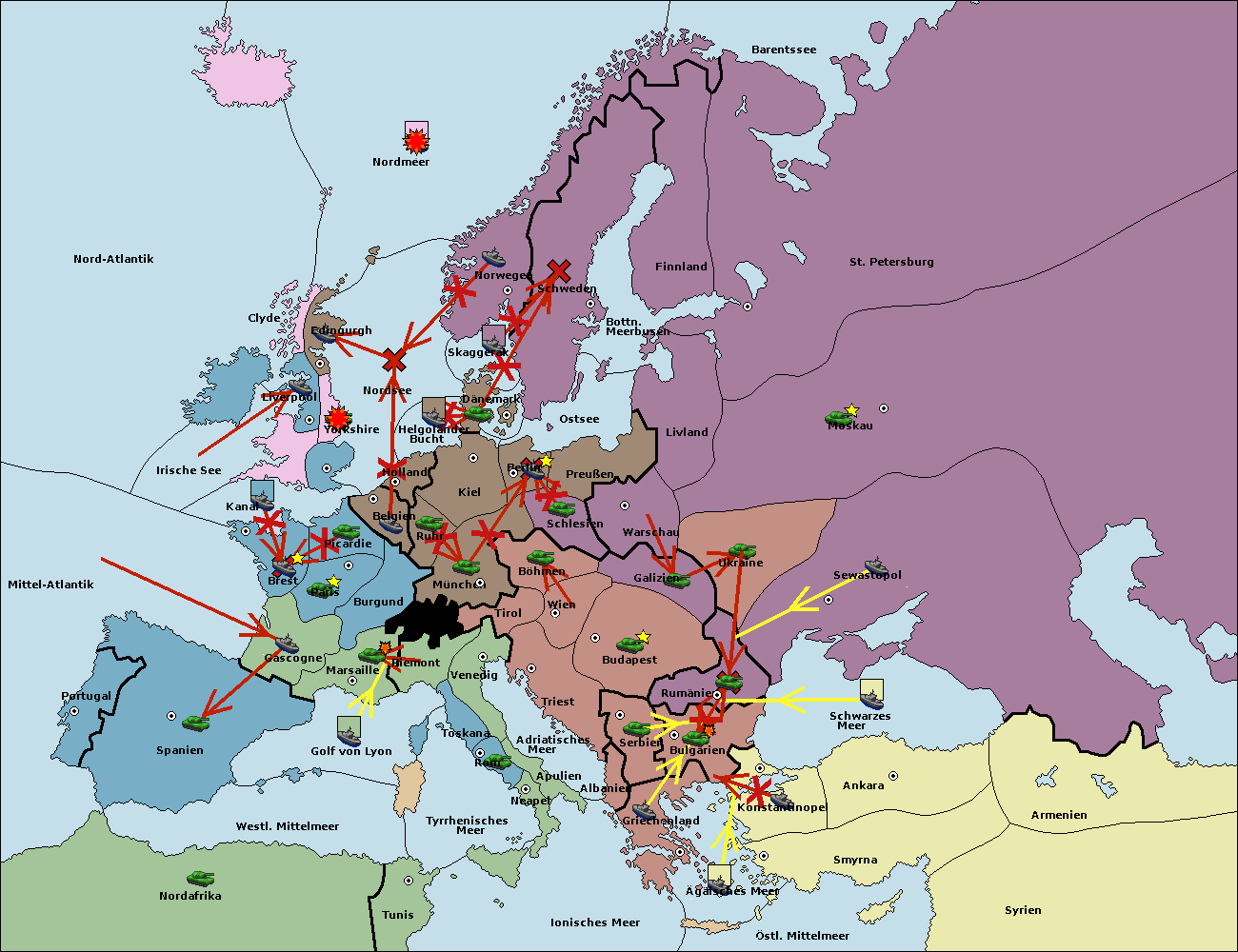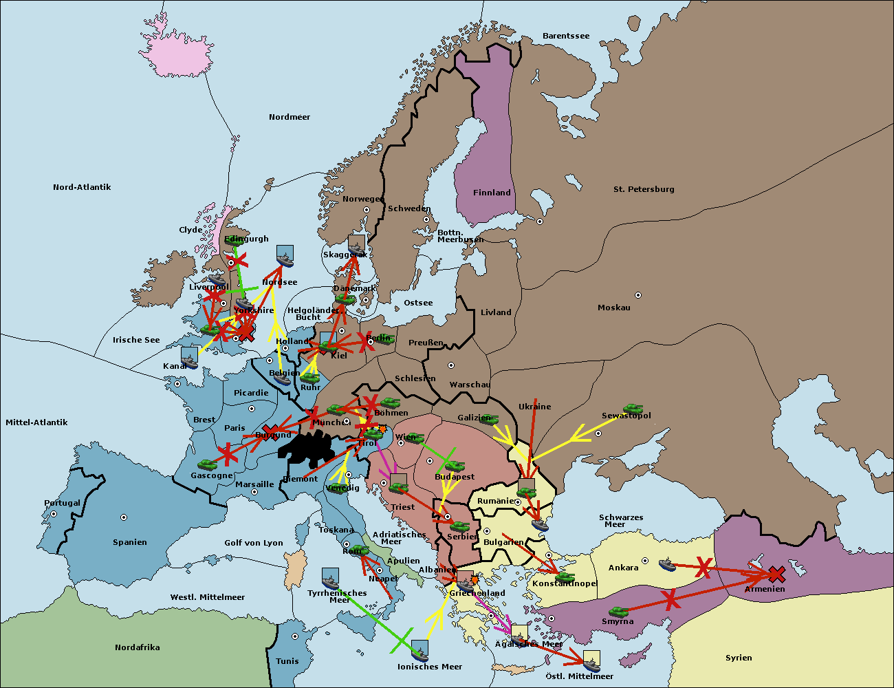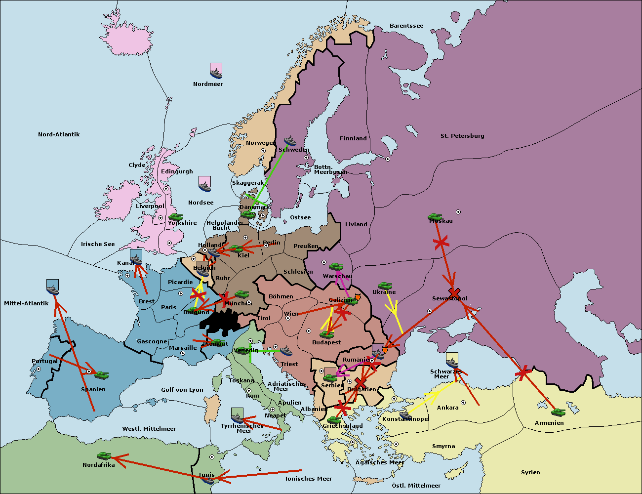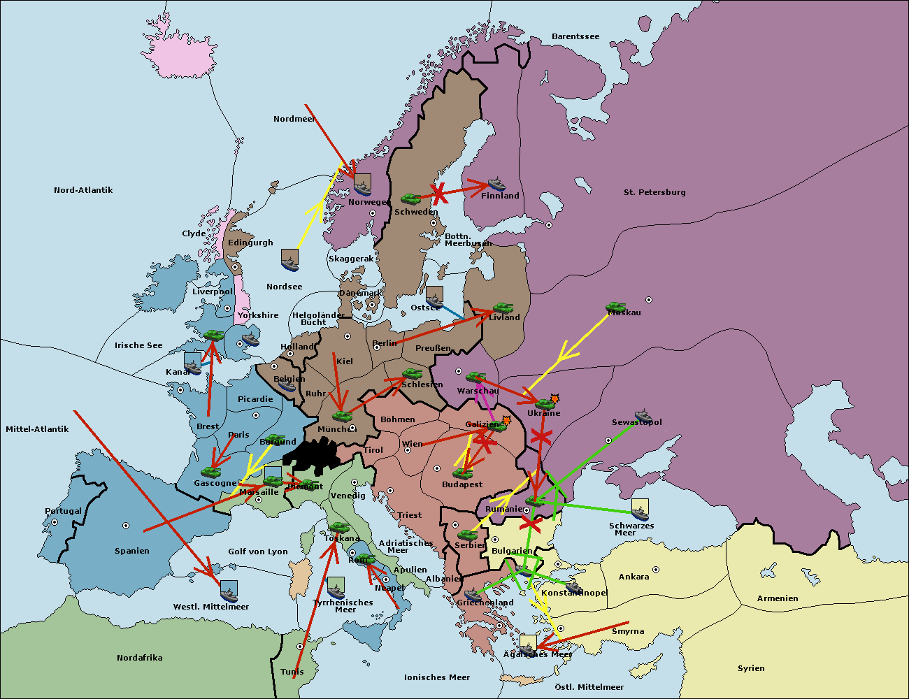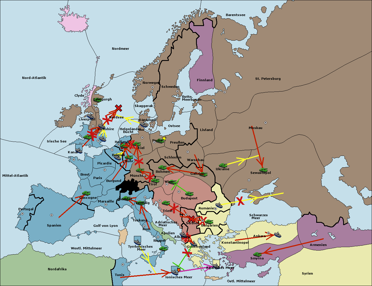 • Die Armee in Warschau support move nach Moskau von Sewastopol.