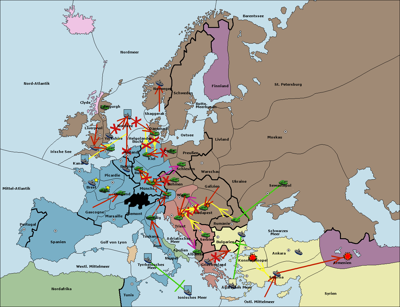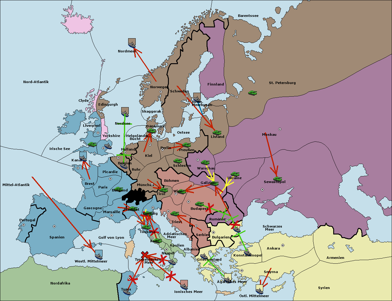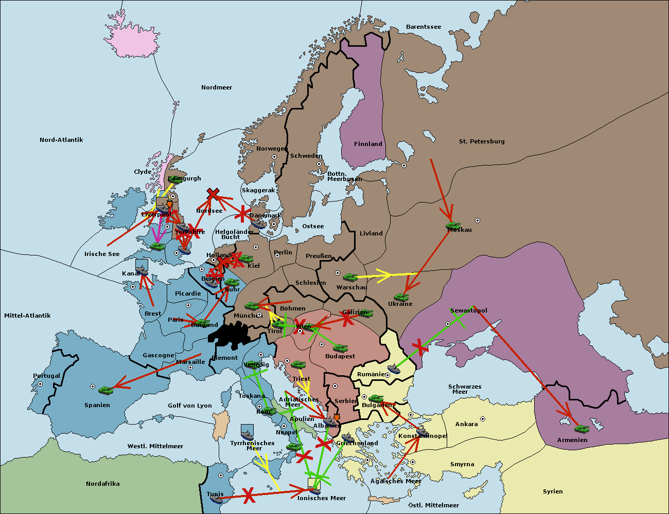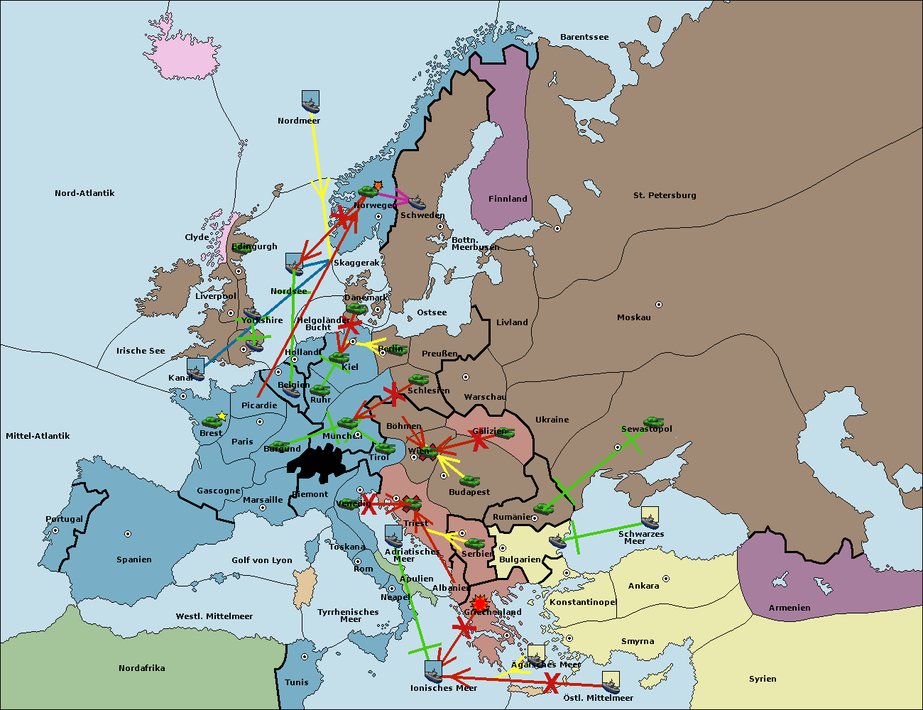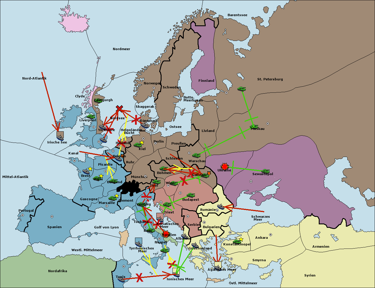 • Die Armee in Warschau support move nach Moskau von Sewastopol.