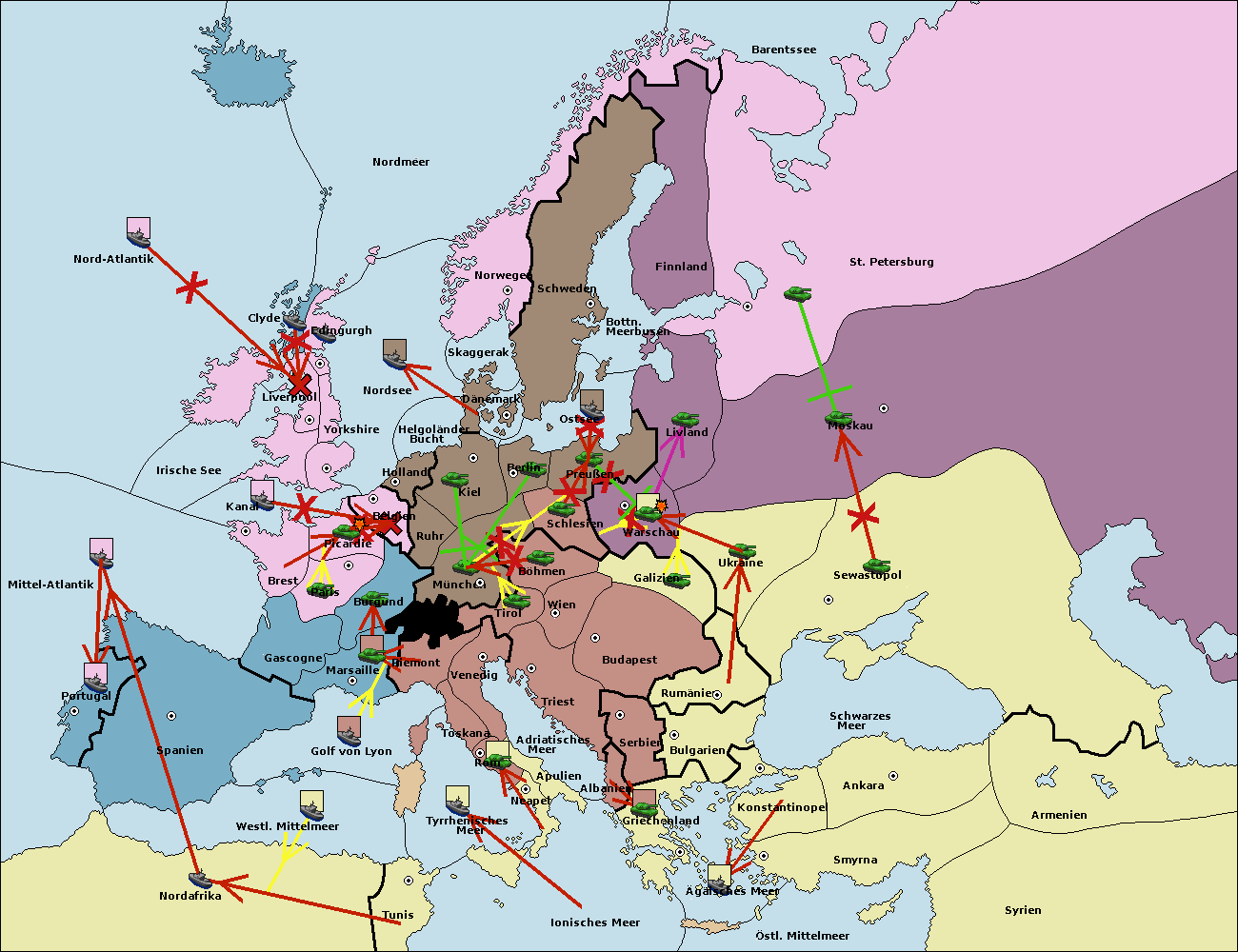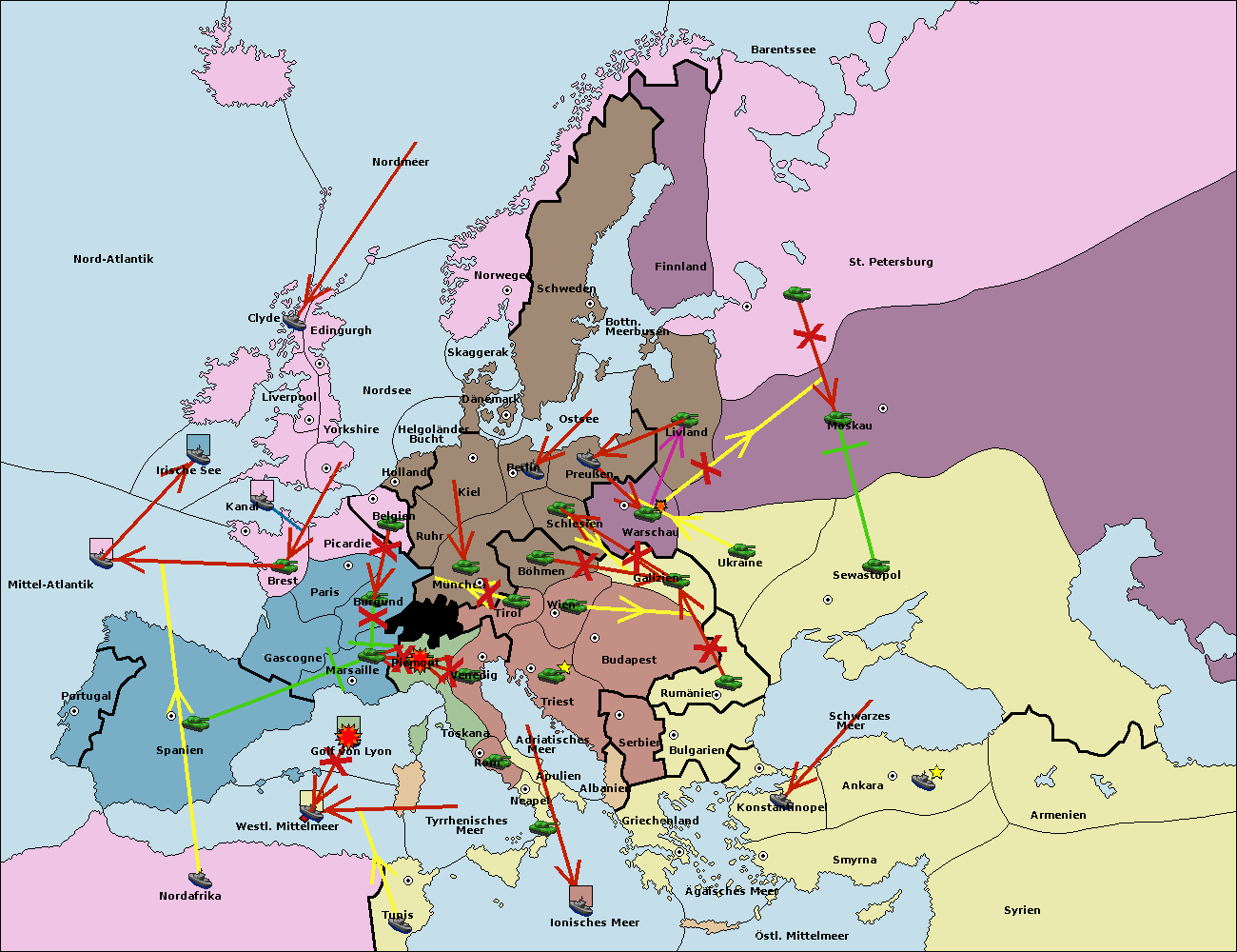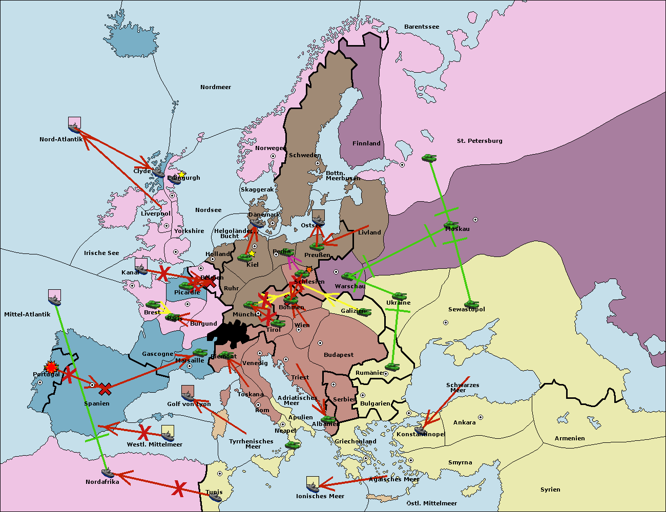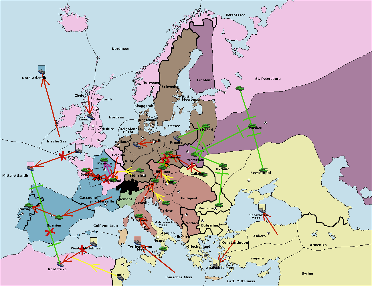 • Die Flotte in Nord Afrika support hold nach westl. Mittelmeer.