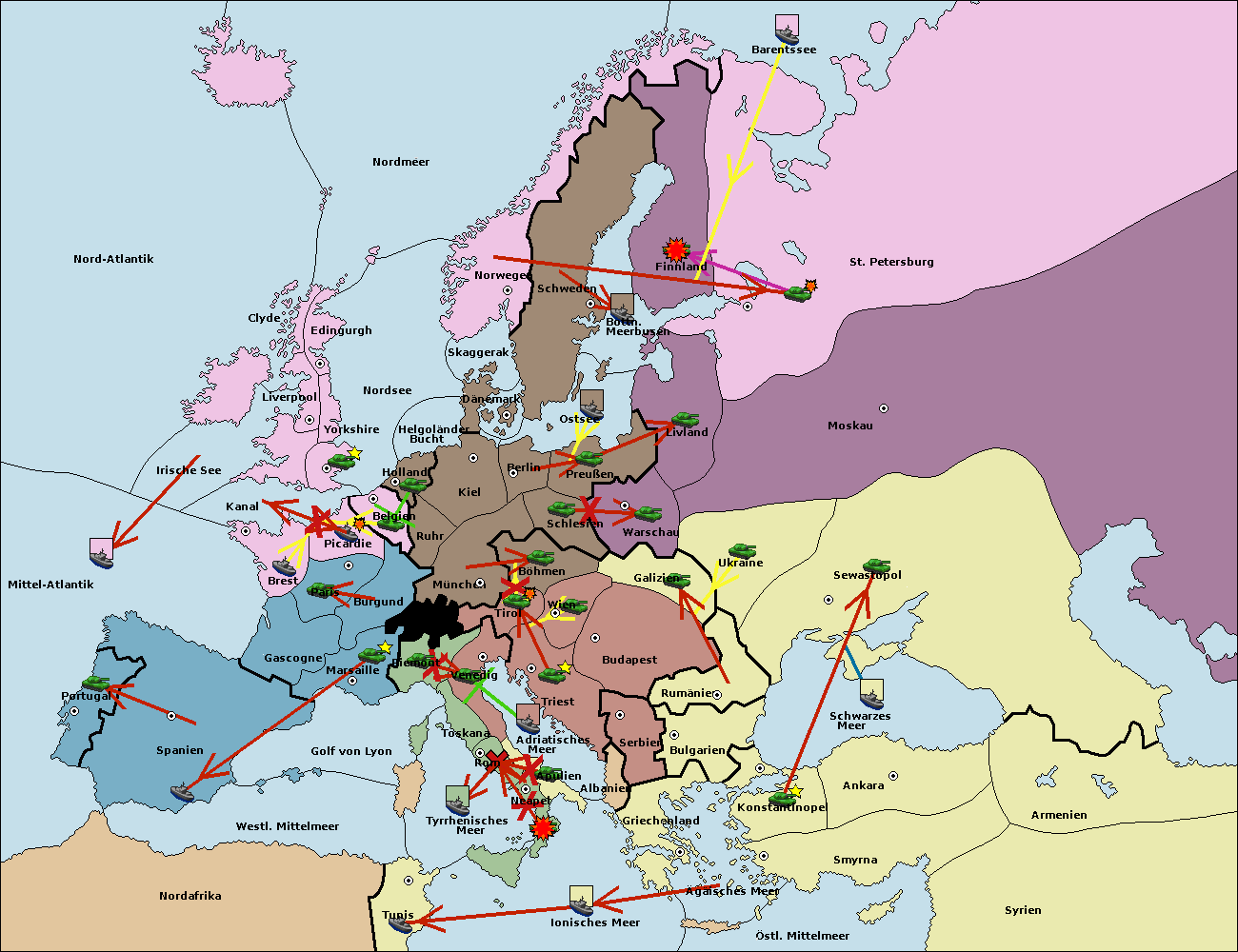 • Die Armee in Wien support move nach Triest von Serbien. (gescheitert)
