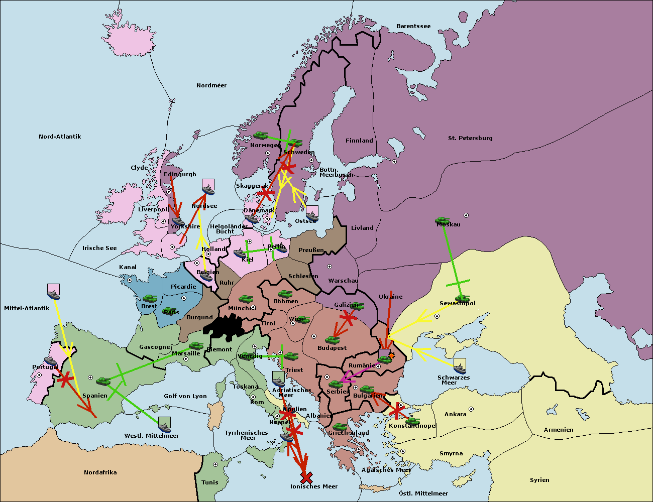• Die Flotte in Bulgarien (Nordküste) wird zerstörtFlotte in Bulgarien (Nordküste) gebaut.