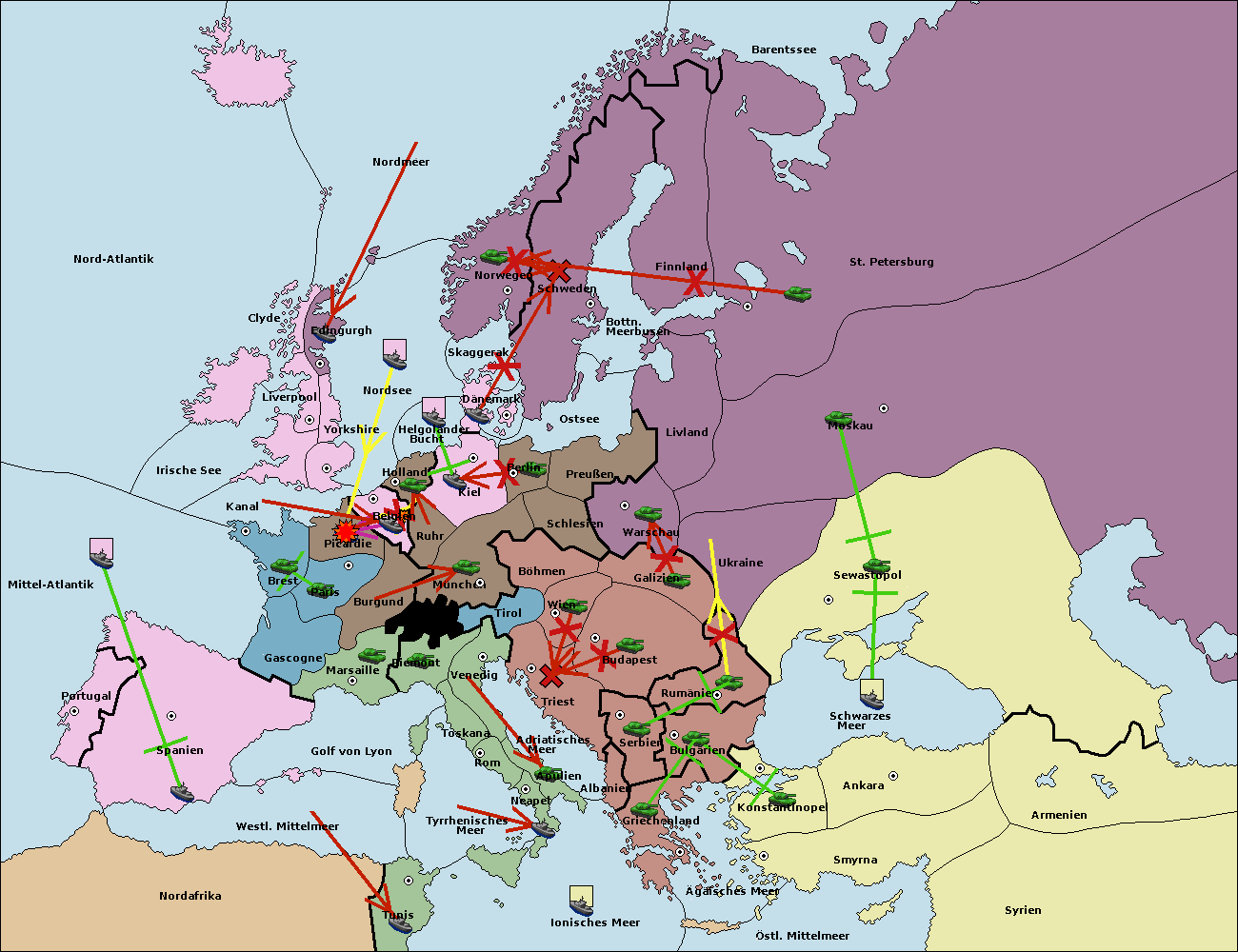 • Die Flotte in Nordsee move nach Belgien. (gescheitert)