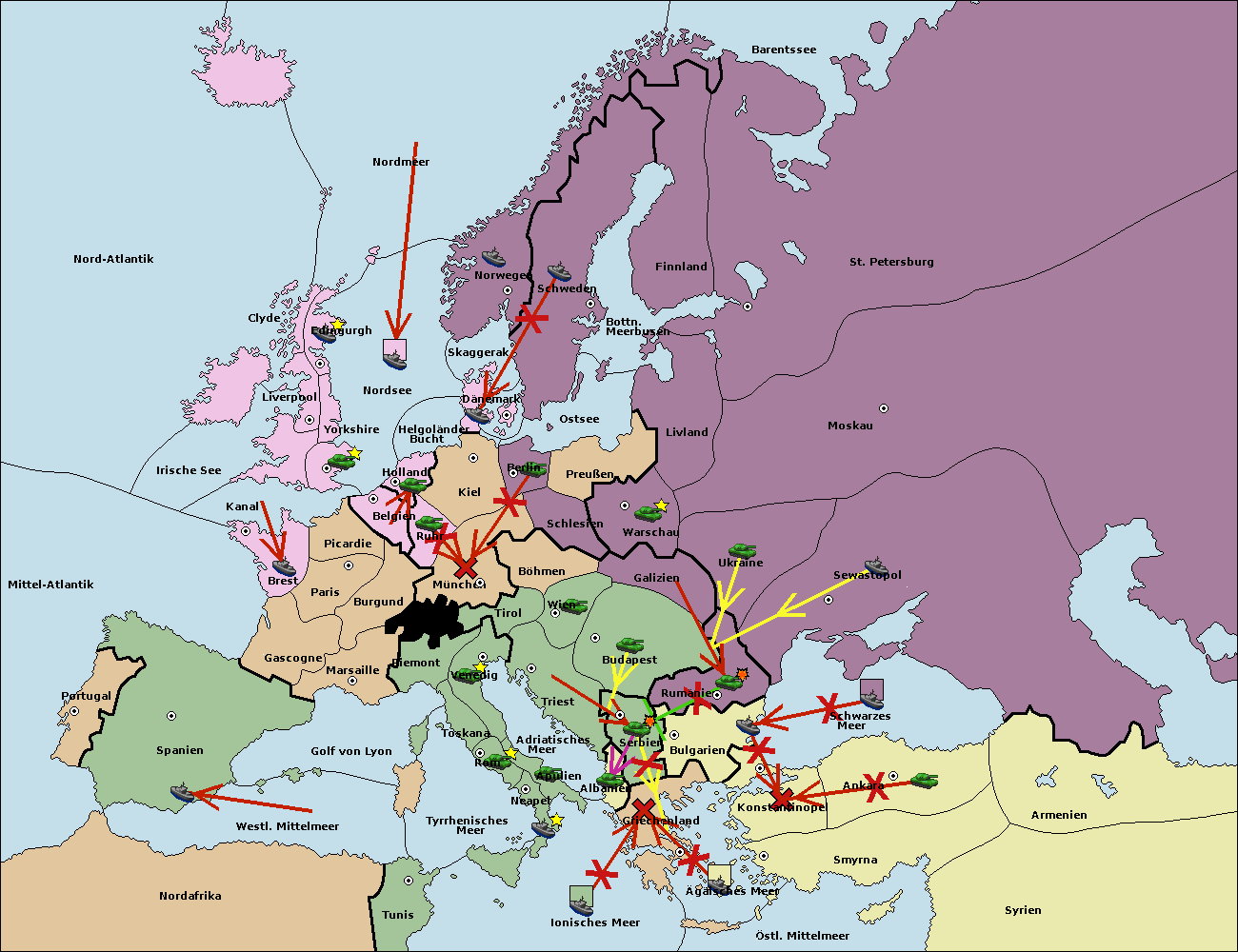 • Die Flotte in Bulgarien (Nordküste) move nach Konstantinopel. (gescheitert)