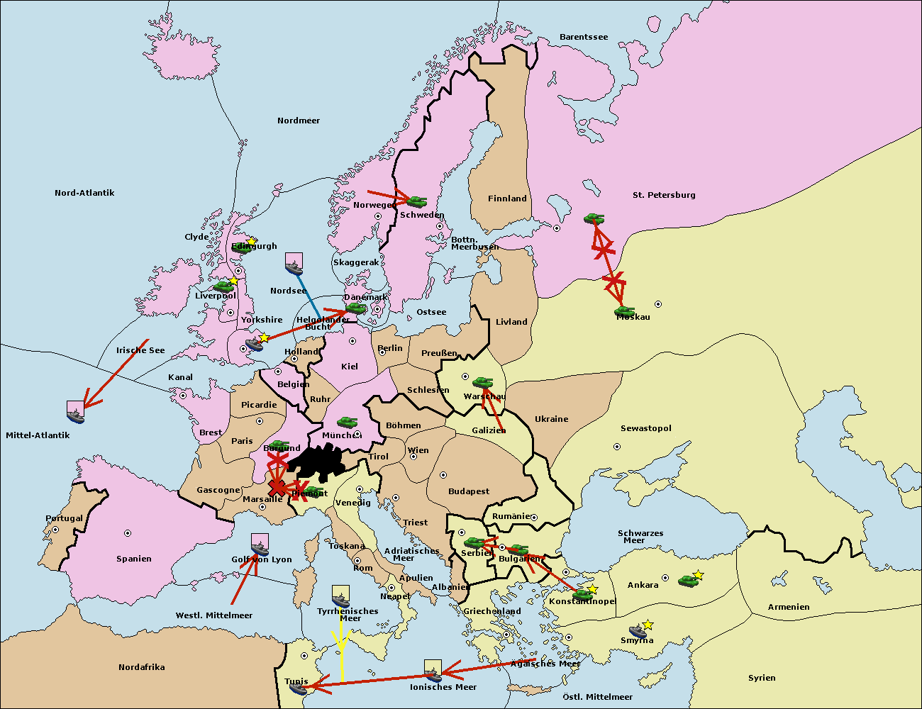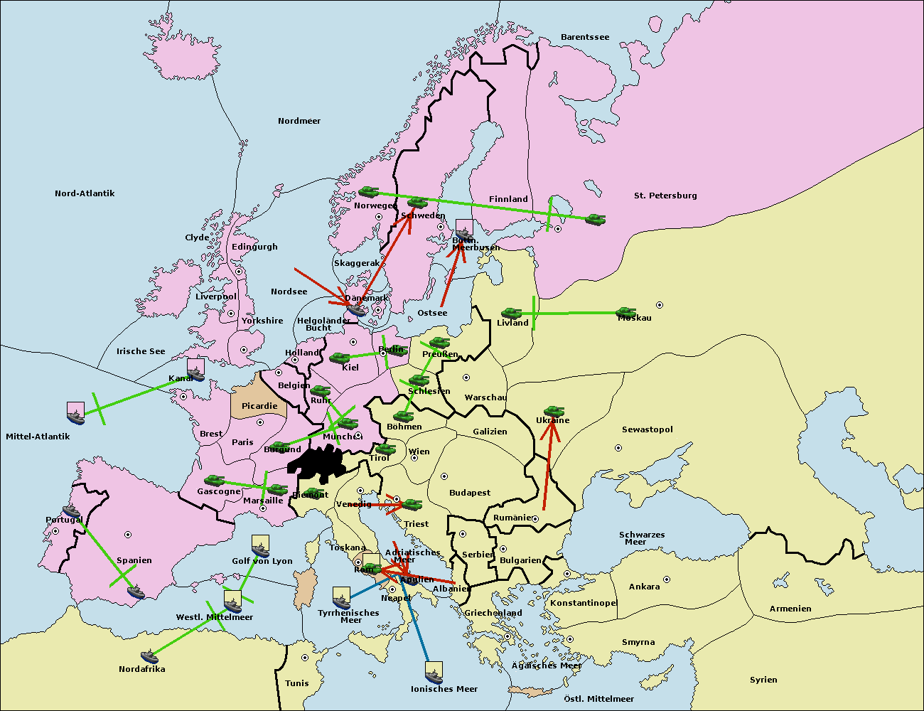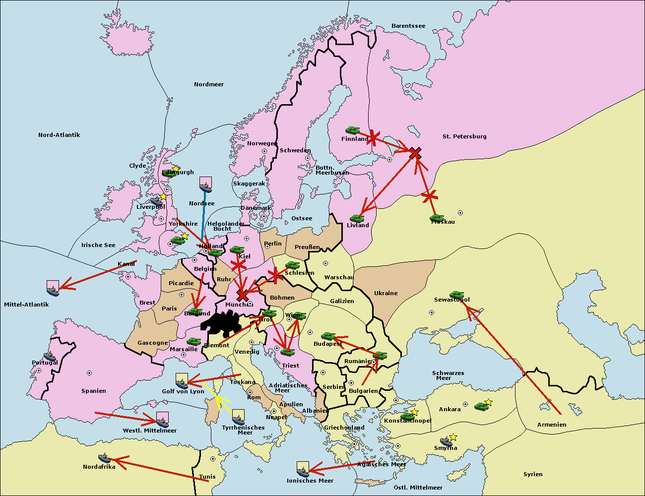 • Die Flotte in Nord Afrika support hold nach westl. Mittelmeer.