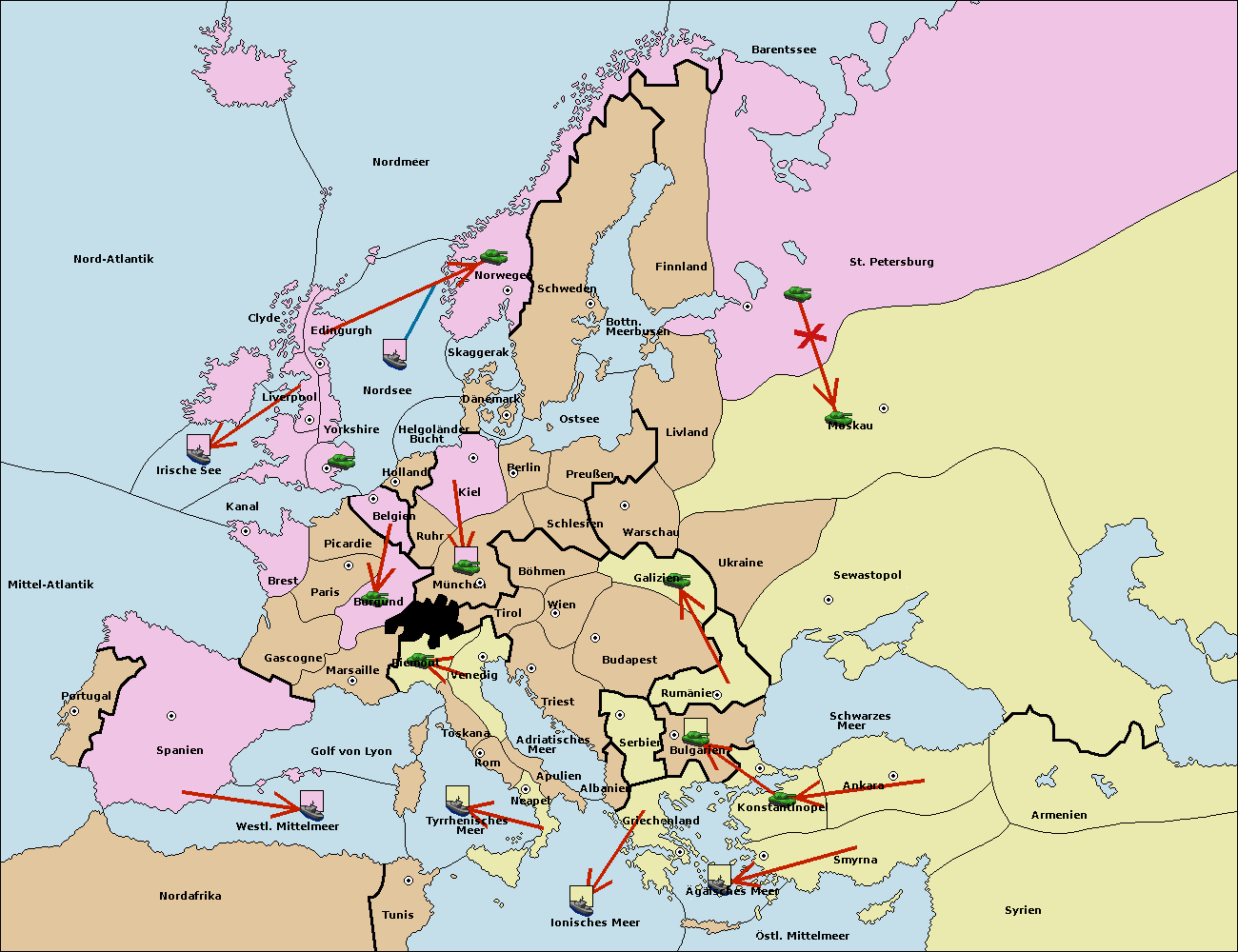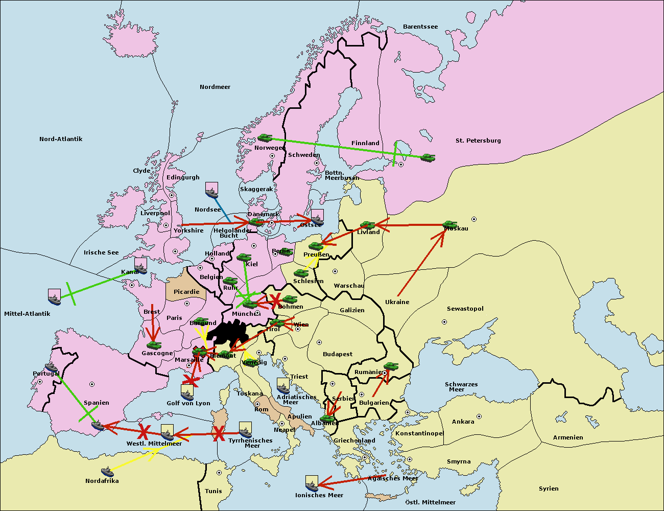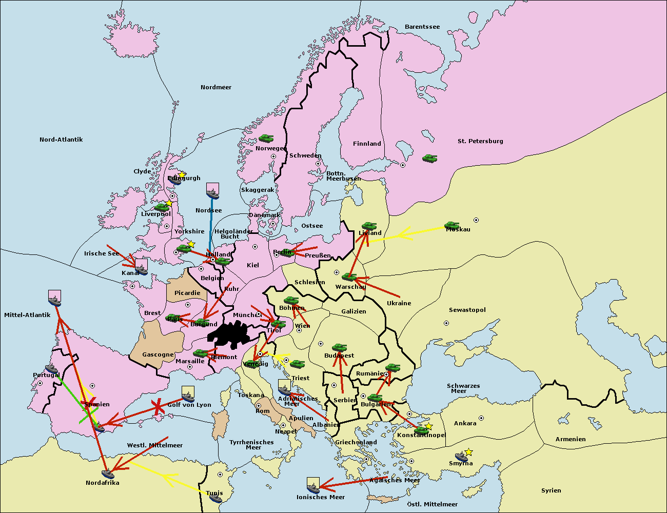 • Die Flotte in Nord Afrika support hold nach westl. Mittelmeer.