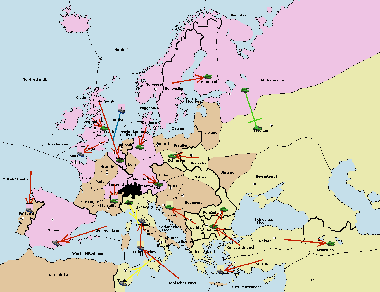 • Die Flotte in Nord Afrika support move nach westl. Mittelmeer von Tunis.