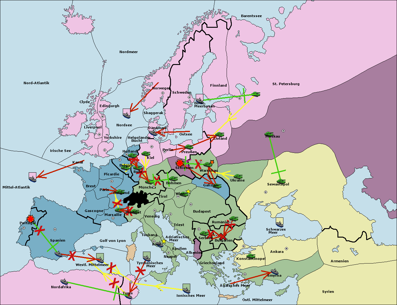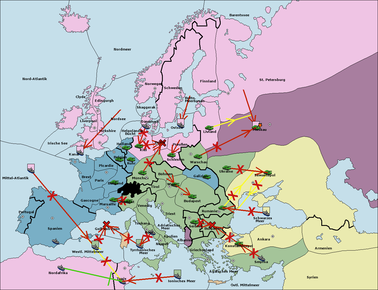 • Die Armee in Kiel wird zerstörtFlotte in Kiel gebaut.