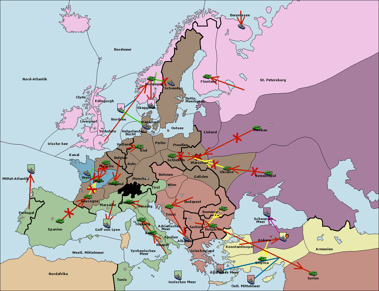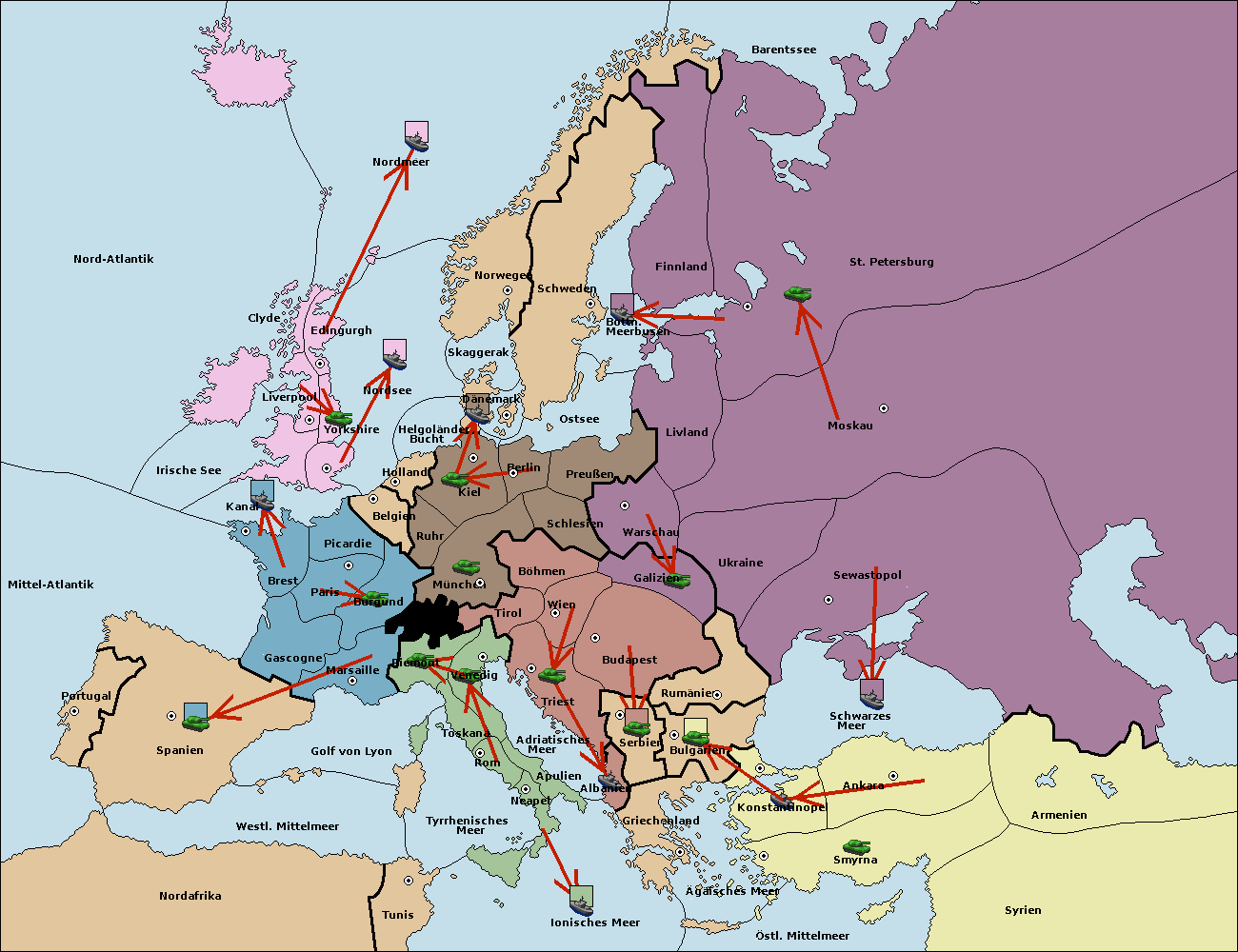 • Die Armee in Smyrna support move nach Ankara von Konstantinopel. (gescheitert)