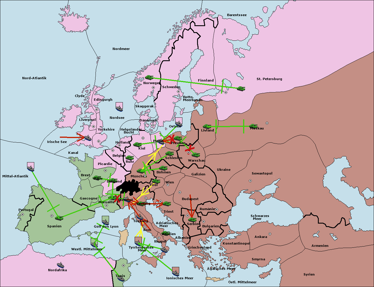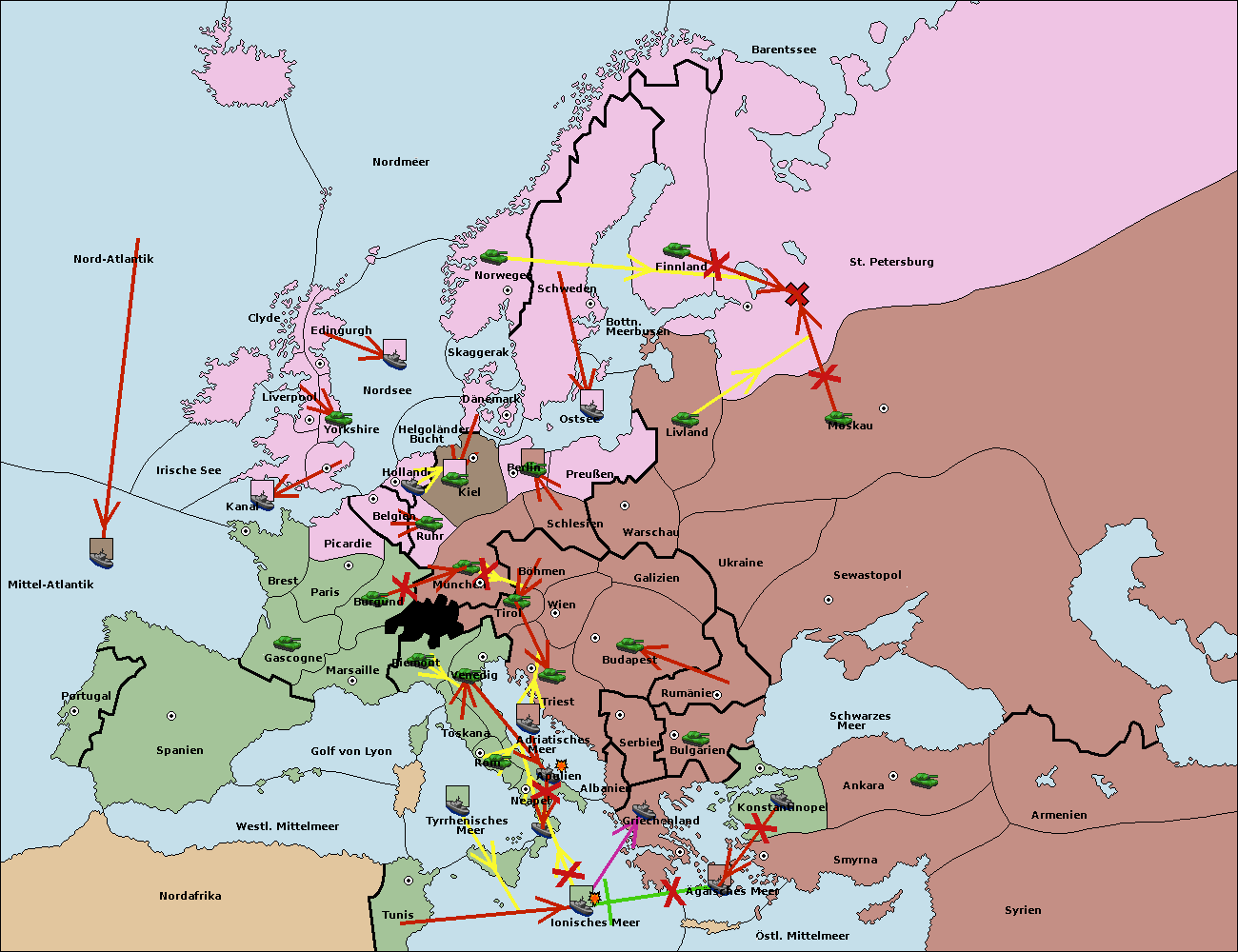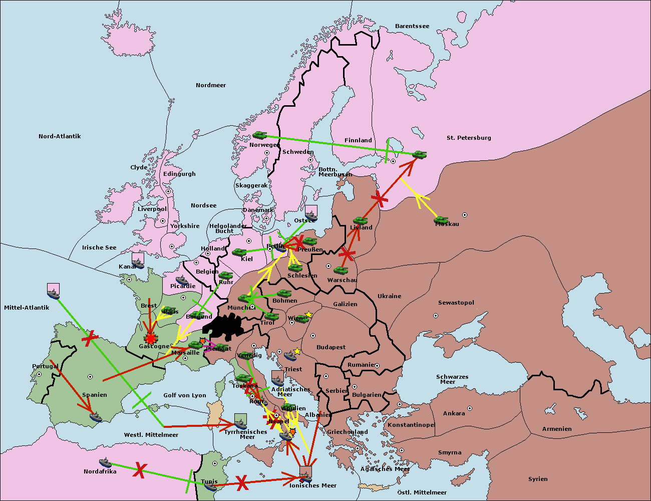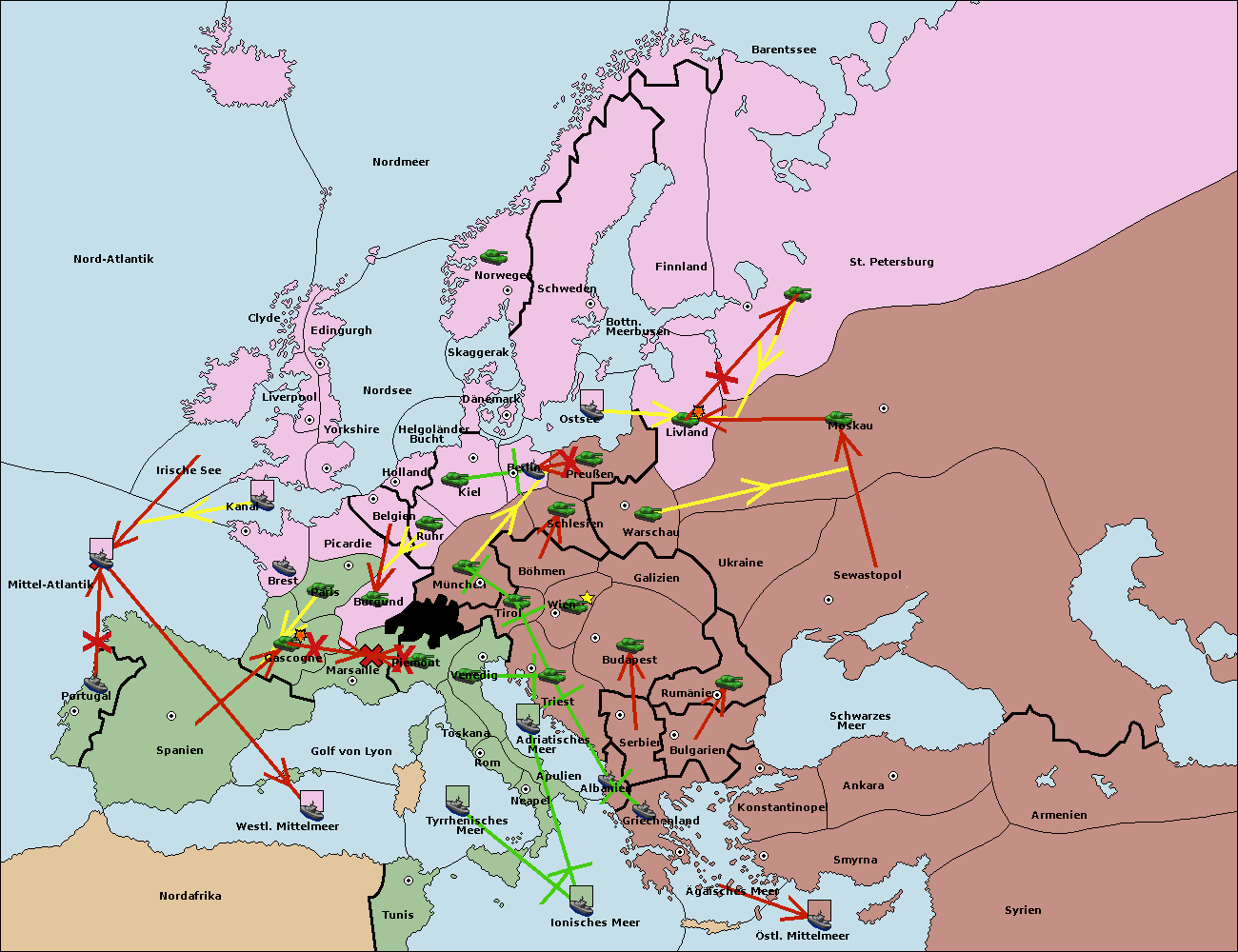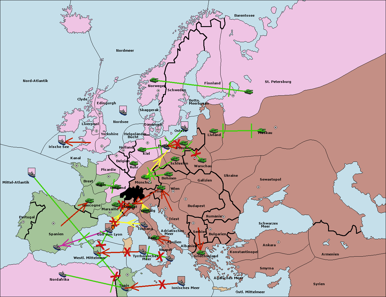 • Die Flotte in Nord Afrika support hold nach westl. Mittelmeer.