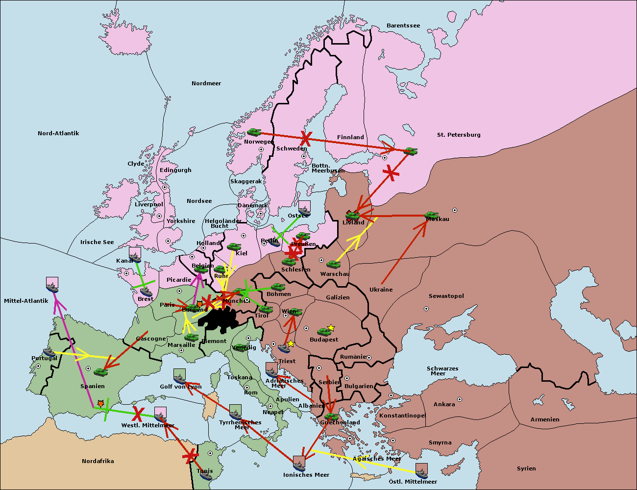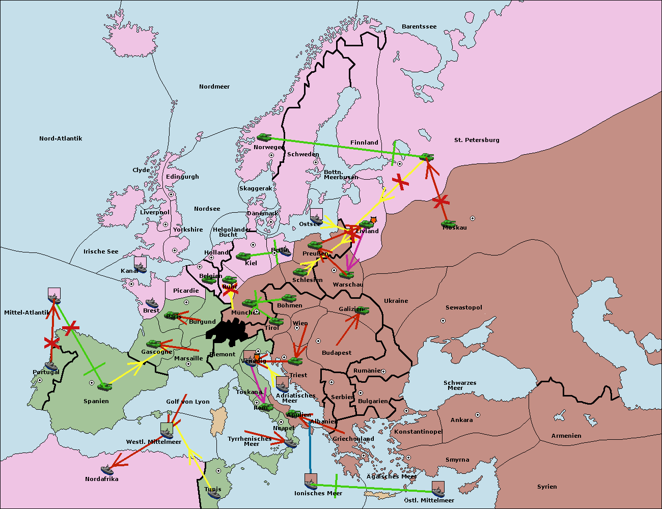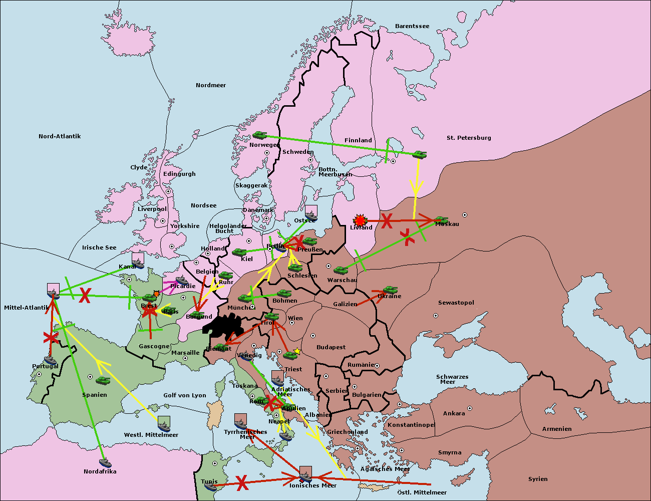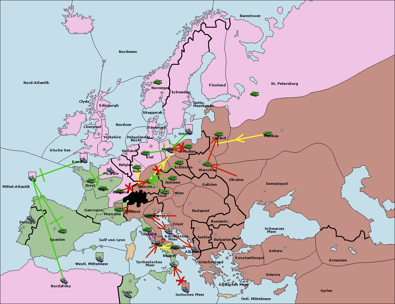 • Die Flotte in Nord Afrika support hold nach westl. Mittelmeer.