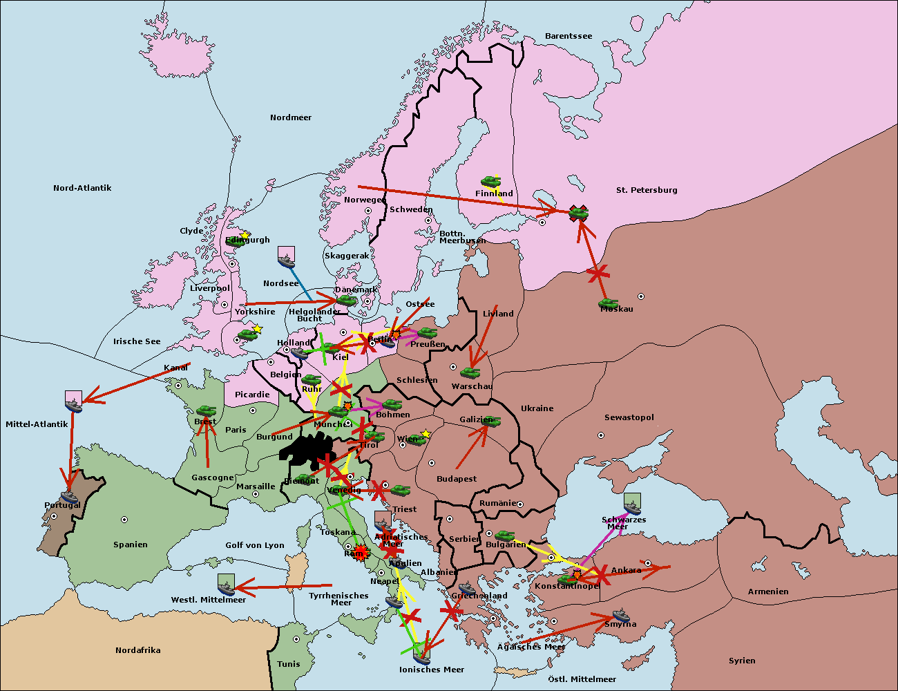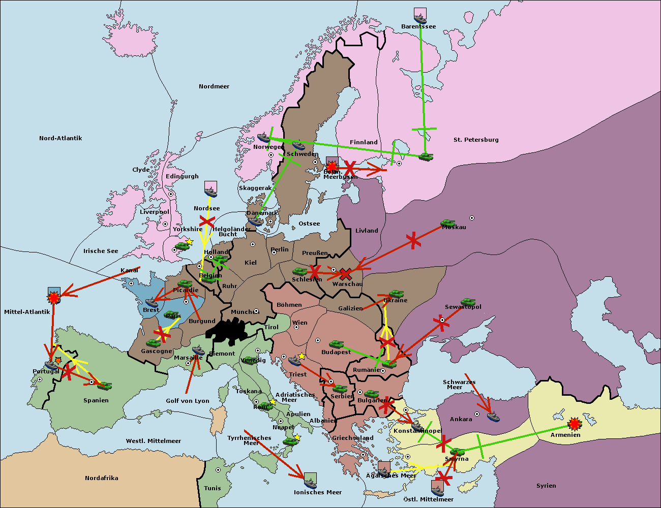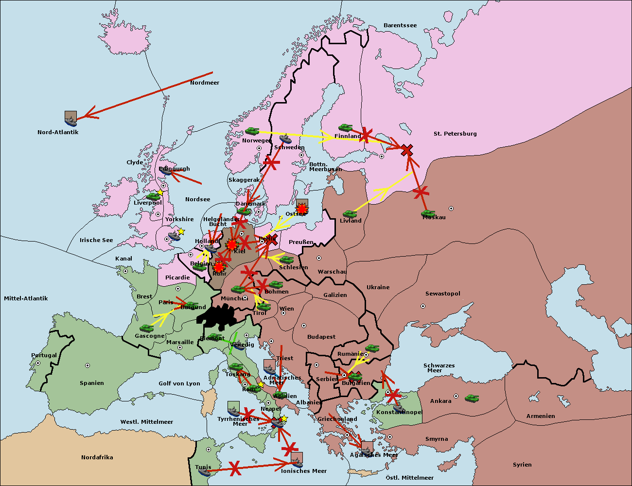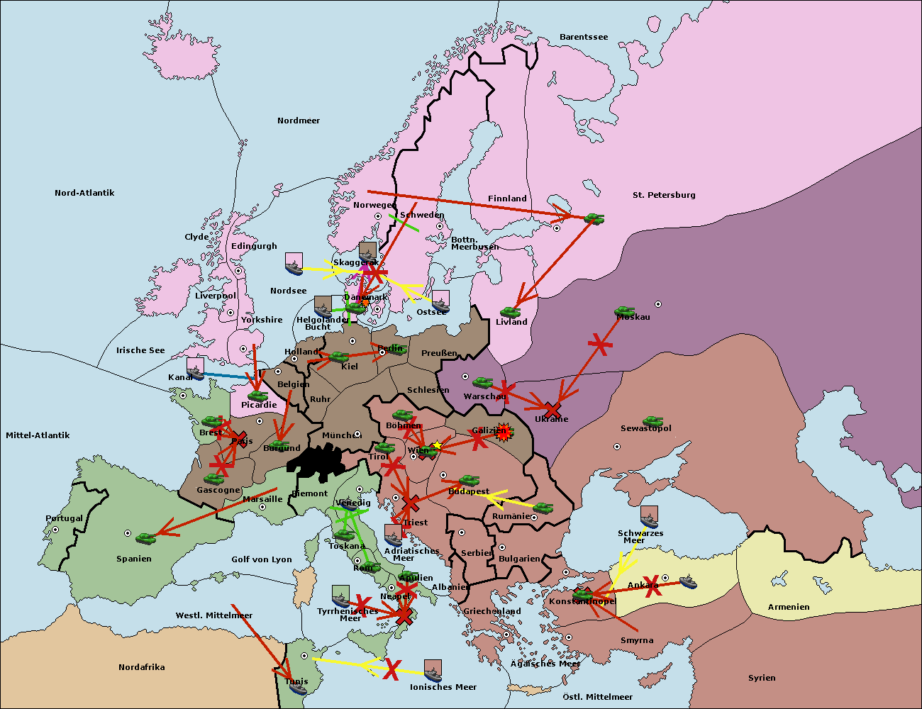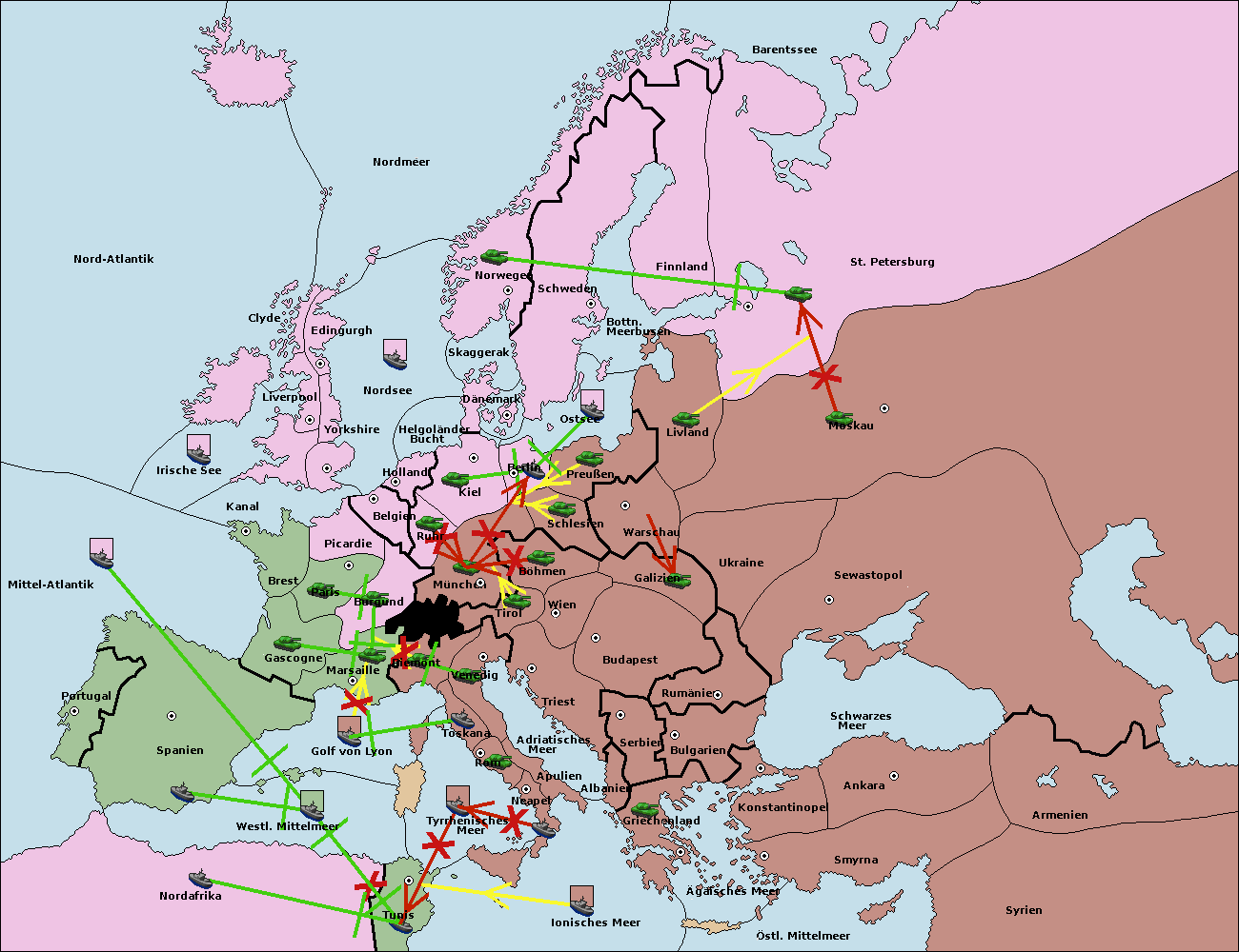 • Die Flotte in Nord Afrika support hold nach westl. Mittelmeer.