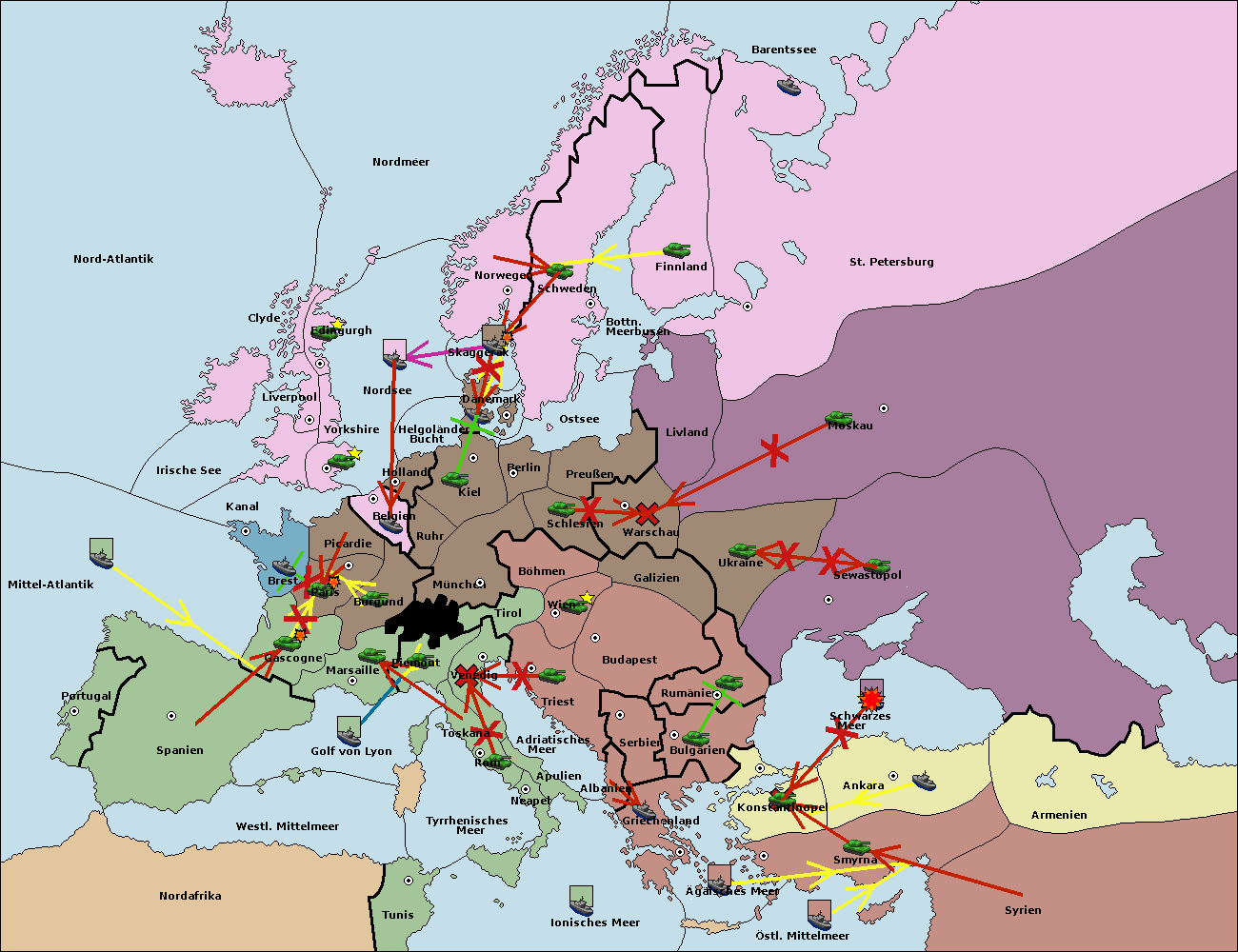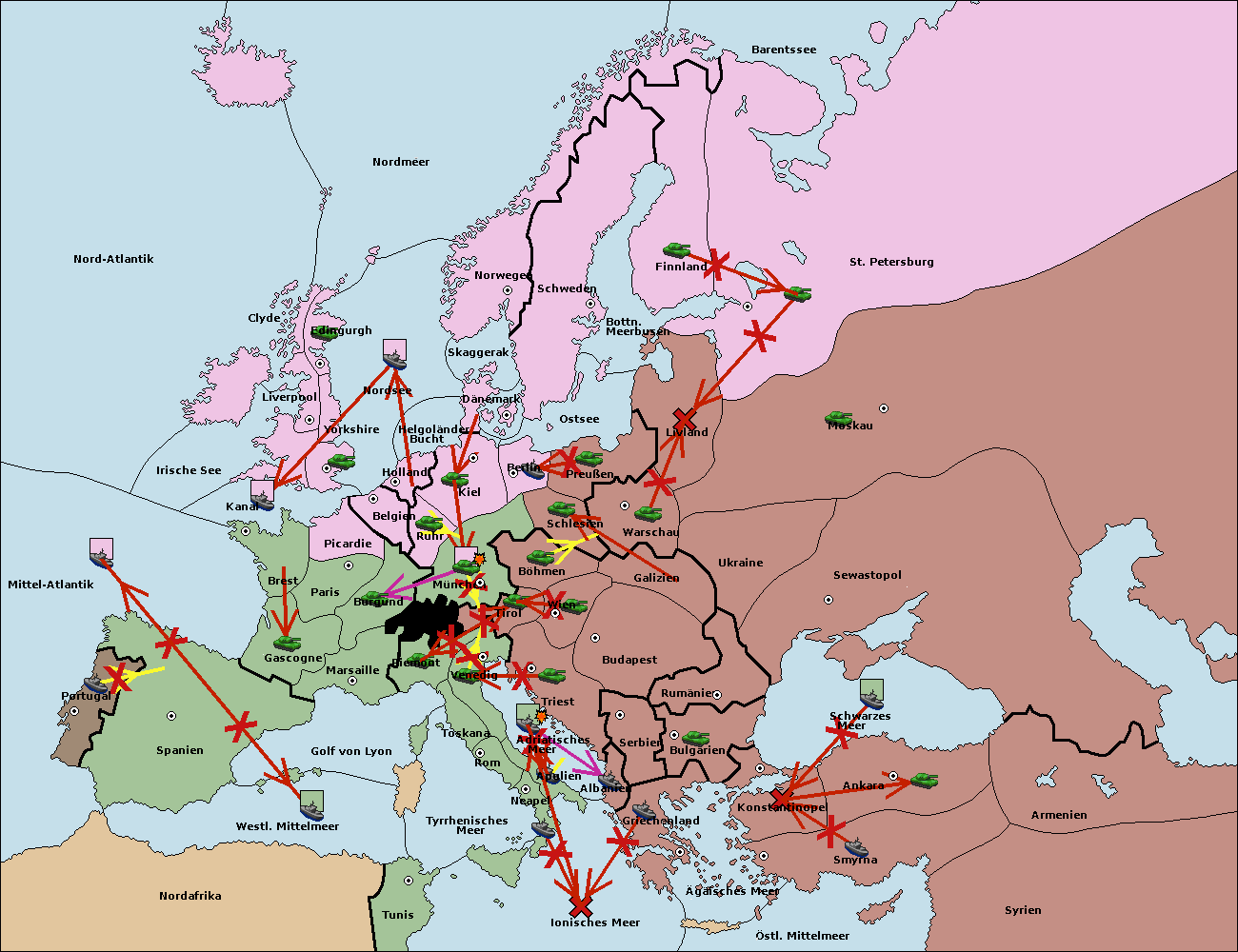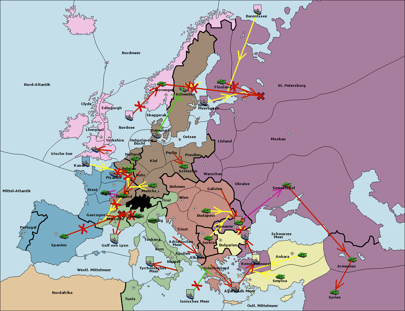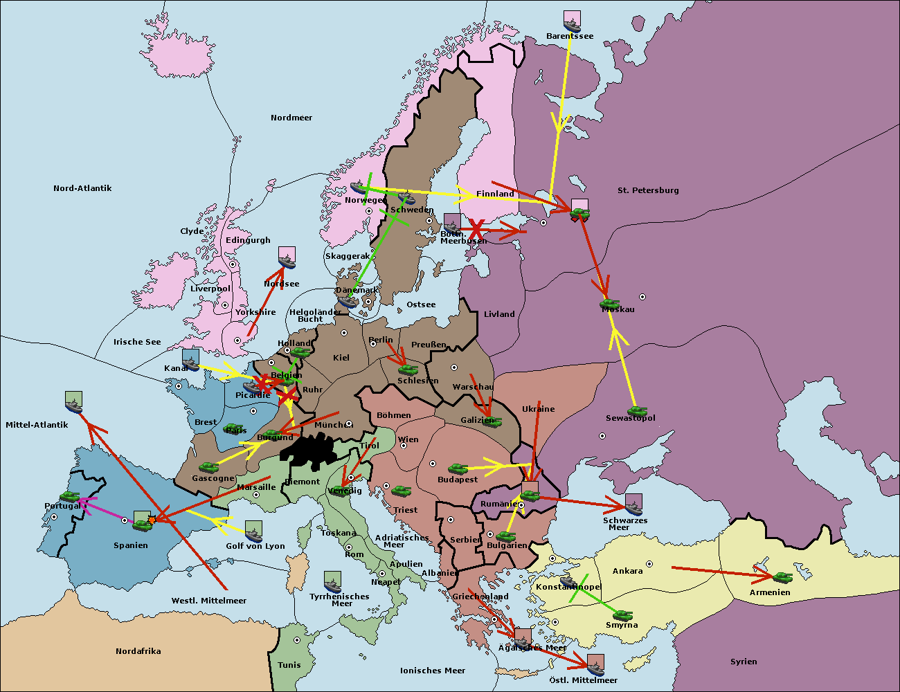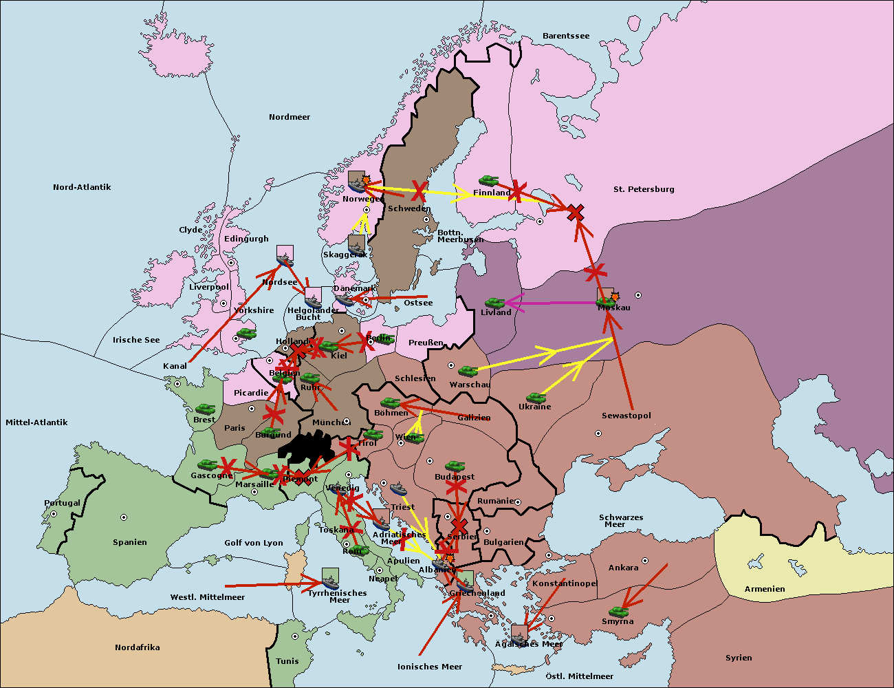 • Die Flotte in Nord Afrika support hold nach westl. Mittelmeer.