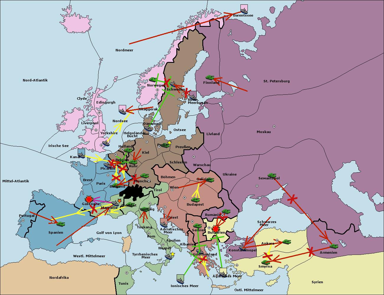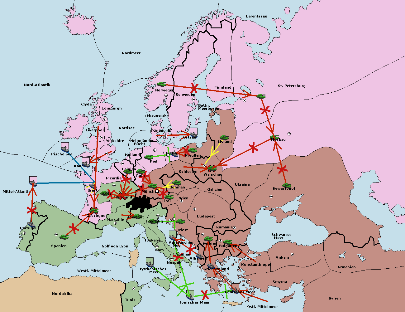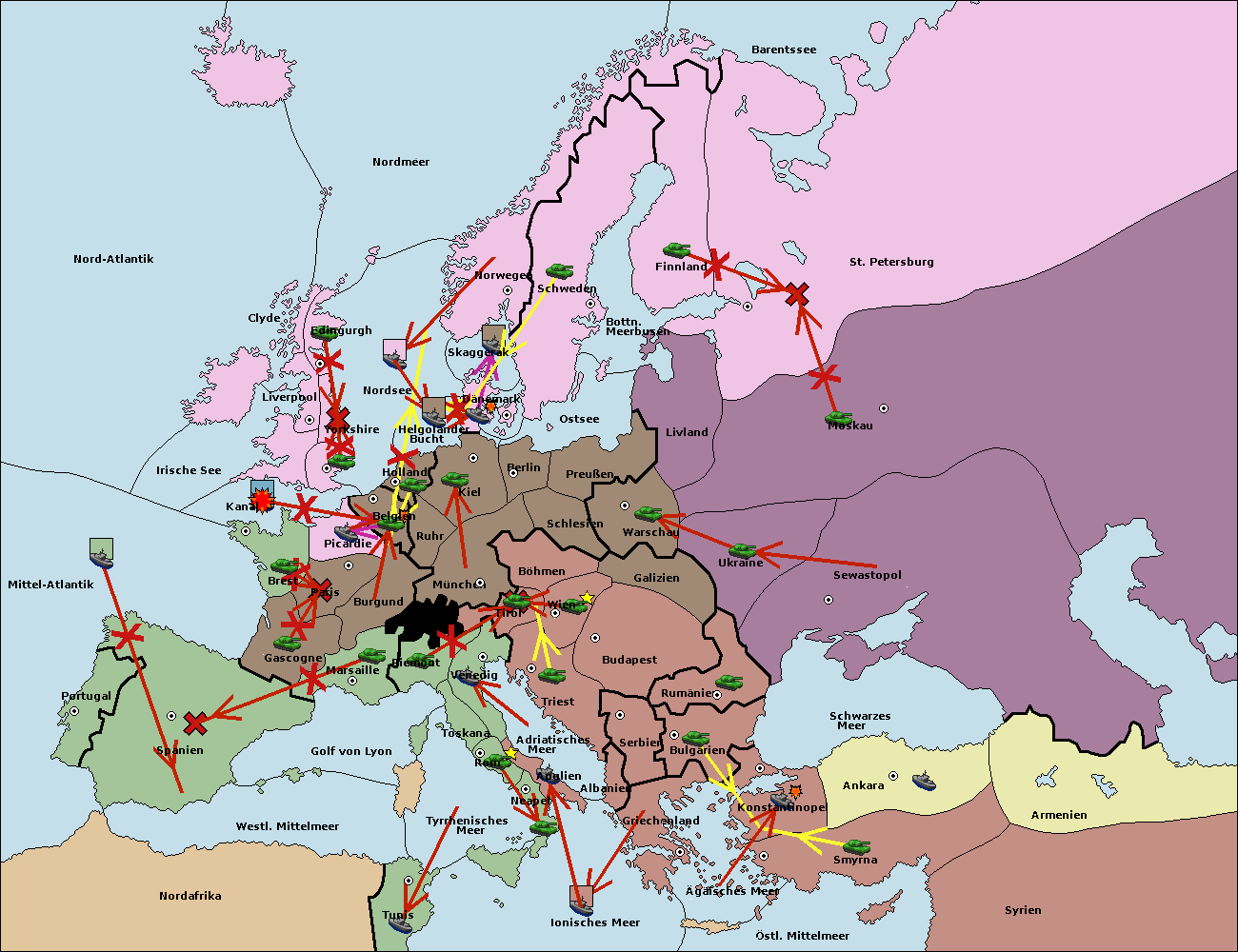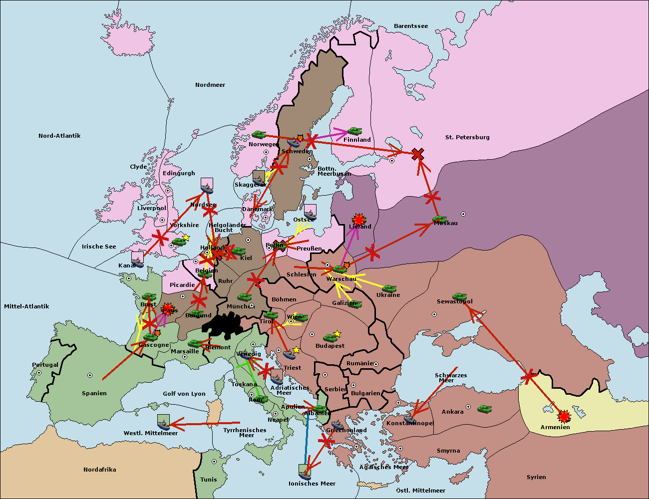 • Die Flotte in Nord Afrika support hold nach westl. Mittelmeer.