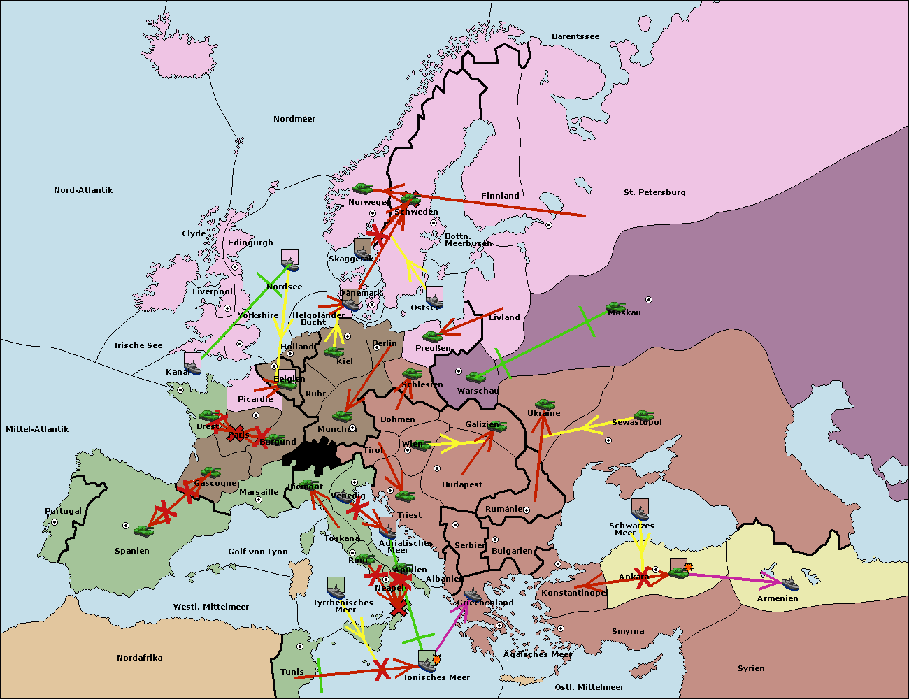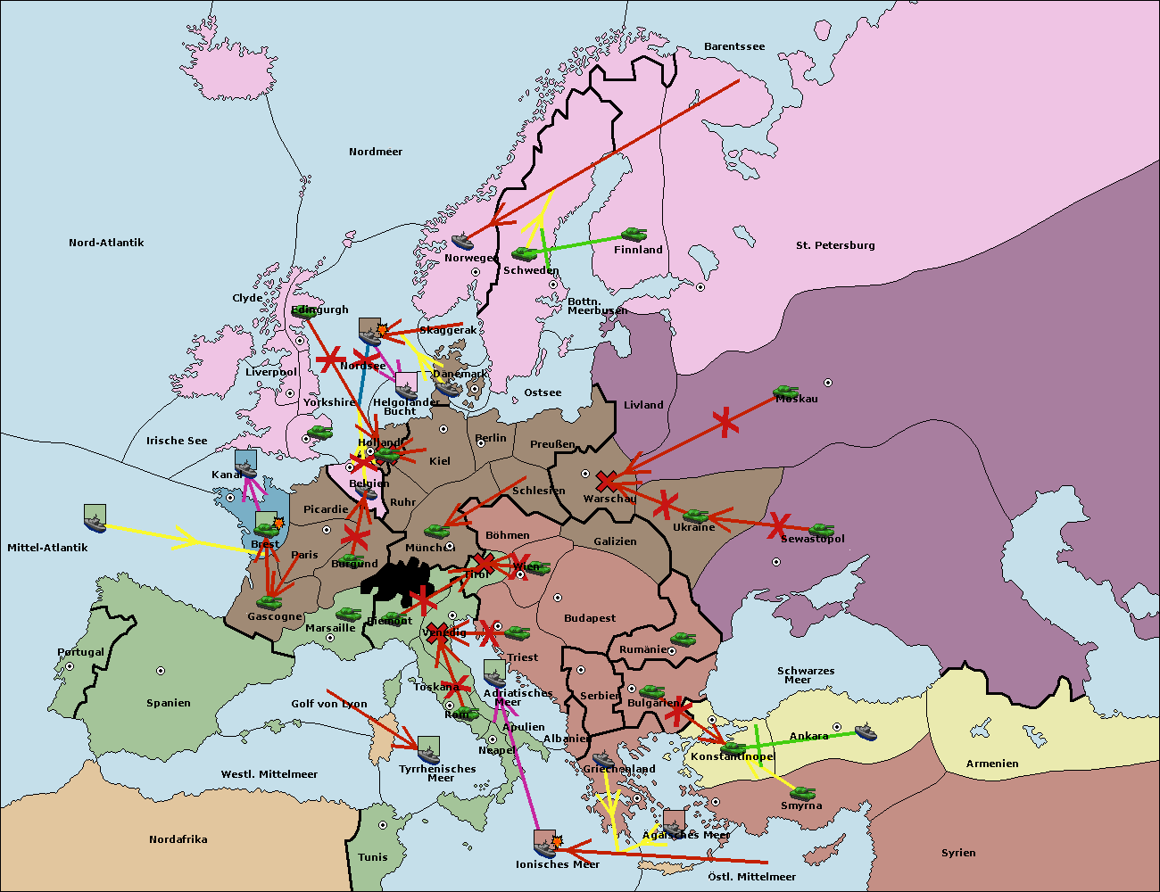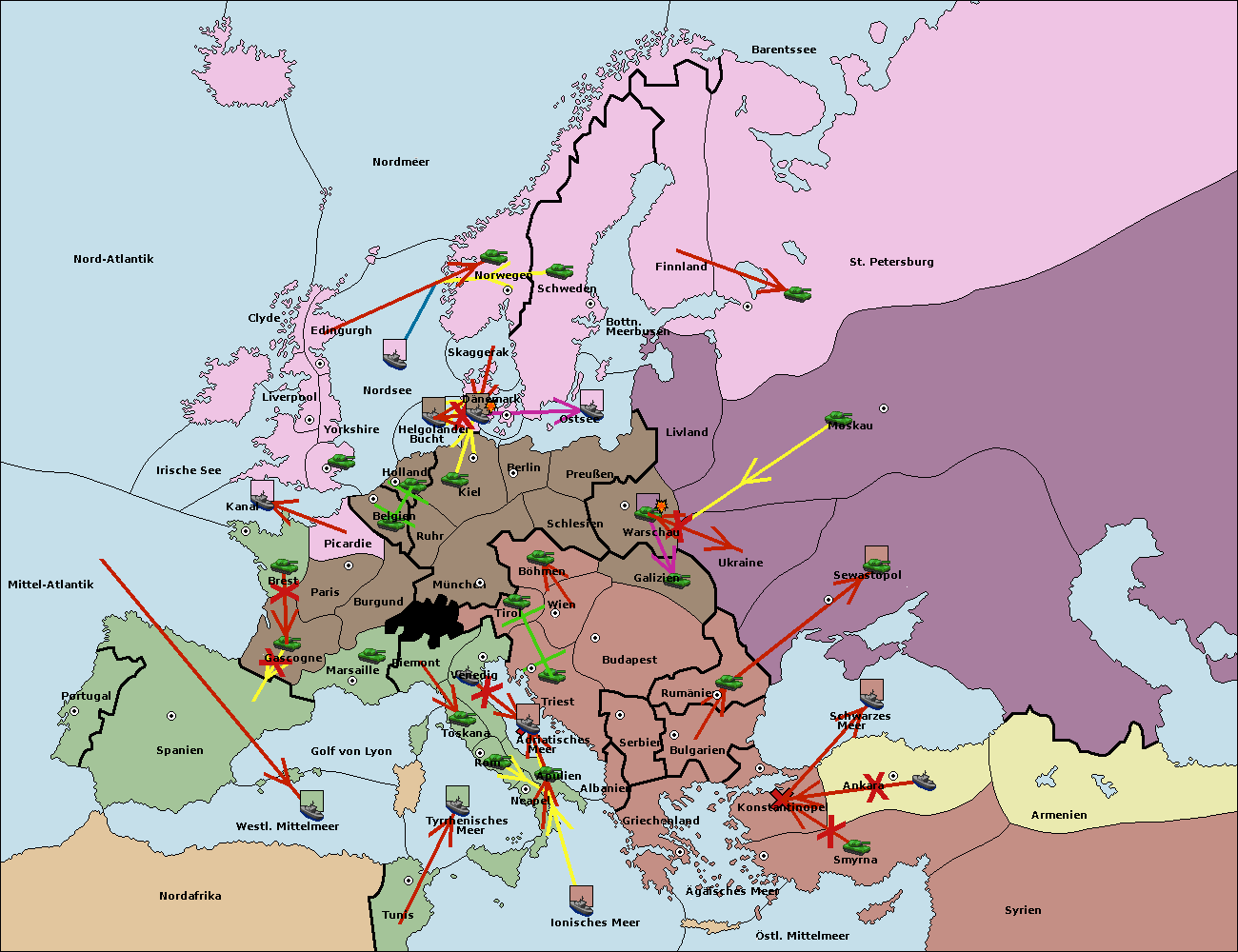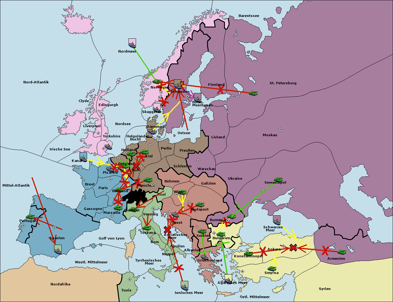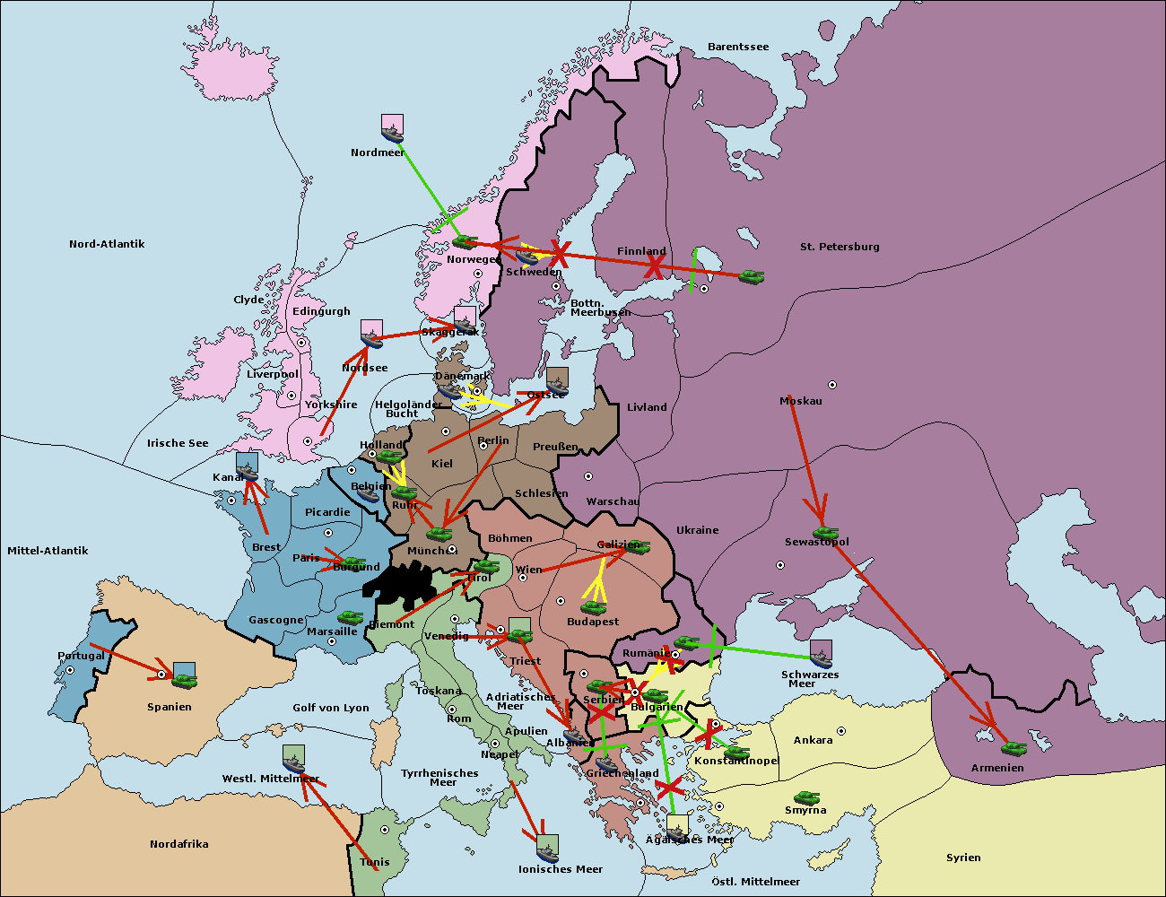 • Die Flotte in Nord Afrika support hold nach westl. Mittelmeer.