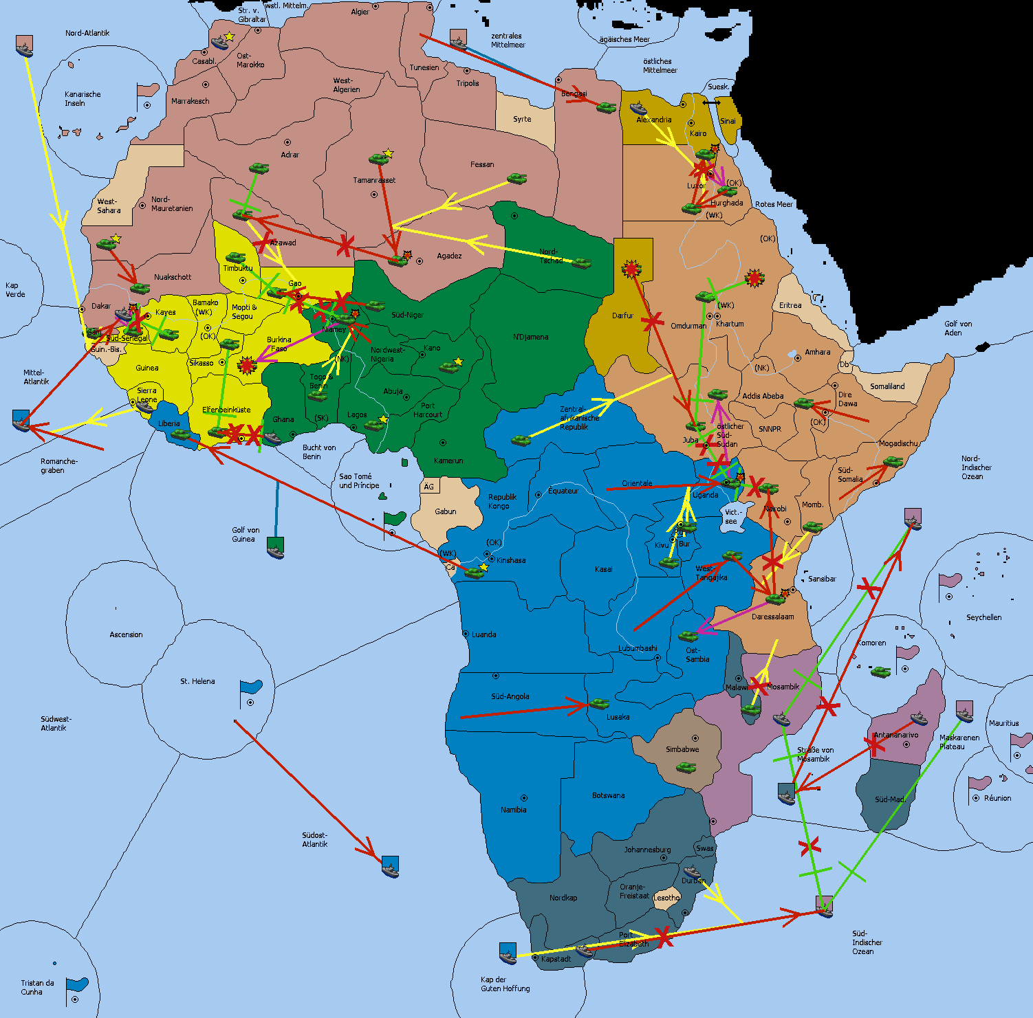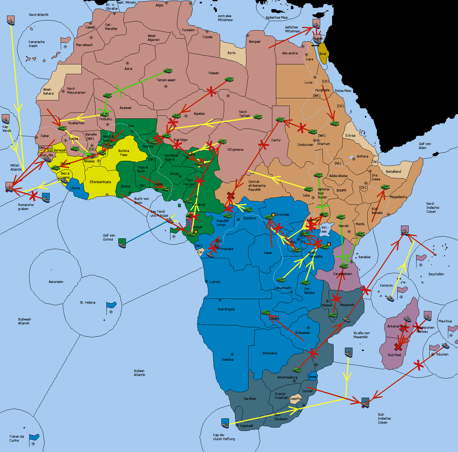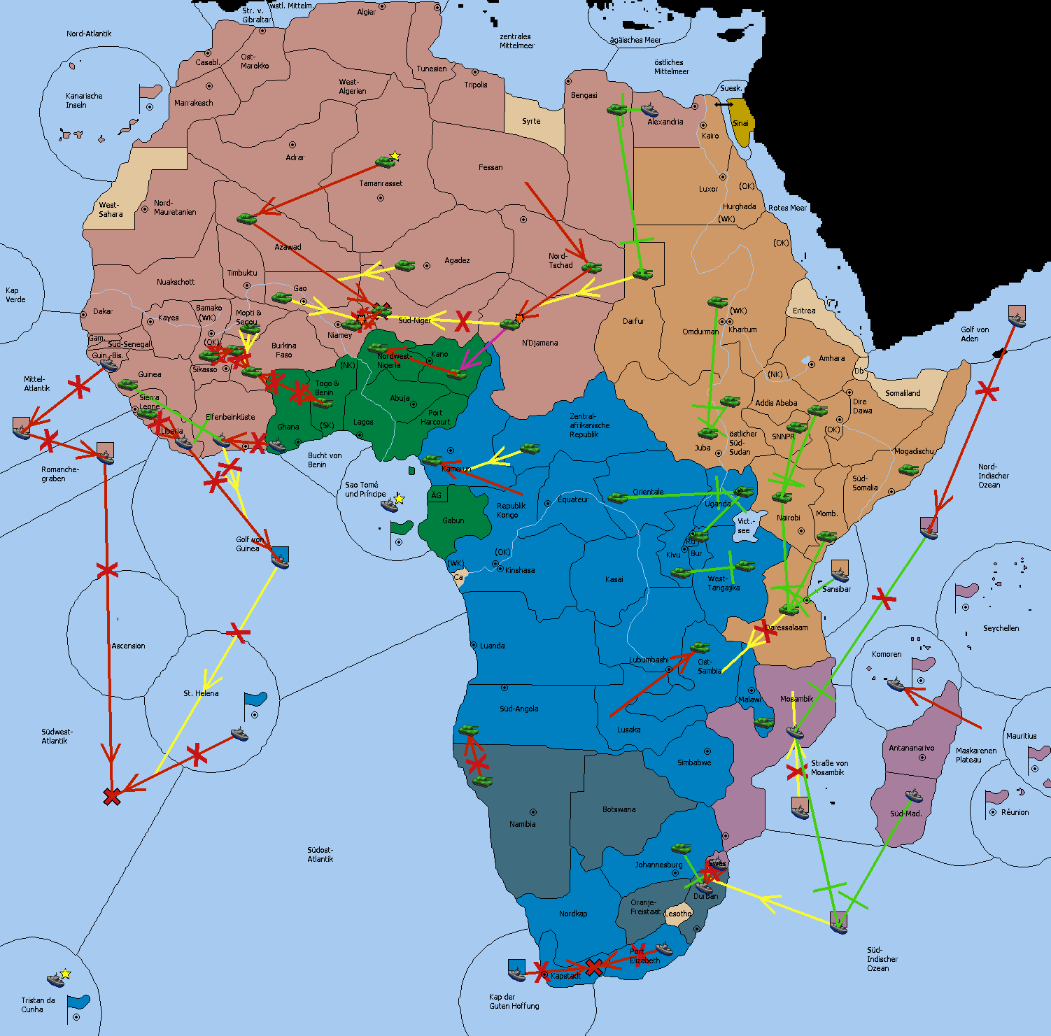 - Die Flotte in São Tomé und Príncipe move nach Golf von Guinea. (gescheitert)