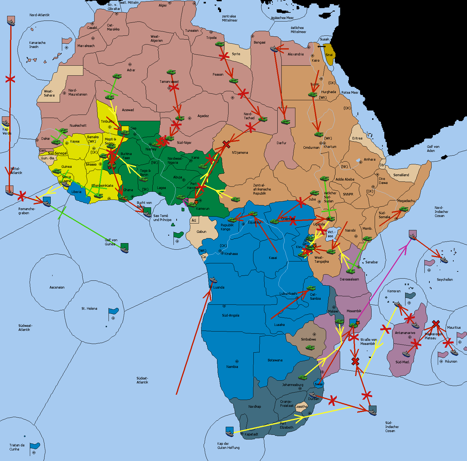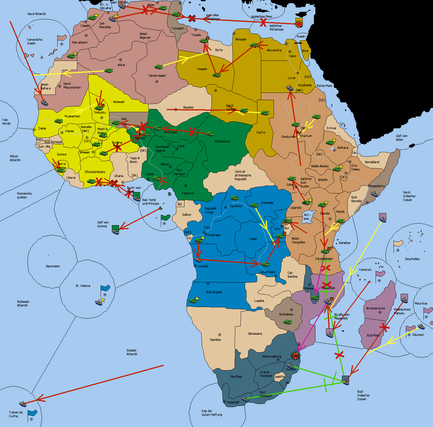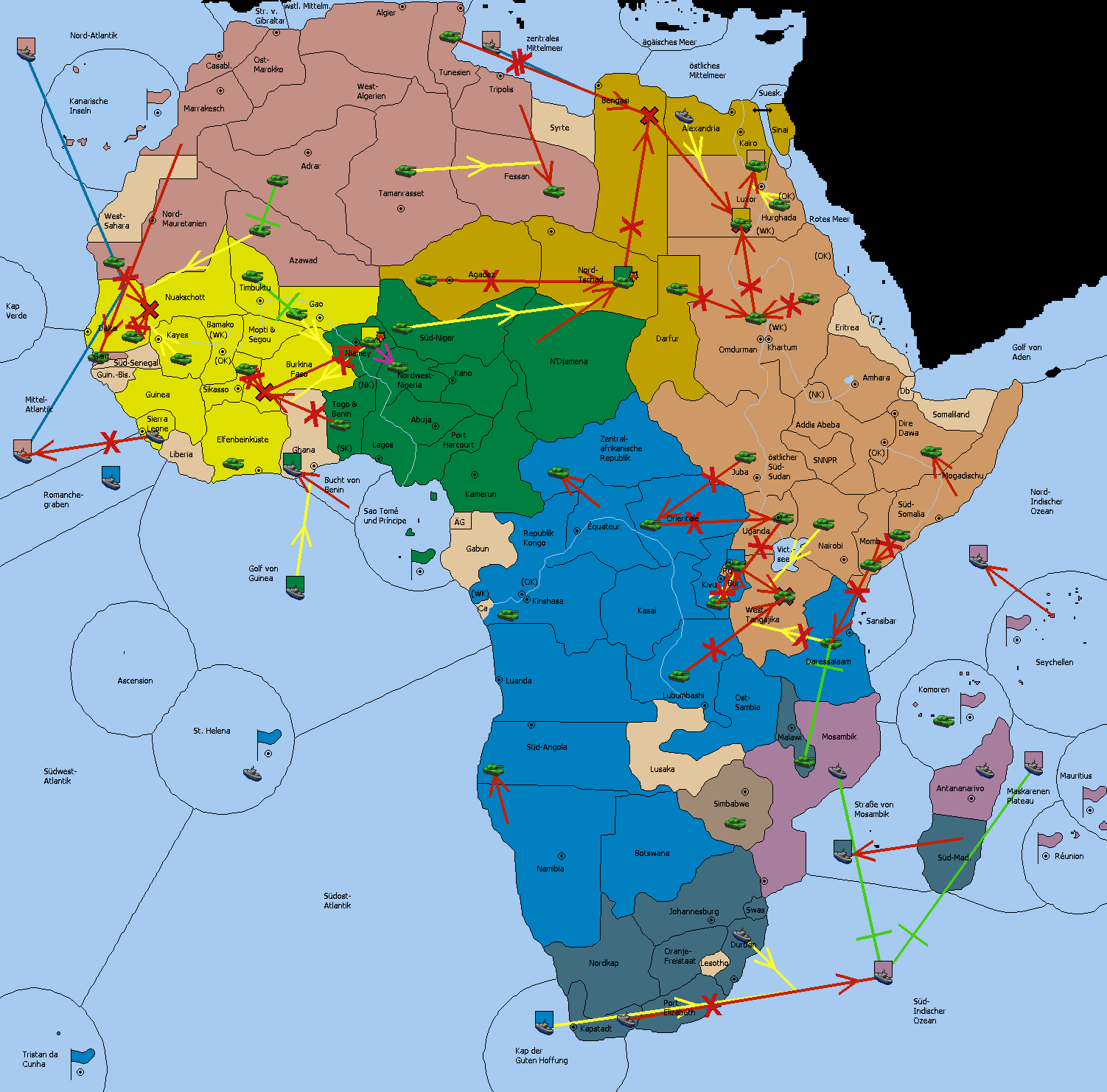 - Die Flotte in São Tomé und Príncipe move nach Golf von Guinea. (gescheitert)