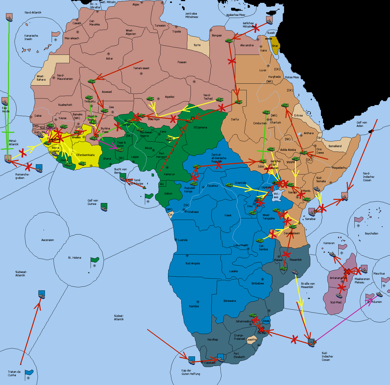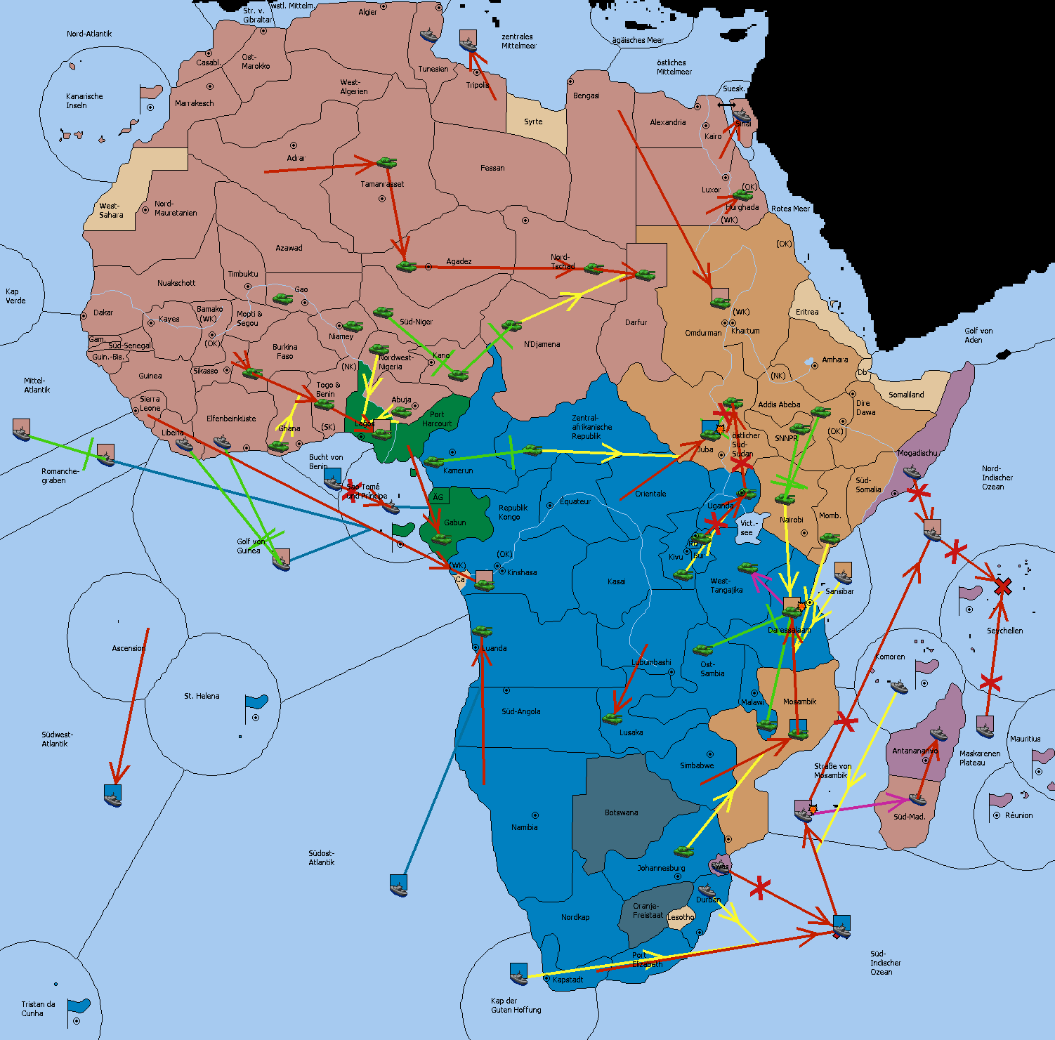 - Die Flotte in Daressalaam zieht sich nach Nord-Indischer Ozean zurück.