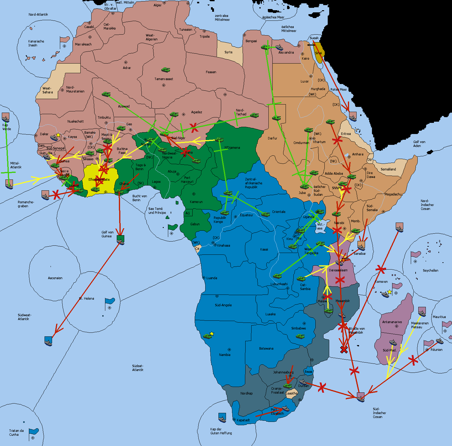 - Die Armee in Daressalaam move nach Mombasa. (gescheitert)