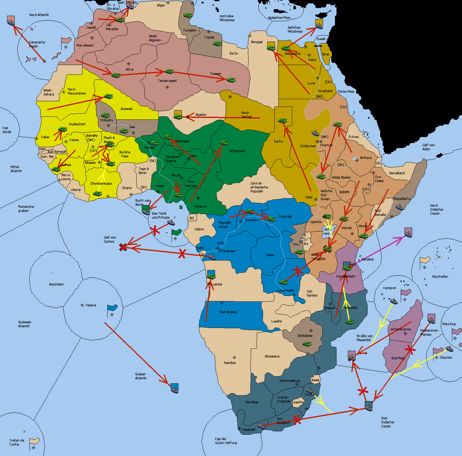 - Die Flotte in Nord-Indischer Ozean move nach Daressalaam.