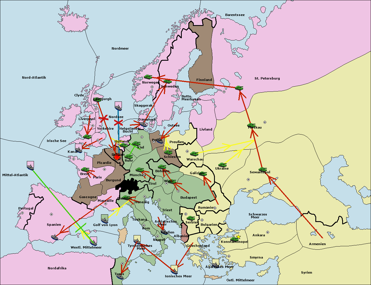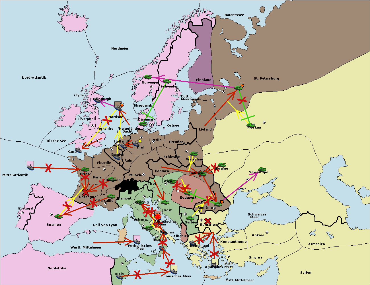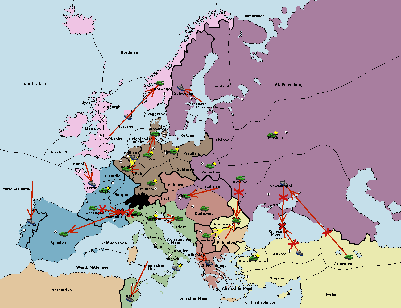 • Die Flotte in Spanien (Südküste) support hold nach westl. Mittelmeer.