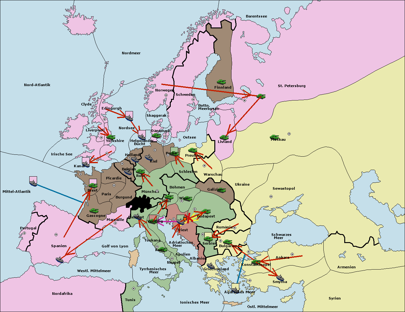 • Die Armee in Budapest support move nach Triest von Serbien.