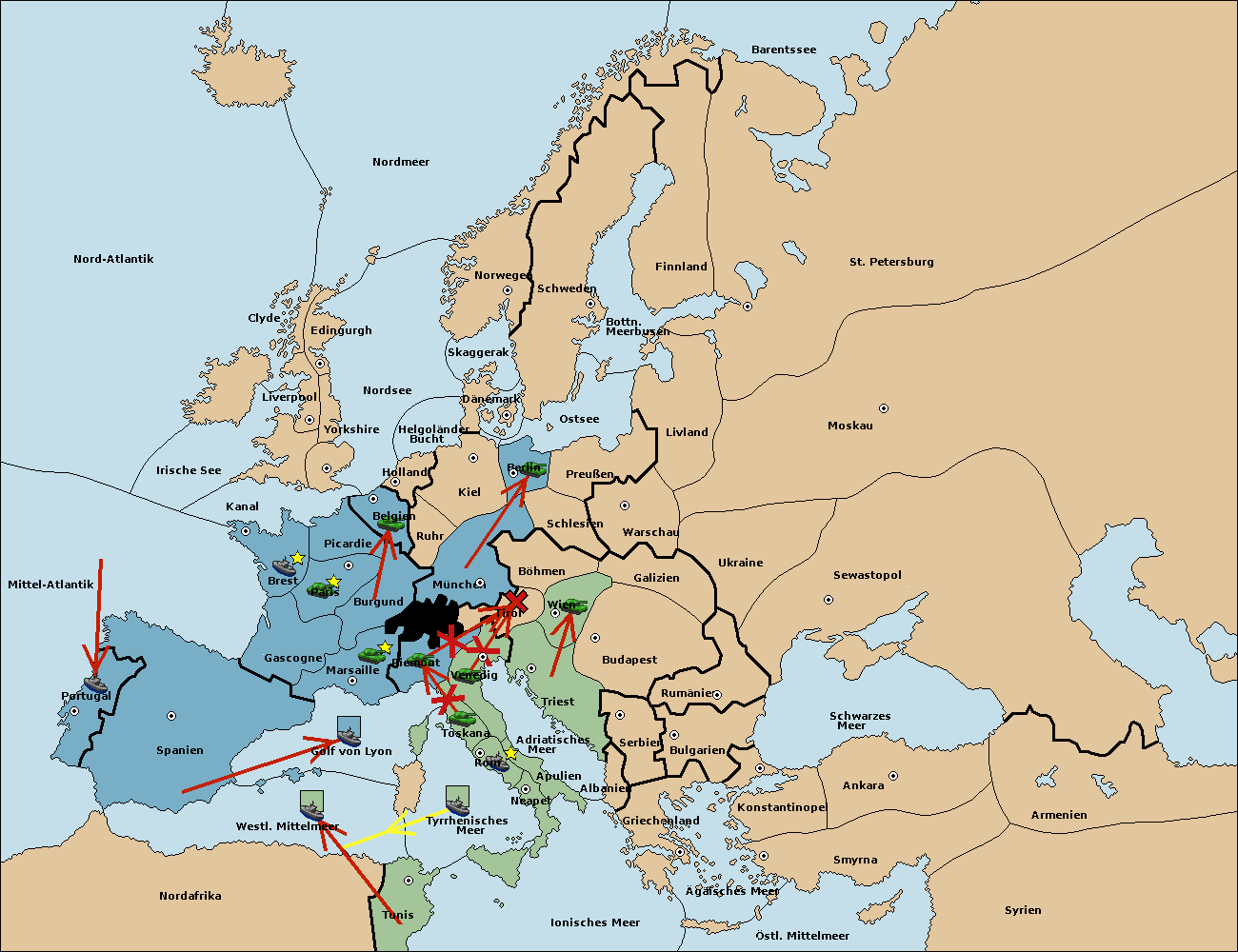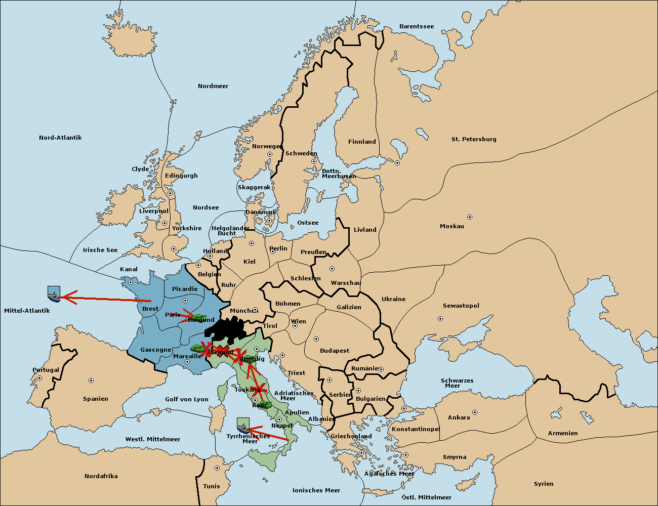 • Die Flotte in Golf von Lyon move nach Piemont. (gescheitert)
