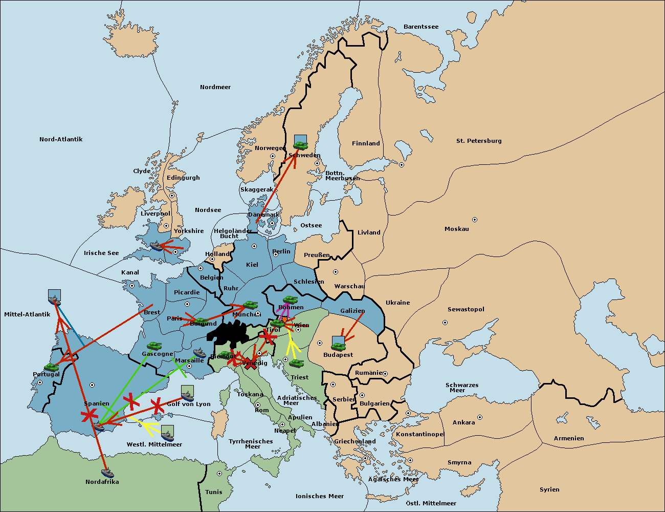 • Die Flotte in Spanien (Südküste) move nach westl. Mittelmeer. (gescheitert)