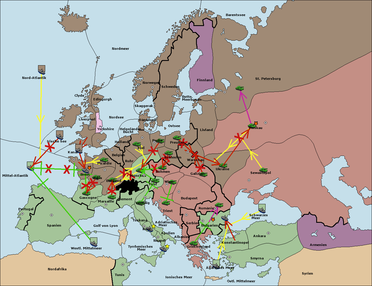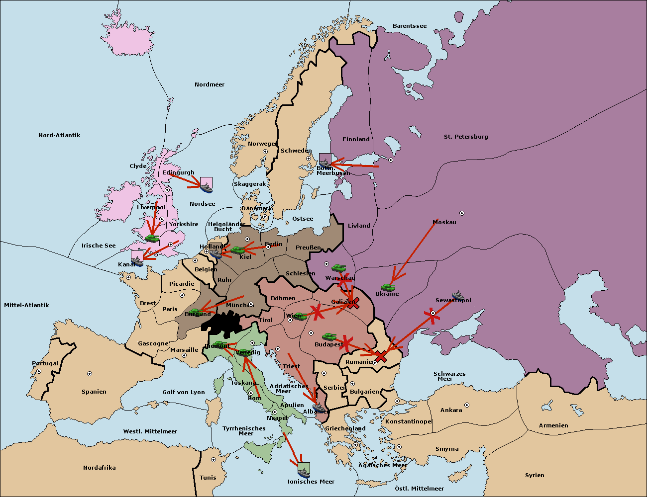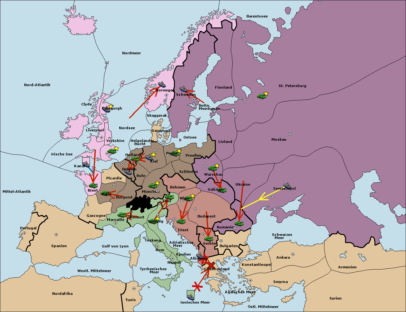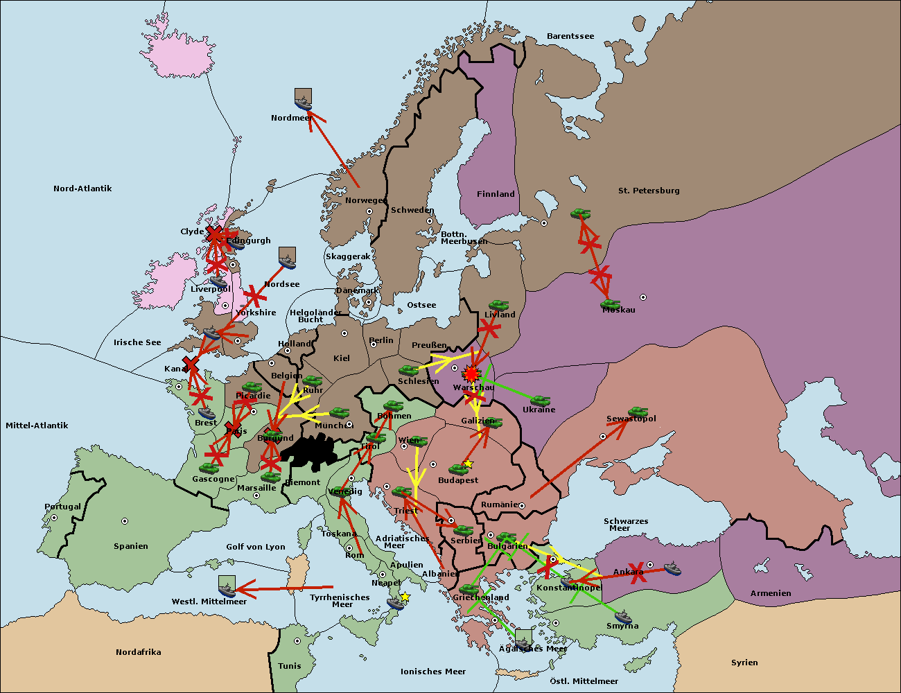 • Die Flotte in Bulgarien (Südküste) move nach Griechenland. (gescheitert)