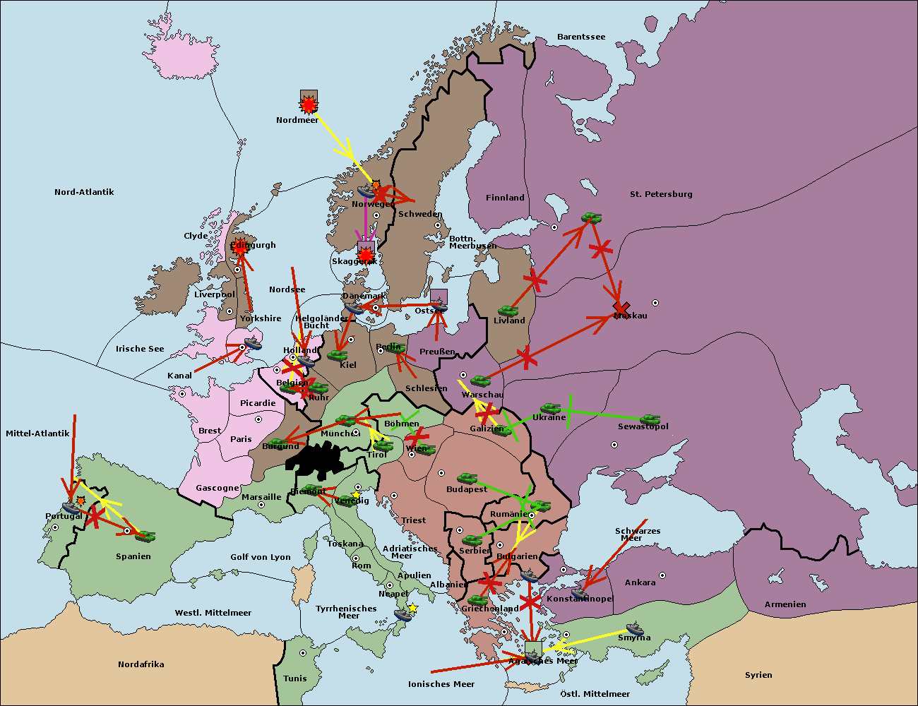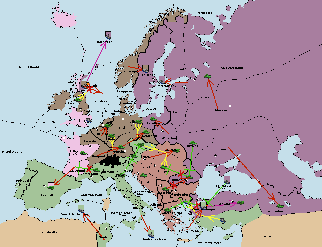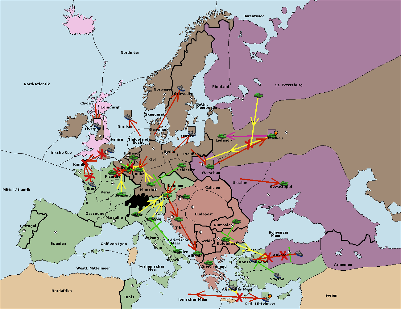 • Die Flotte in Bulgarien (Südküste) move nach Griechenland. (gescheitert)