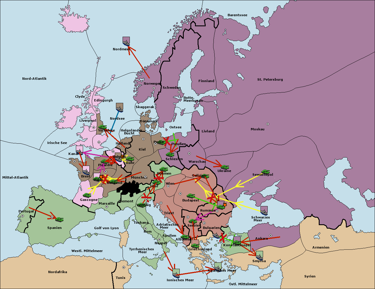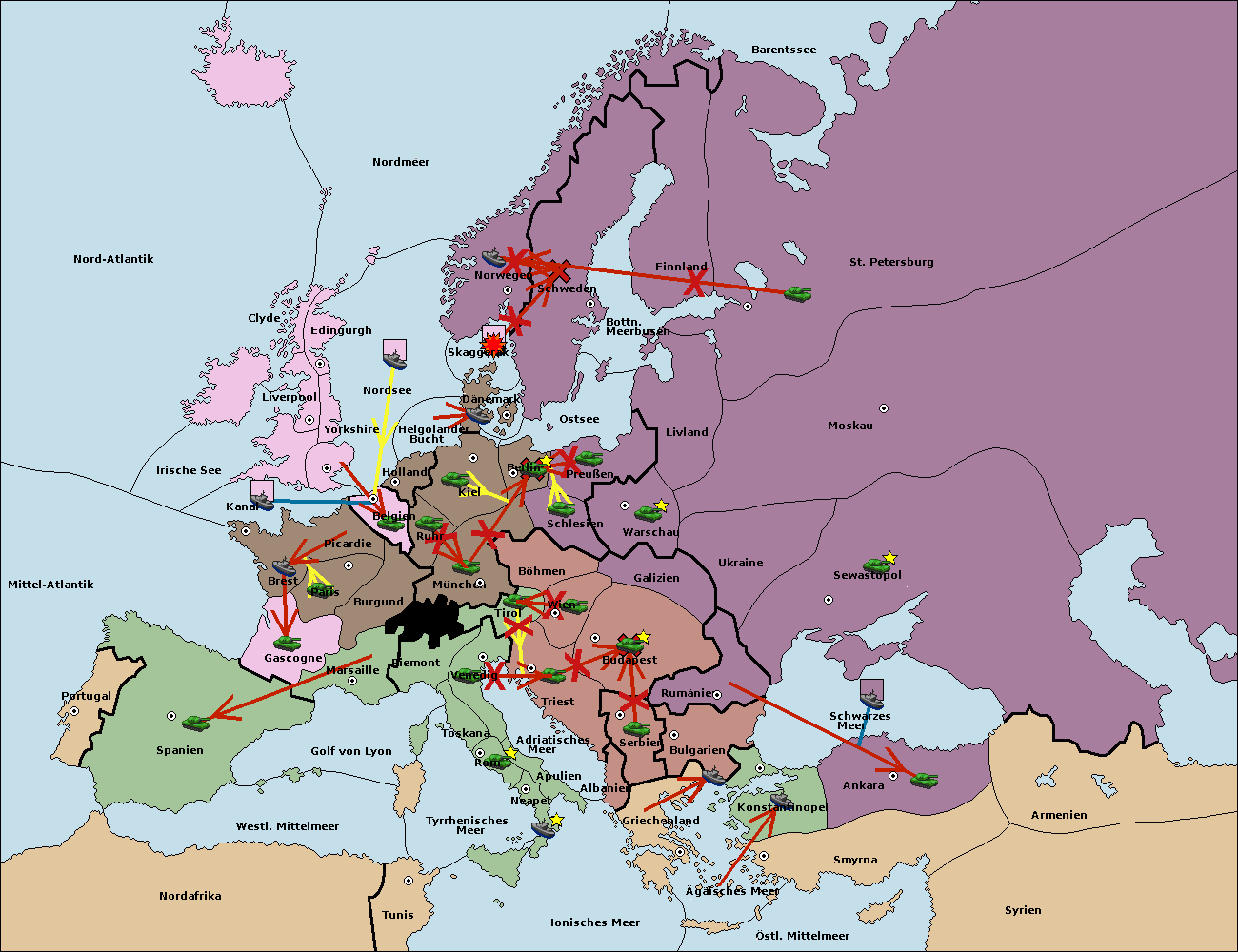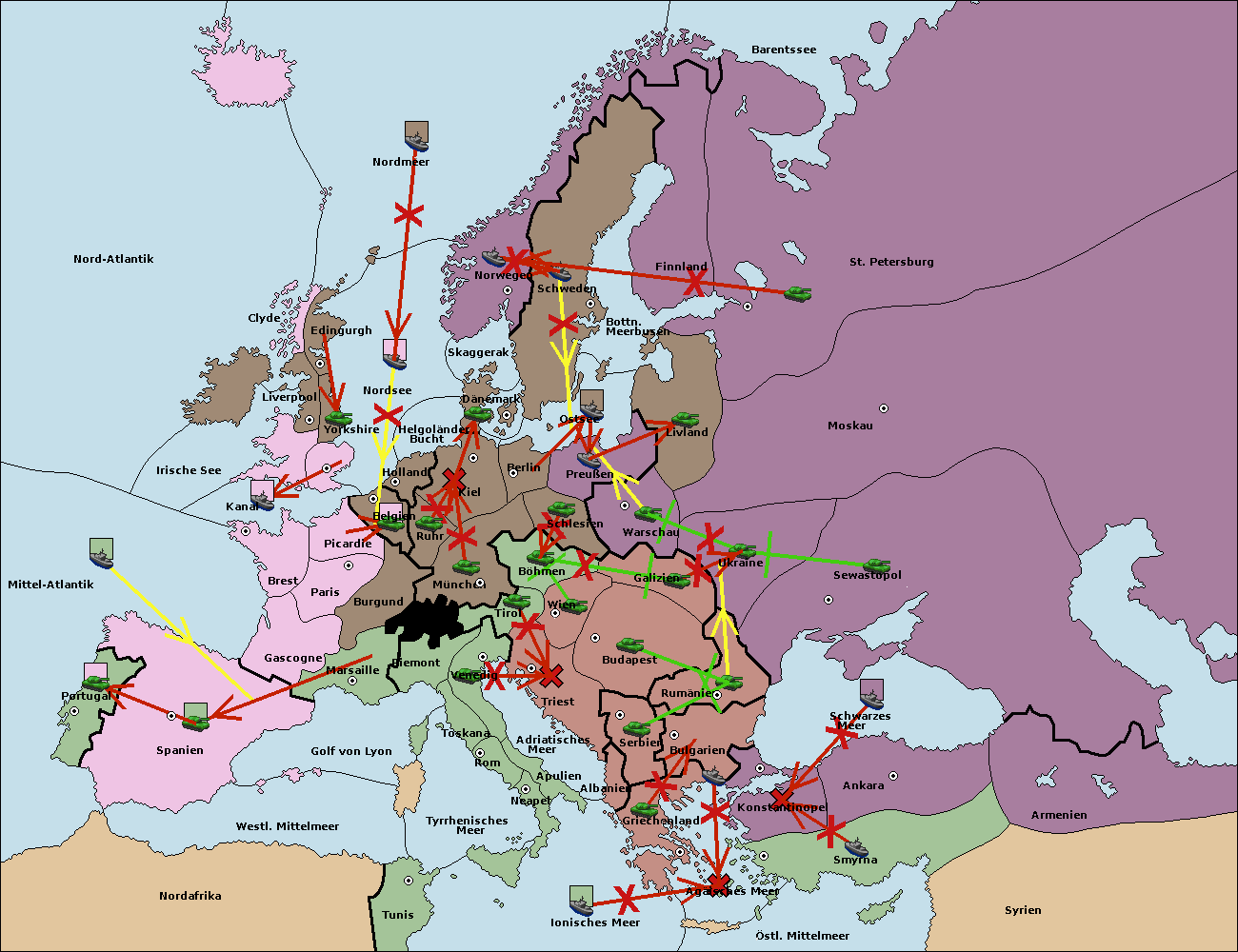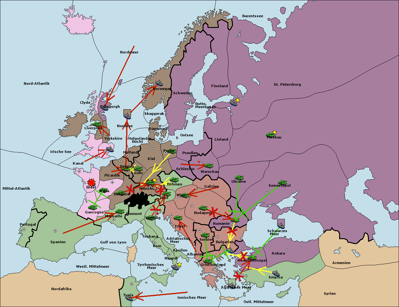 • Die Flotte in Bulgarien (Südküste) move nach Griechenland. (gescheitert)